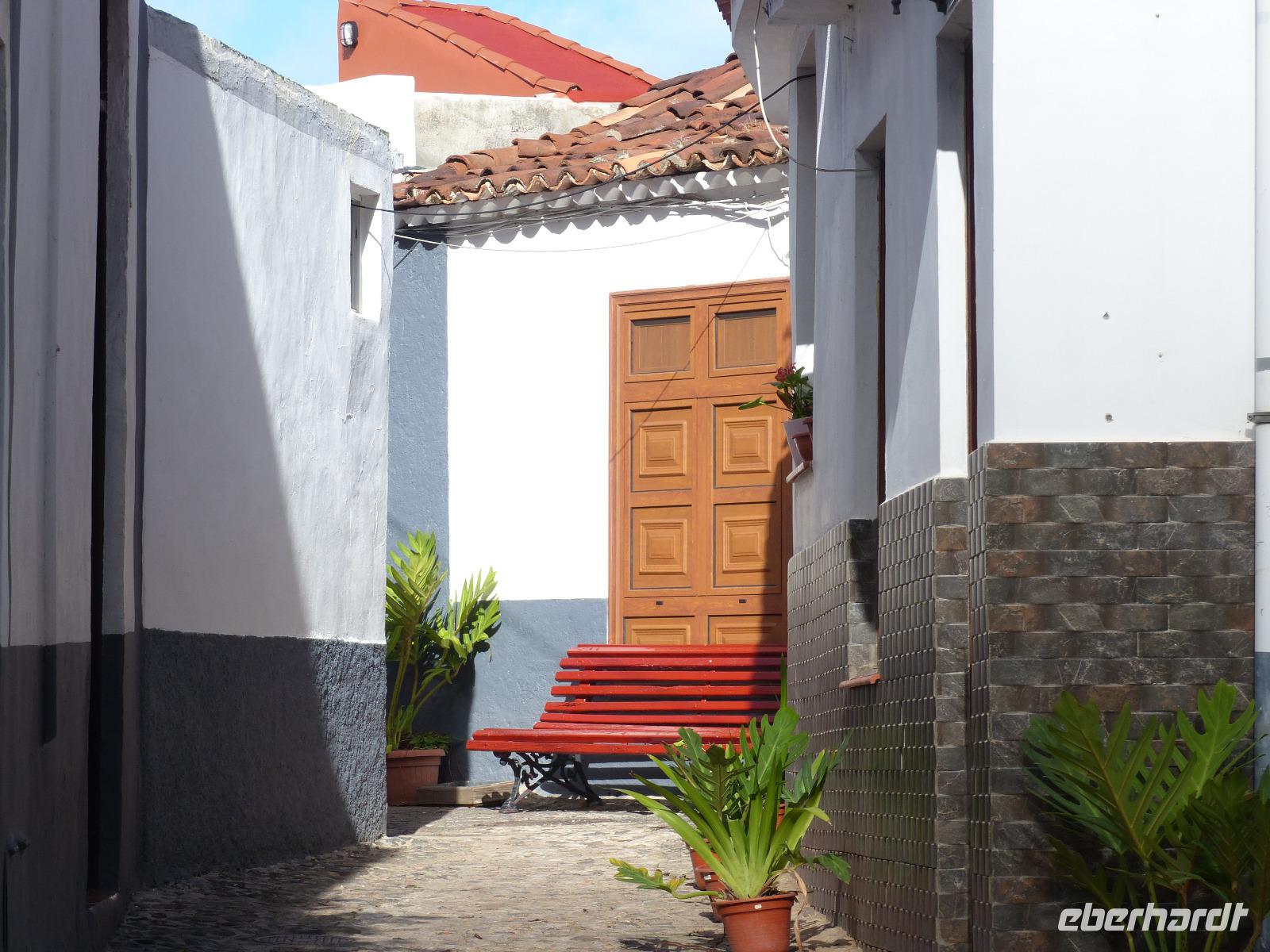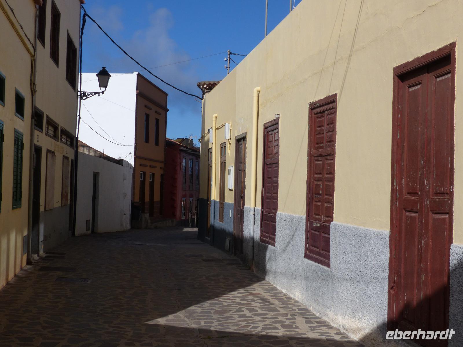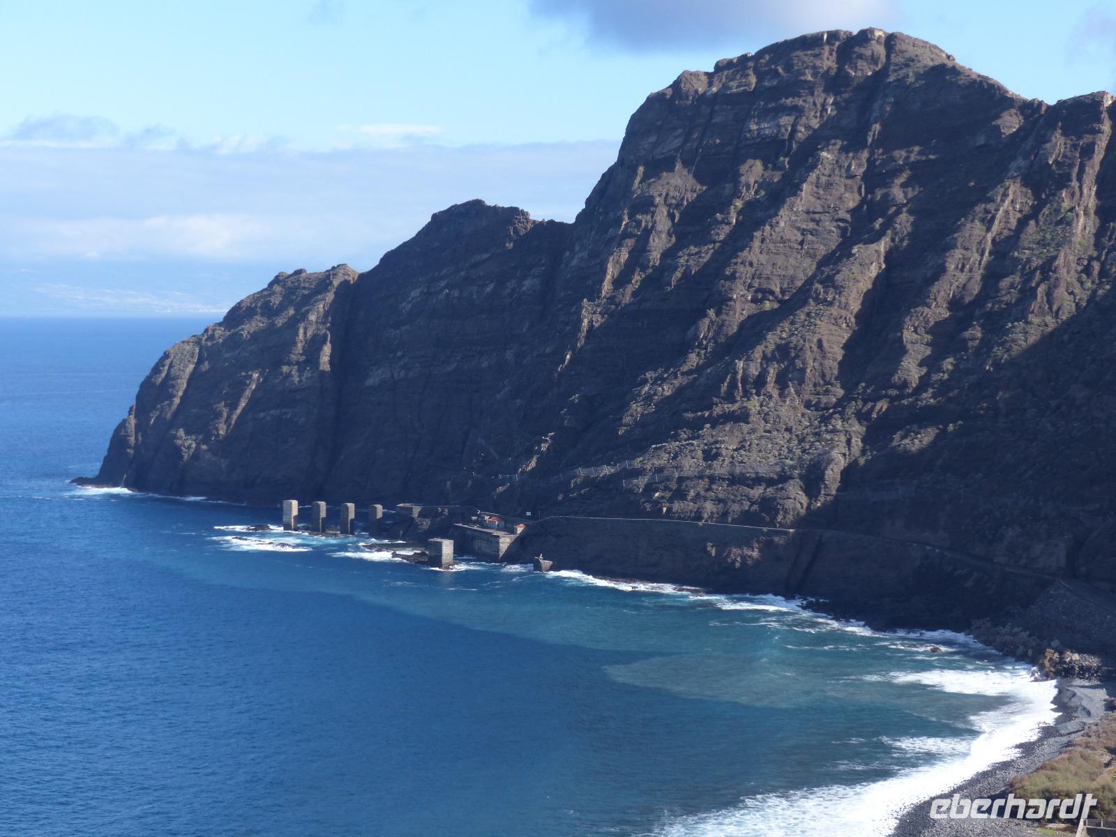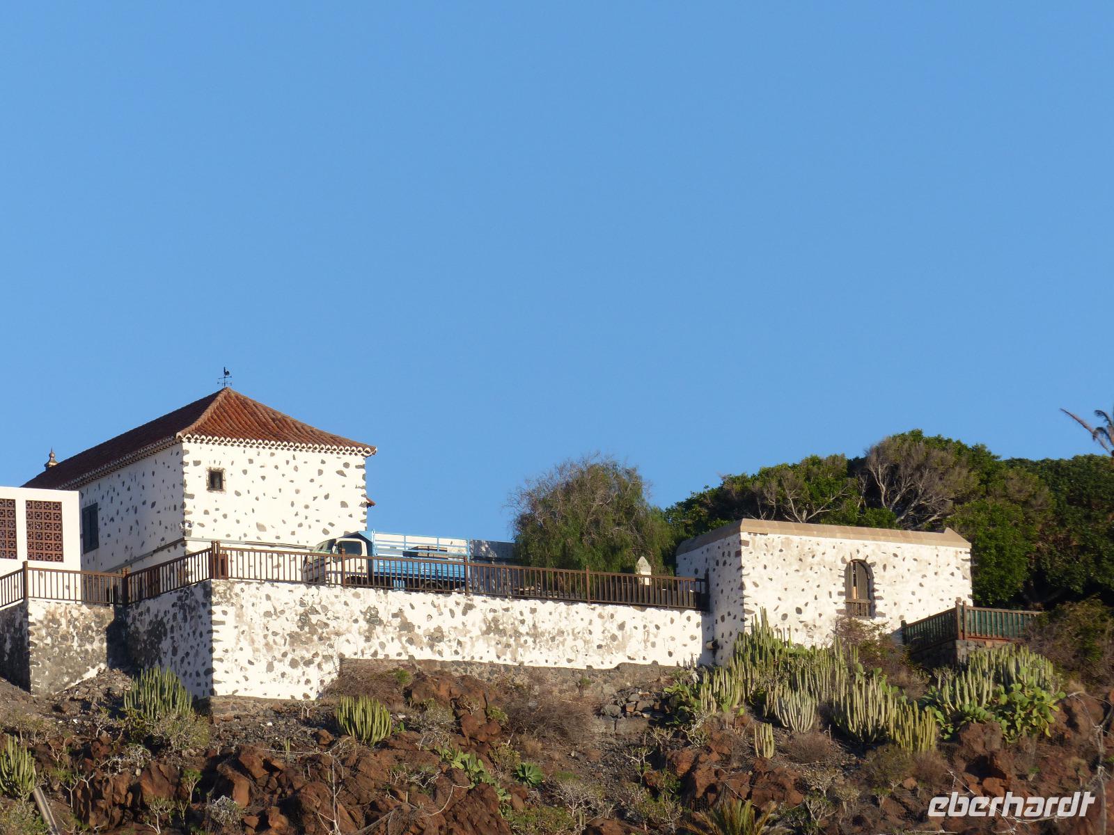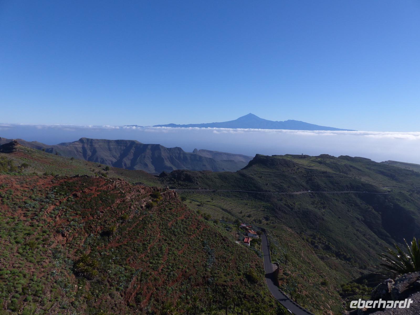 Dann meldeten sich unsere Mägen und wir ließen uns herrliche Vorspeisen in einem kleinen Restaurant in Hermingua gut munden. Hermingua bot uns bei strahlender Sonne gutes Essen, eine hübsche Kirche und viele Blüten. An diesen Ort erinnern wir uns gerne! Und bald schon zogen wir weiter, denn Highlights hatten wir heute jede Menge auf dem Programm. Agulo. Das schönste Dorf der Insel. Wir machten einen Spaziergang durch die malerischen Gassen, bevor sich unser Bus den Steilhang hoch zum Aussichtspunkt Mirador de Abrante quälte. Ein gewagtes Gebäude mit einem 7 m langen Arm, der über eine Felswand hinausragt und der einen Glasboden hat. Der Pächter Fred Olsen bietet erfreulicherweise Gastronomie an - man kann aber man muss nicht! Auch Nicht-Restaurant-Gäste dürfen den Glasarm betreten. Eine schöne Geste, die wir zu schätzen wussten. Aber nun rückten uns wieder die Wolken auf die Pelle und Carlos, unser freundlicher Fahrer, brachte uns gegen Abend wieder zurück nach San Sebastian. Wieder ein toller Tag! So hatten wir uns das vorgestellt...