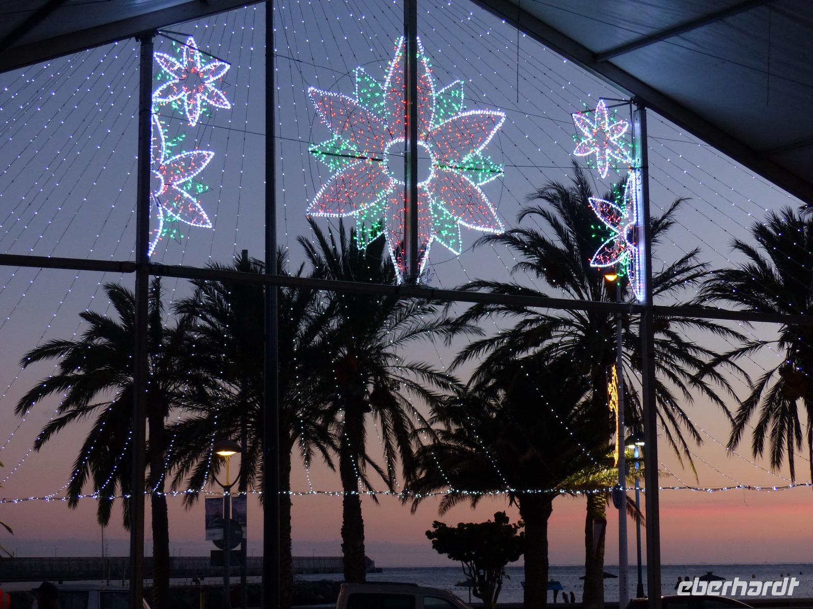 Eigentlich hätte heute die Schiffsfahrt zur Walbeobachtung stattfinden sollen. Es hat leider nicht sollen sein. Einige Gäste machten sich auf eigene Faust auf den Weg, andere wollten von mir durch die Stadt begleitet werden. Es war hochsommerlich warm heute in San Sebastian, 26 Grad! Und die Aida schob sich in den Hafen. Vermutlich war sie nicht ganz voll gebucht, denn wir trafen nur 3 Grüppchen Kreuzfahrer und am Strand lagen nur rund 20 Leute mit den gelb gestreiften Aida-Badetüchern herum. Also ließen wir uns nicht stören, besuchten die schöne Himmelfahrtskirche, das Kolumbushaus, bummelten durch die Fußgängerzone, besuchten Geschäfte und stiegen schließlich den Hang hinauf zum Parador. Im Innenhof des schicken Staatshotels hatte man eine Krippe aufgestellt, im Garten blühten Blumen und der Teide überragte die exotische Pflanzenwelt, die wir uns voller Begeisterung anschauten. Ein paar Gäste zogen noch mit mir bis zum Leuchtturm. Auch von dort hat man eine schöne Aussicht, aber der Weg war nicht das Ziel. Zurück in der Stadt, schnappten wir unsere Badesachen und trafen uns am Strand. Daheim gab es Blitzeis und Eisregen. Wir verschwanden im angenehm warmen Meer und räkelten uns im Badeanzug, im Bikini oder in der Badehose am Strand! Und den Abend verbrachte ein Teil von uns noch bei einem Glas Wein im Freien. Nebenan wurde geprobt. Gesangsstunden für die Fiesta. Das war eine schöne Untermalung dieses netten Abends!