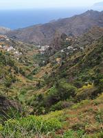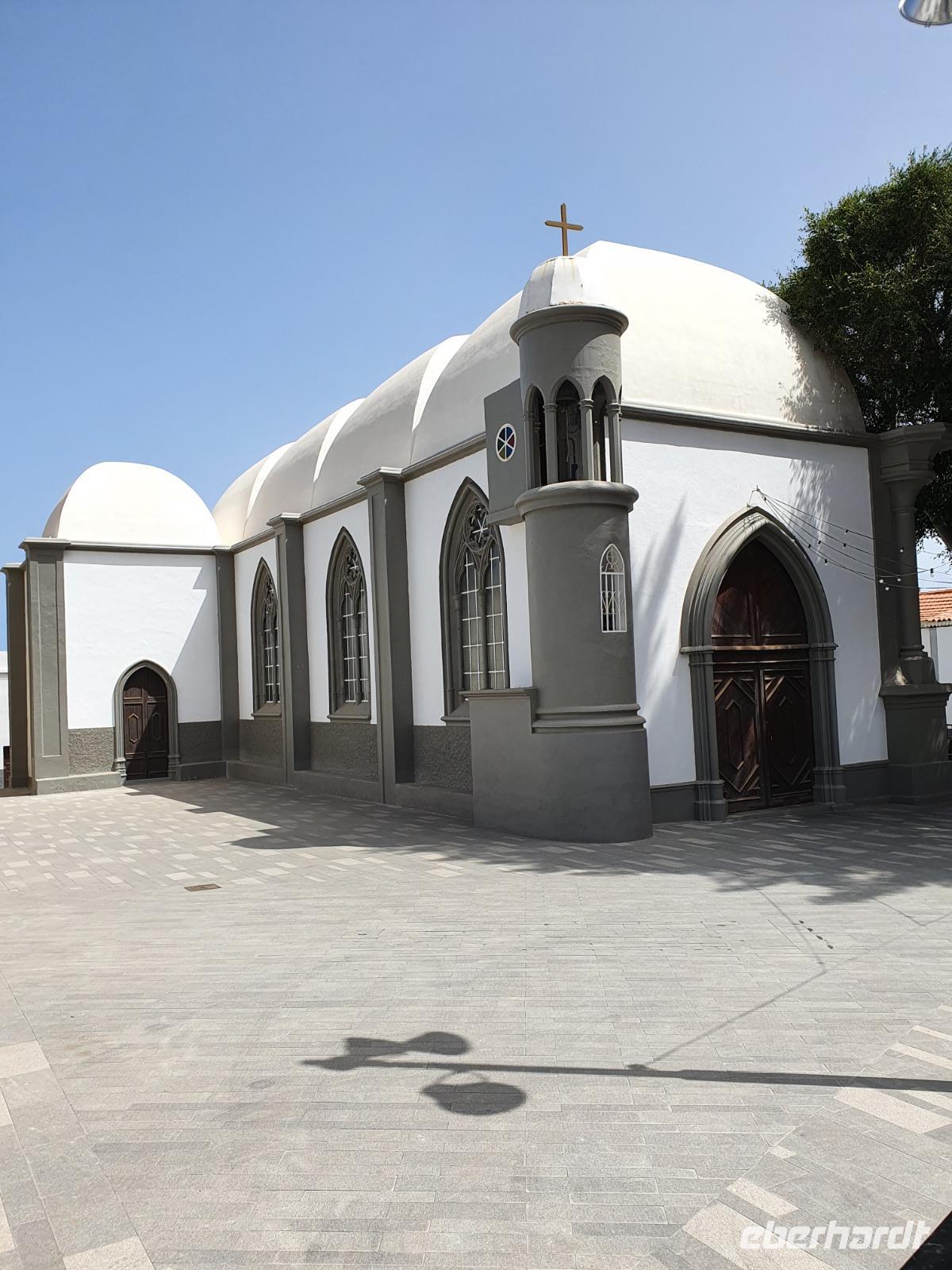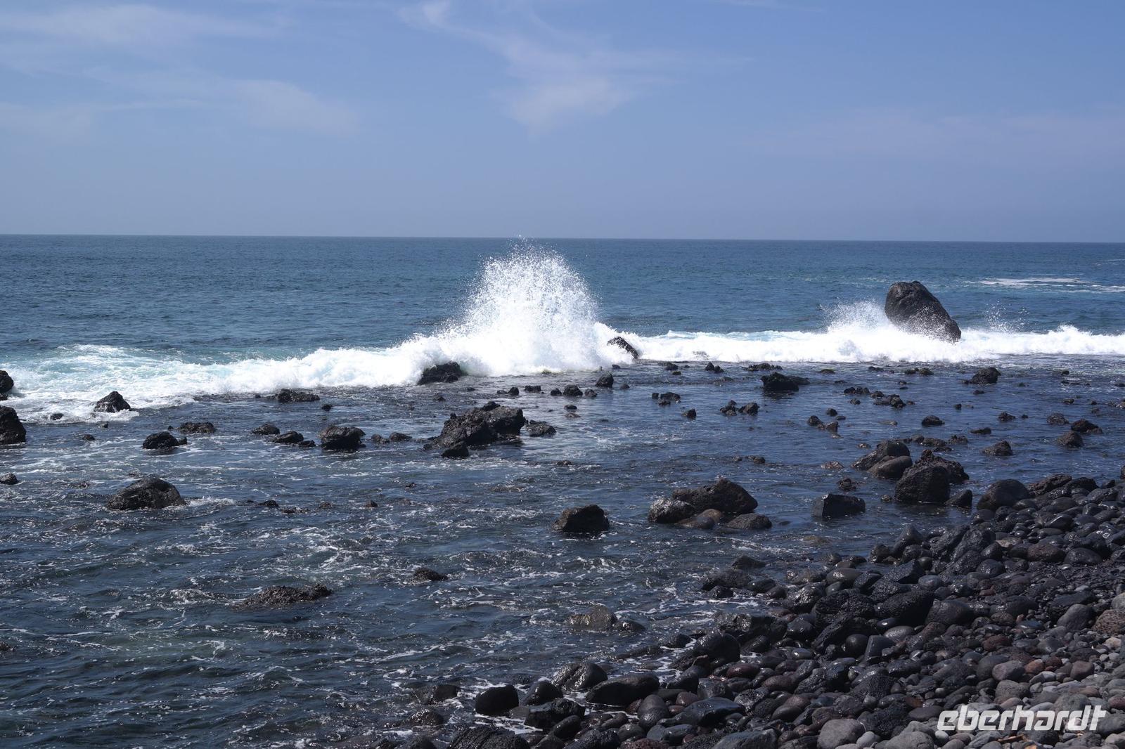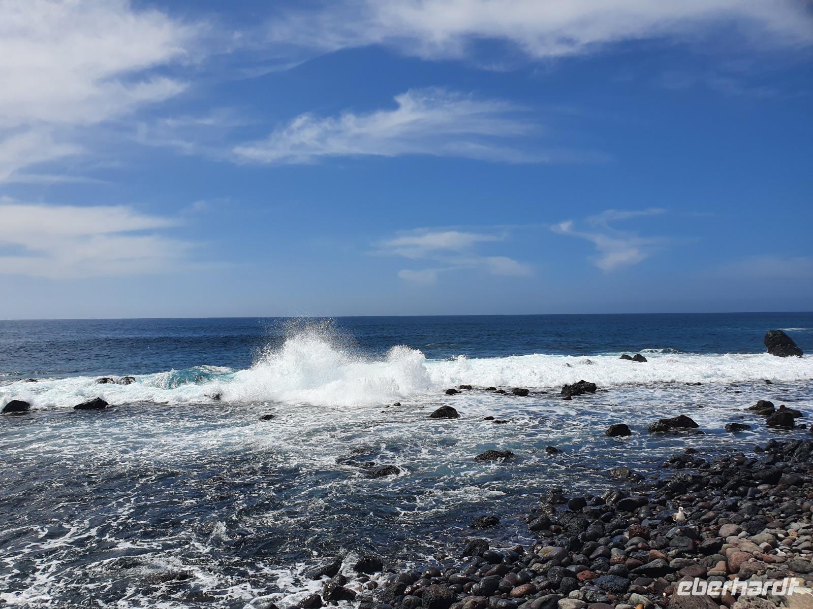 Eigentlich ist heute ein Tag zur freien Verfügung - wir aber bekommen einen Ausflug ins Tal des großen Königs (Valle Gran Rey) ganz im Westen der Insel spendiert. Auf dem Weg dorthin machen wir unterwegs einen kurzen Foto-Stopp am Mirador de Palmarejo und genießen den herrlichen Panorama-blick in das grüne Tal, kleine Dörfchen und Palmen - und Bananenplantagen sowie Terrassenfelder. Die steil aufragenden Berghänge machen die kleine Landwirtschaft in diesem Tal zu einem echten Abenteuer. An die terrassierten Berghänge schmiegen sich die weißen Häuser klitzekleiner Ortschften, auch eine winzige Kapelle thront über dem Tal. Der Wasserfall am oberen Ende des Barranco del Agua ist nur ein winziges Rinnsal - es hat seit Wochen auf La Gomera nicht geregnet, wie wir später noch sehen werden. Unser Busfahrer Ernesto lässt uns direkt am Strand von La Playa aussteigen - wir sehen und hören den Atlantik, der hier auf einen breiten und bei Touristen sehr beliebten Strand trifft. Die Uferpromenade verbindet die kleinen Dörfer La Playa, Puntilla und Vueltas und lädt zu einem gemütlichen Bummel ein. Zahlreiche Bars, Cafés und Restaurants laden zur Einkehr ein - wir lassen uns richtig gut gehen und genießen den Aufenthalt am Atlantik. Wie immer treffen wir uns um 18.52 Uhr vor dem Hotel - biegen einmal um's Eck und kehren zum Abendessen in Victor's Pension ein. Hier ist die grüne Suppe sehr viel gehaltvoller - dazu gibt's frischen Fisch oder Rindersteaks, Gemüse, die gesalzenen Schrumpelkartoffeln und zwei vegetarische Gerichte. Der einheimische Wein ist kräftig und lecker - wir lassen den Abend ausklingen und manche erkunden noch den hoteleigenen Wellnessbereich auf der Dachterrasse.