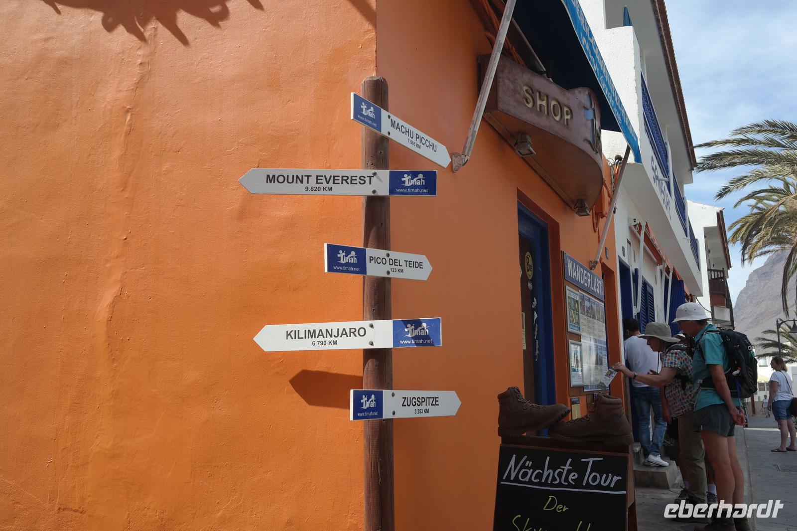 18 unerschrockene Wandermädels und zwei Wanderfreunde starten heute von verschiedenen Flughä-fen zunächst nach Teneriffa, weiter zum Hafen Los Cristianos und dann mit der Fähre nach La Gomera. Und weil La Gomera nicht mal eben um die Ecke liegt, benötigen wir den ganzen Tag für unsere Anreise, werden im Hafen San Sebastian von unser Wanderführerin Ulrike herzlich begrüßt und machen im Hotel beim späten Abendessen unsere erste Erfahrung mit einer regionalen Spezialität: Die grüne Suppe (hergestellt aus Kresse) wird uns in den nächsten Tagen in unterschiedlicher Zubereitungsweise immer wieder begegnen. Zufrieden und müde vom Anreisetag genießen wir die erste Nacht auf La Gomera.