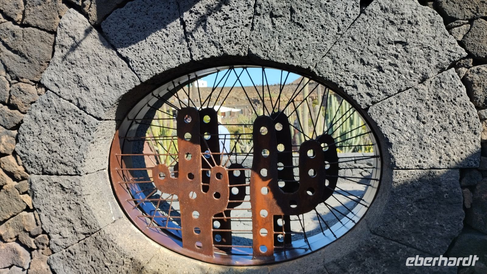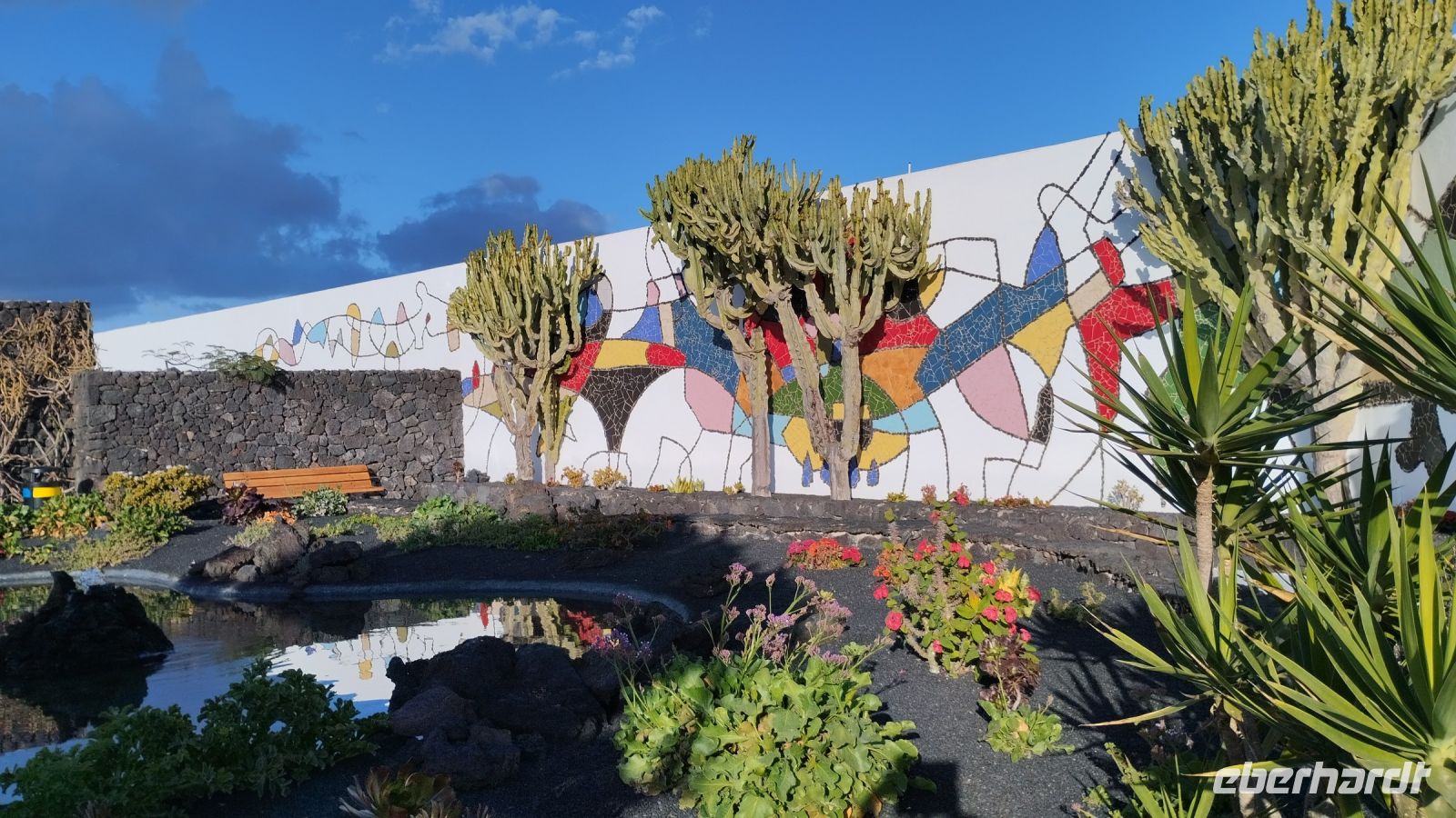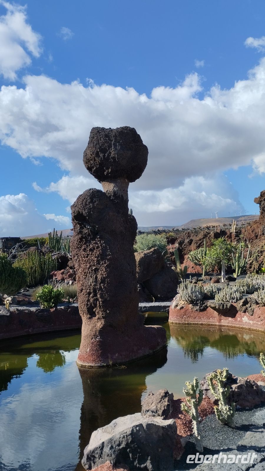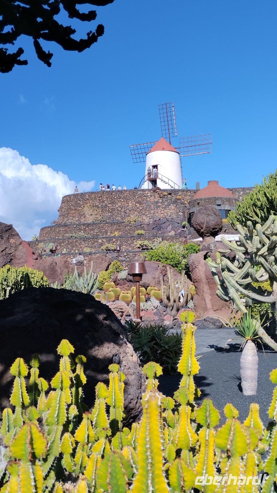 Als nächstes besuchen wir den Kaktusgarten, Cesar Manrique's letztes Werk. Hier kann man etwa 10.000 Kakteen in einem wunderschön angelegten Garten mit einer Windmühle bewundern.
