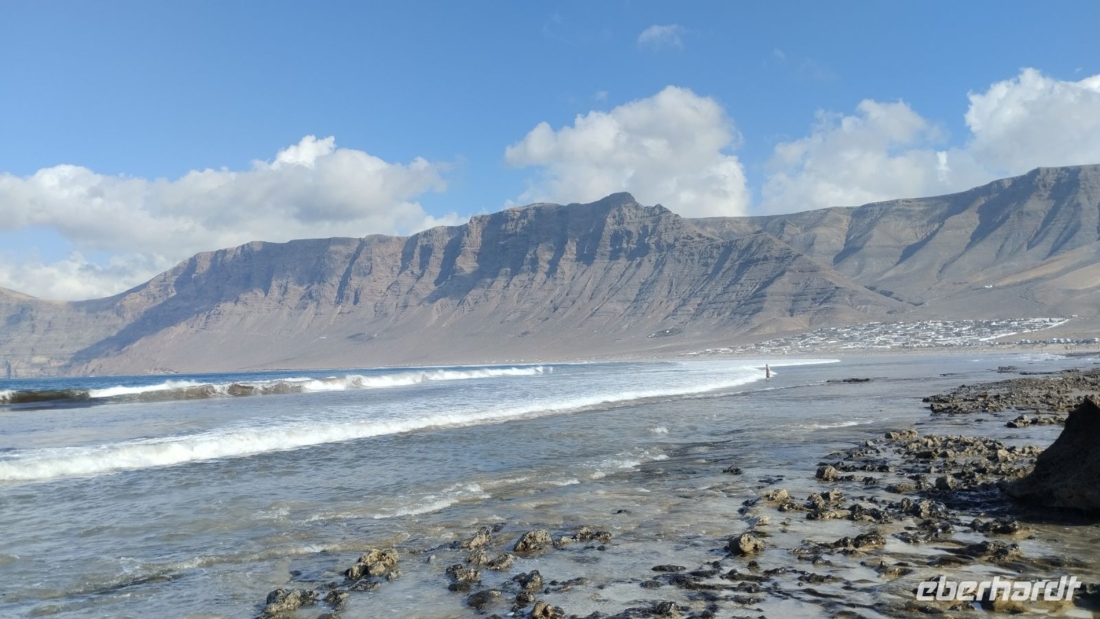 Weiterer Höhepunkt des Tages ist der längste (6 km) und imposanteste Strand auf Lanzarote - La Caleta de Famara. Hier tummeln sich viele Surfer.
