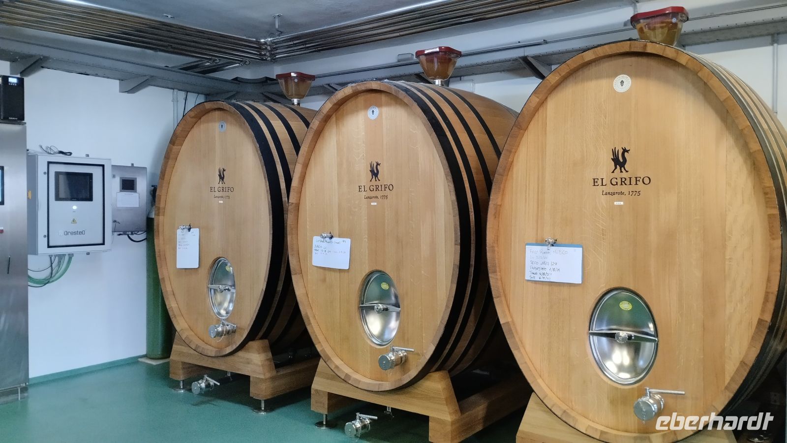Anschließend geht es in die Weinregion La Geria, im geographischen Zentrum von Lanzarote gelegen. Würde man auf diese Gegend aus der Vogelperspektive hinunter blicken, so sähe man laute C-Buchstaben. Denn die halbrunde Steinmauer aus Lavagesteinbrocken schützt die Weinrebe vor Wind. Nach einer ausführlichen Führung in der ältesten Weinkellerei der Kanarischen Inseln "El Grifo" (Familienunternehmen seit 1775) probieren wir drei verschiedene Weine.