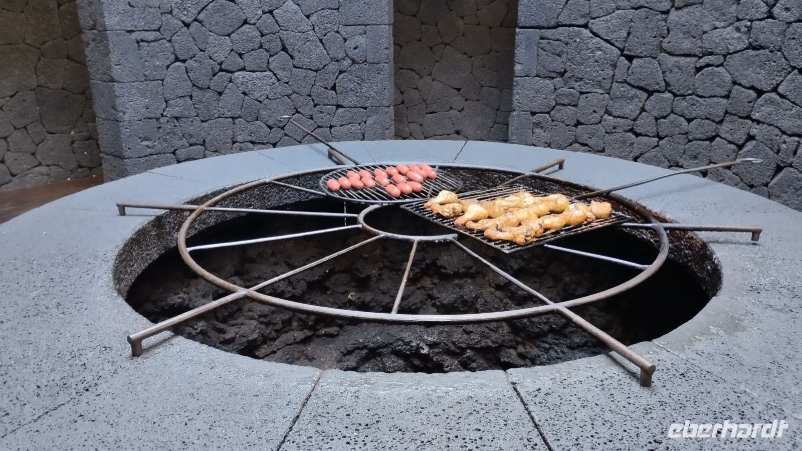 Diese einzigartige Vulkanlandschaft mit 150 Meter tiefen Basaltschichten und bizarren Lavaformationen wurde bereits in mehreren Filmen verewigt (James Bond, Science-Fiction-Filme). 1730 gab es hier mehrere Vulkanausbrüche, die sechs Jahre lang andauerten. Von dem bekanntesten Künstler der Insel - Cesar Manrique - wurde das runde Restaurantgebäude "El Diablo" konzipiert. Davor dürfen wir in einigen Demonstrationen draußen erleben, wie heiß die Magmafelder sind, nämlich über Tausend Grad...In Erdlöcher gegossenes Wasser schießt wie ein Geysir aus dem Boden.