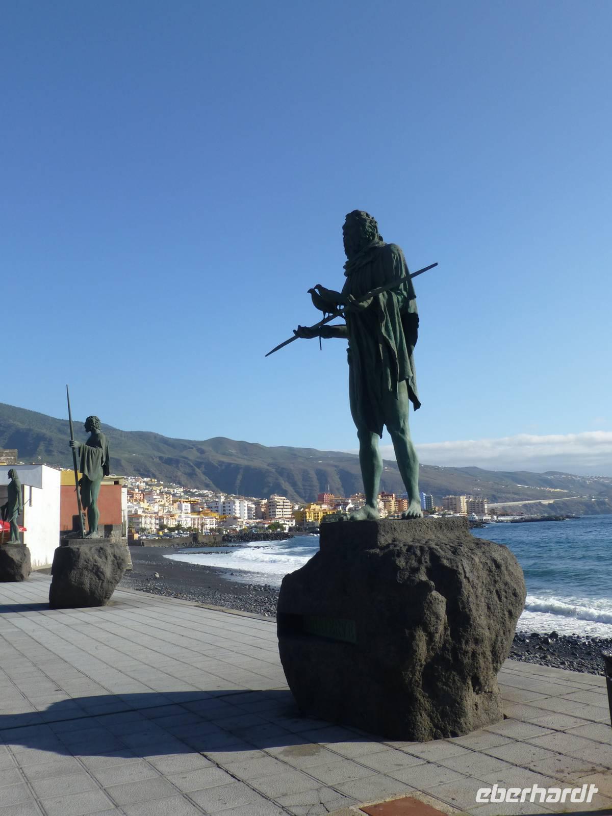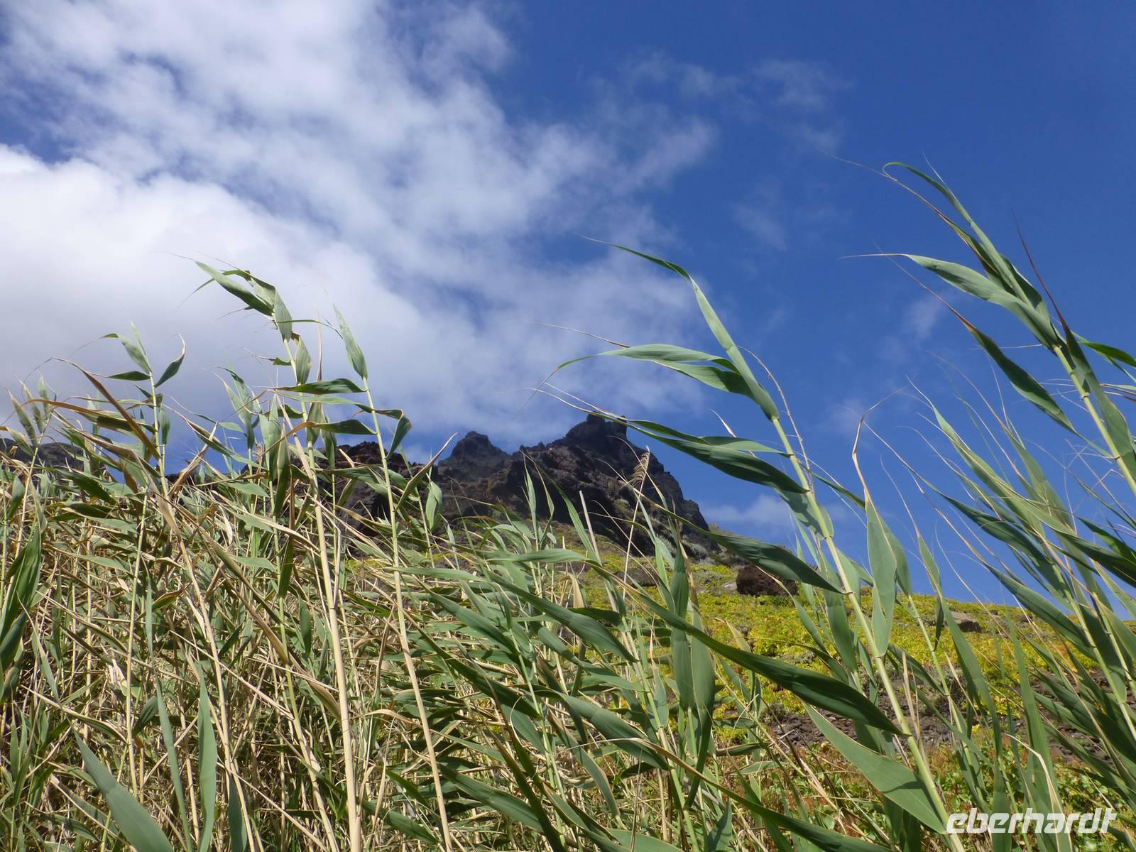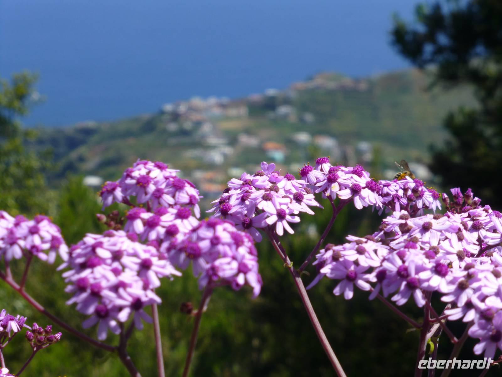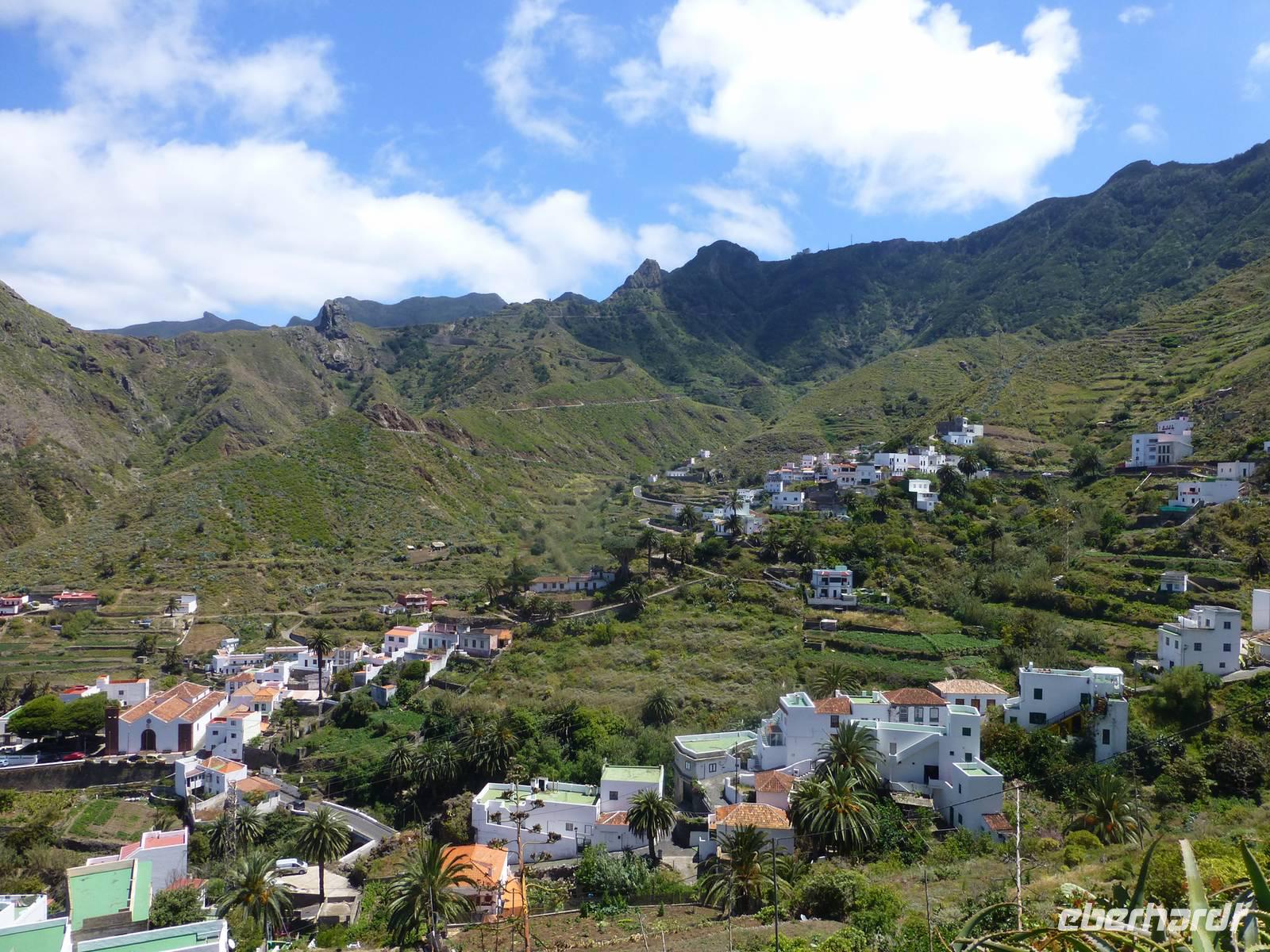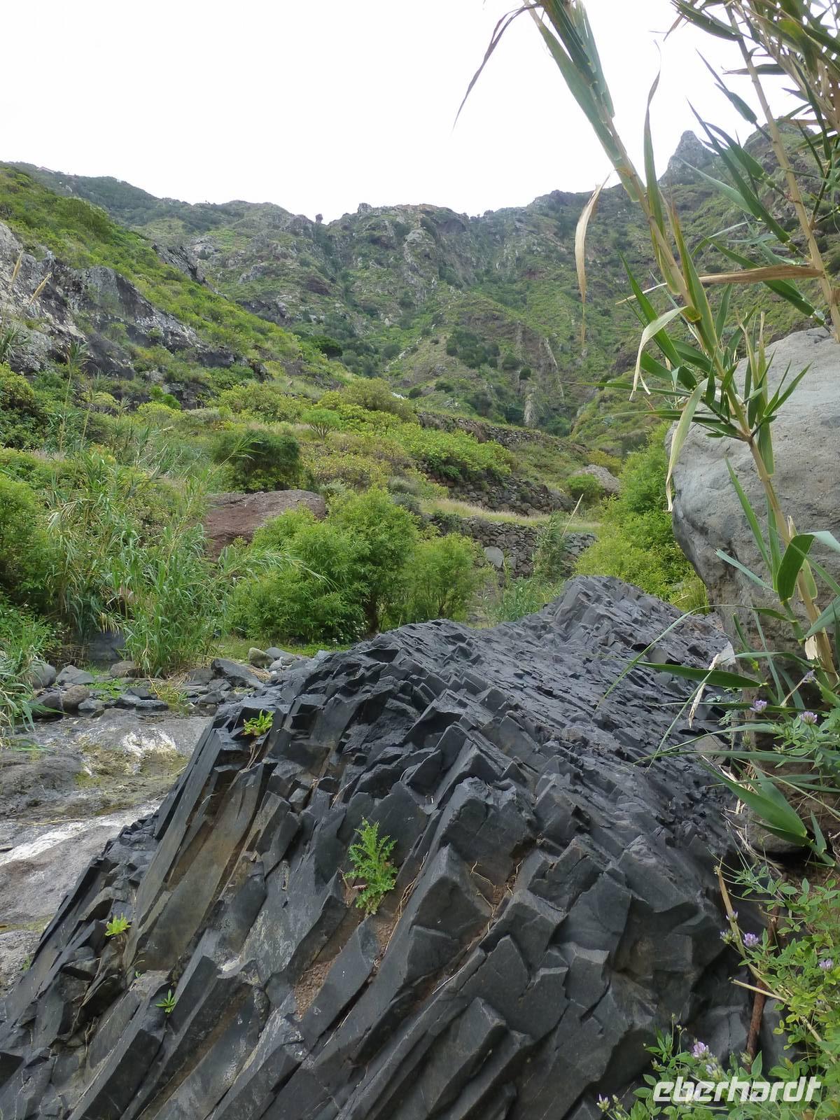 Heute wollen wir nun die landschaftlichen Reize der größten Kanaren-Insel kennenlernen. Mit dem Bus fahren wir zunächst die Küstenstraße entlang, um dann in das „versteckte" Bergdorf Masca zu gelangen. Hier beginnt unsere Wanderung hinab durch die berühmte Schlucht. Zugegeben, ganz so „versteckt" ist das Dörfchen heutzutage nicht mehr, denn neben uns sind noch einige Wanderer unterwegs. Unser örtlicher Wanderführer Othmar zeigt uns viele Pflanzen am Wegesrand: neben der „Wunderblume" lernen wir beispielsweise auch die endemische Kanarische Winde mit ihren weißen Blüten und die purpurrote Königsjuva-Wolfsmilch kennen. Fast den ganzen Weg begleiten uns die stacheligen Kaktusfeigen sowie verschiedene Dickblattgewächse. Besonders eindrucksvoll sind die steil aufragenden Felswände in der engen Schlucht. Das bizarre Vulkangestein ist mit Adern aus erstarrter Lava durchzogen und zwischen den Gesteinslagen zeichnen sich braune Ascheschichten ab. Der Weg führt über felsigen Untergrund und zum Teil über große Felsblöcke, so dass die Wanderstöcke eine gute Hilfe sind. Am späten Nachmittag erreichen wir schließlich den Ausgang der Schlucht am Meer, wo sich ein kurzes Bad zur Erfrischung anbietet. Schon bald „entern" wir das Boot, das uns vorbei an den fast 500 Meter hohen Felswänden von „Los Gigantes" zum Hafen bringt. Dieser Küstenabschnitt beschreibt mit ca. 12 Kilometern die längste Steilküste Europas!