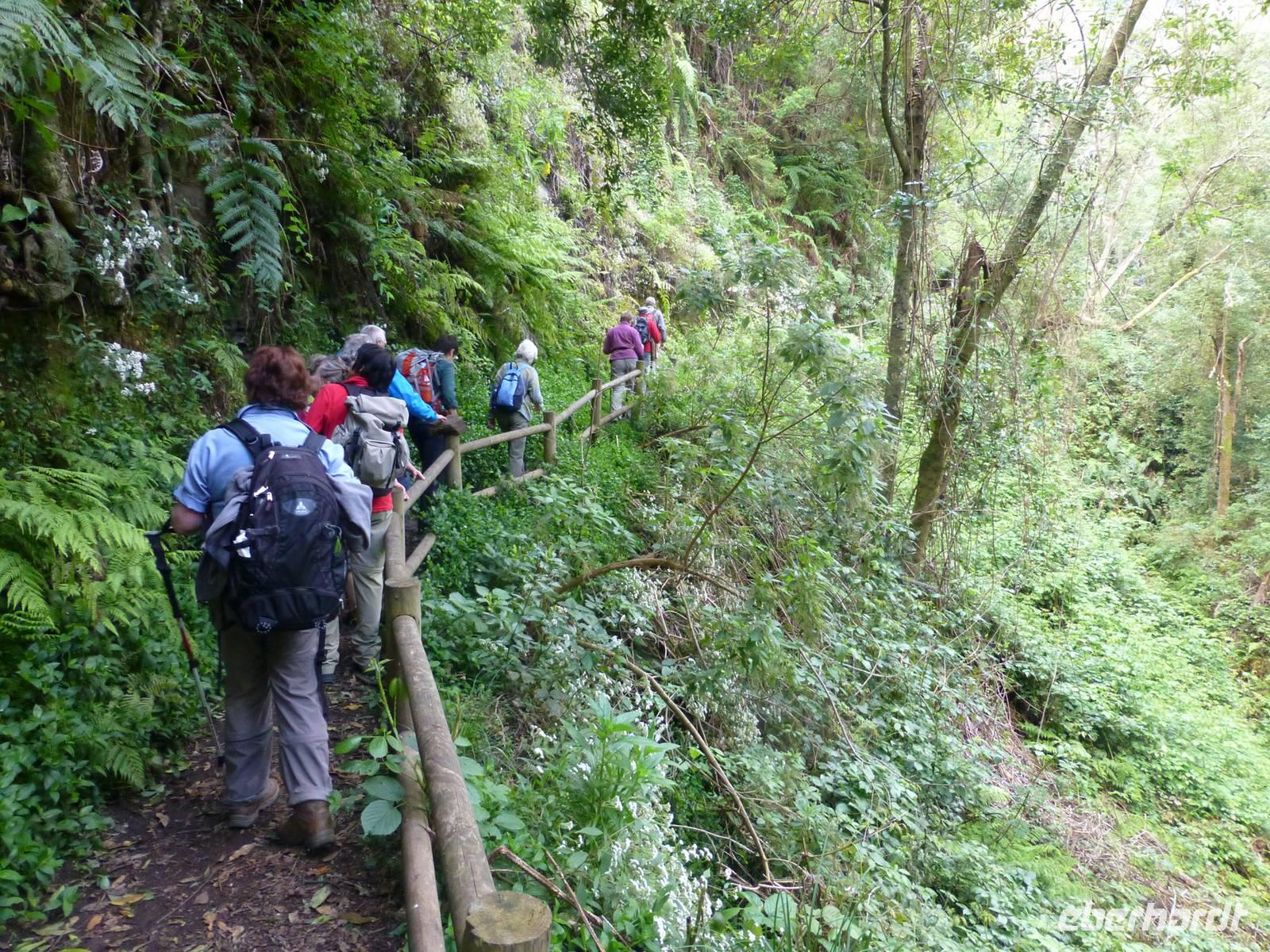 Noch einmal begrüßen uns Andreas und Augustin zu einem Ausflug auf La Palma. Unsere heutige Wanderung entführt uns in den „Märchenwald" aus Lorbeerbäumen und Erika-Baumheide. Wir wandern durch den herrlich grünen Wald, wobei wir viel über die Pflanzenwelt der Insel erfahren. Nach dem Anstieg haben wir uns das Picknick redlich verdient. Vom Aussichtspunkt bietet sich noch einmal ein toller Blick auf das grüne Blätterdach, auf das blaue Meer und die Küste. Nun geht es talwärts nach San Bartolo. Am Wegesrand entdecken wir immer wieder Farbtupfer mit prächtigen Blumen und Blüten. Unser Lieblingsfahrer Augustin spielt uns zum Abschied ein Ständchen auf dem Akkordeon. Bravo für sein fahrerisches Können und sein musikalisches Talent. Auch von Andreas verabschieden wir uns hier vor der fantastischen Kulisse aus grünen Terrassen. Vielen Dank für die schöne Zeit auf „La Bonita"! Am Nachmittag bleibt noch Zeit für einen Spaziergang durch die hübsche Inselhauptstadt Santa Cruz oder ein erfrischendes Bad im Atlantik.
