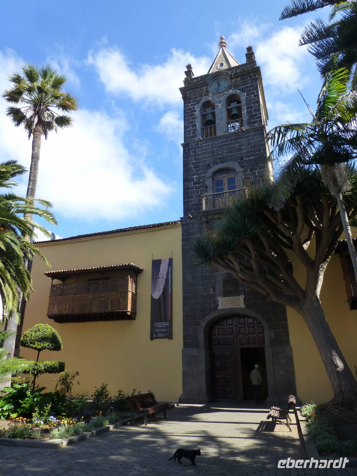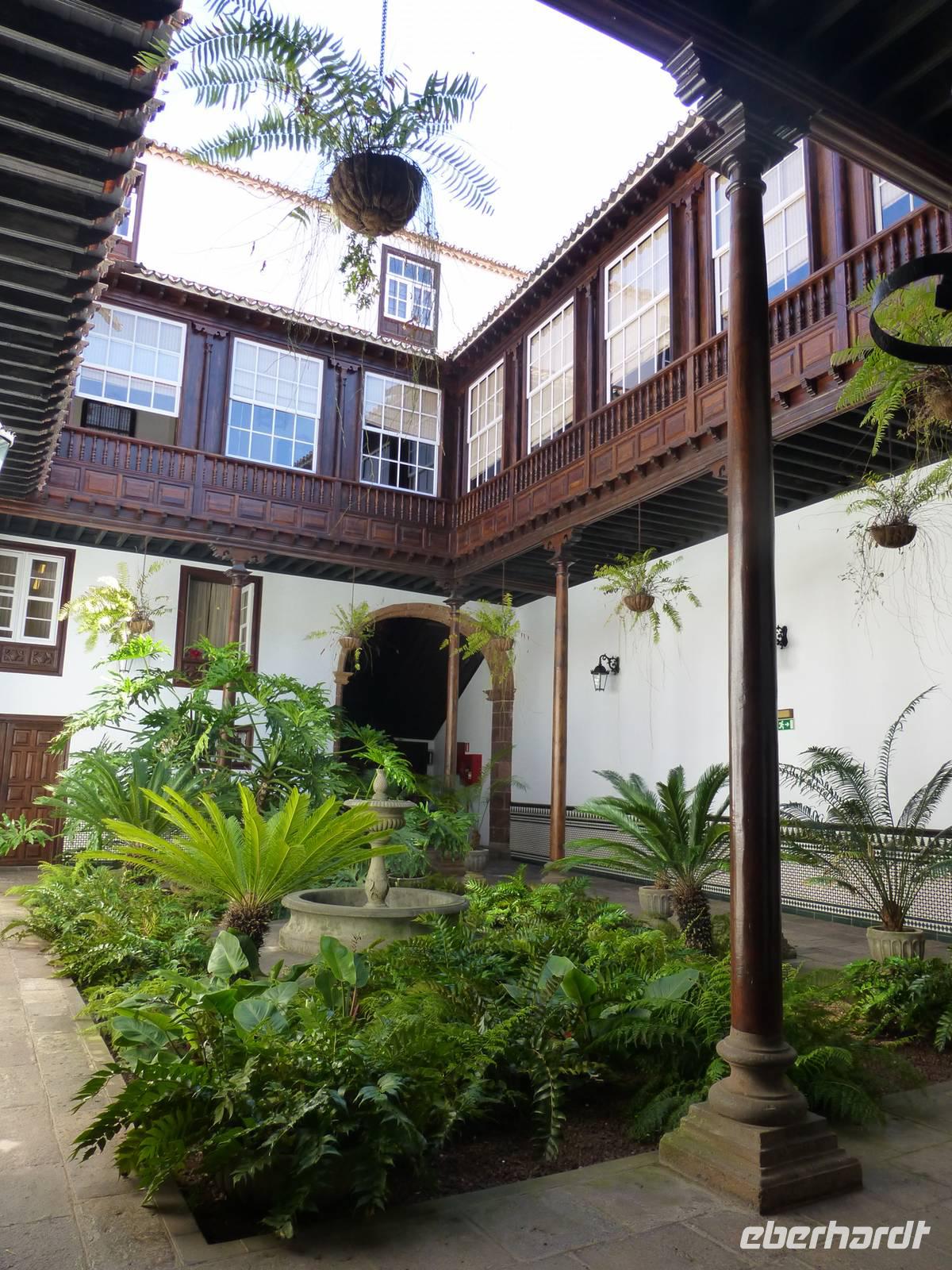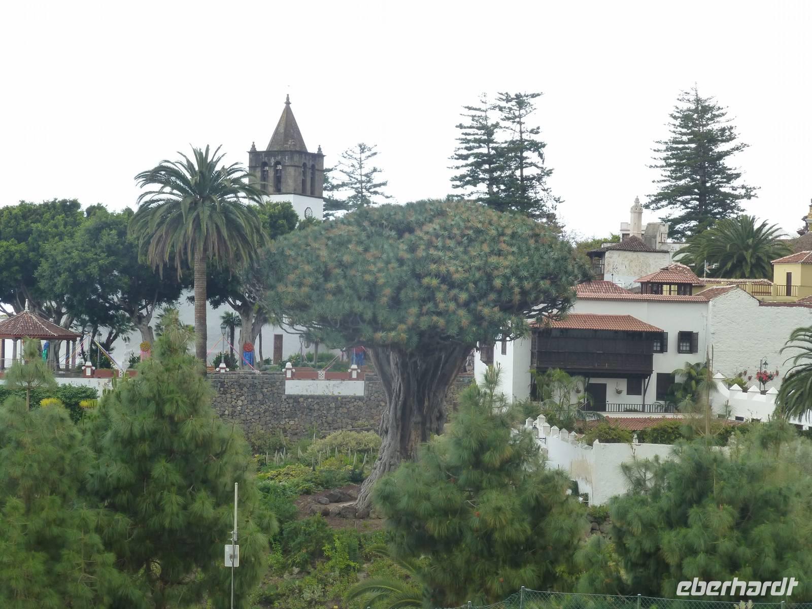 Am (sehr) frühen Morgen sagen wir leider schon Adé zu unserer lieb gewonnen Insel La Palma und der herrlichen Hacienda. Wir fahren zum Hafen von Santa Cruz, wo die Fähre „Fred Olsen" bald zum Ablegen bereit steht. Nur wenige Gäste gehen an Bord des riesigen Katamarans, der bis zu 1.000 Passagiere fasst! Nach einem kurzen Zwischenstopp auf La Gomera erreichen wir nach gut 2,5 Stunden unser zweites Reiseziel - die Insel Teneriffa. Am Hafen erwartet uns unser Reiseleiter Eduardo zu einem halbtägigen Ausflug. Die Landschaft im Süden ist sehr trocken und karg, aber Dank der Passatwinde erwartet uns im Norden auch üppige Vegetation. Zunächst fahren wir in den Wallfahrtsort Candelaria, wo wir in der Kirche die Madonna-Statue betrachten. Bald darauf erreichen wir La Laguna - ein malerisches Städtchen, das zu Recht den Welterbetitel der UNESCO trägt. Bei einem Rundgang durch die Altstadt bestaunen wir die schönen Fassaden der Herrenhäuser mit den typisch spanischen Holztüren. Prächtige Innenhöfe mit Balkonen zeugen vom Reichtum der einstigen Besitzer. Zum Mittag kehren wir in einer Bodega ein. Hier probieren wir landestypische Tapas sowie den ein oder anderen spanischen Wein. Salud! In Puerto de la Cruz checken wir schließlich im 4-Sterne-Hotel „Puerto Palace" ein - unserem Quartier für die nächsten sechs Nächte.