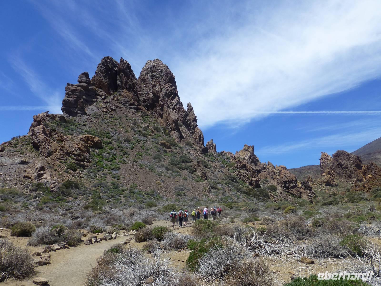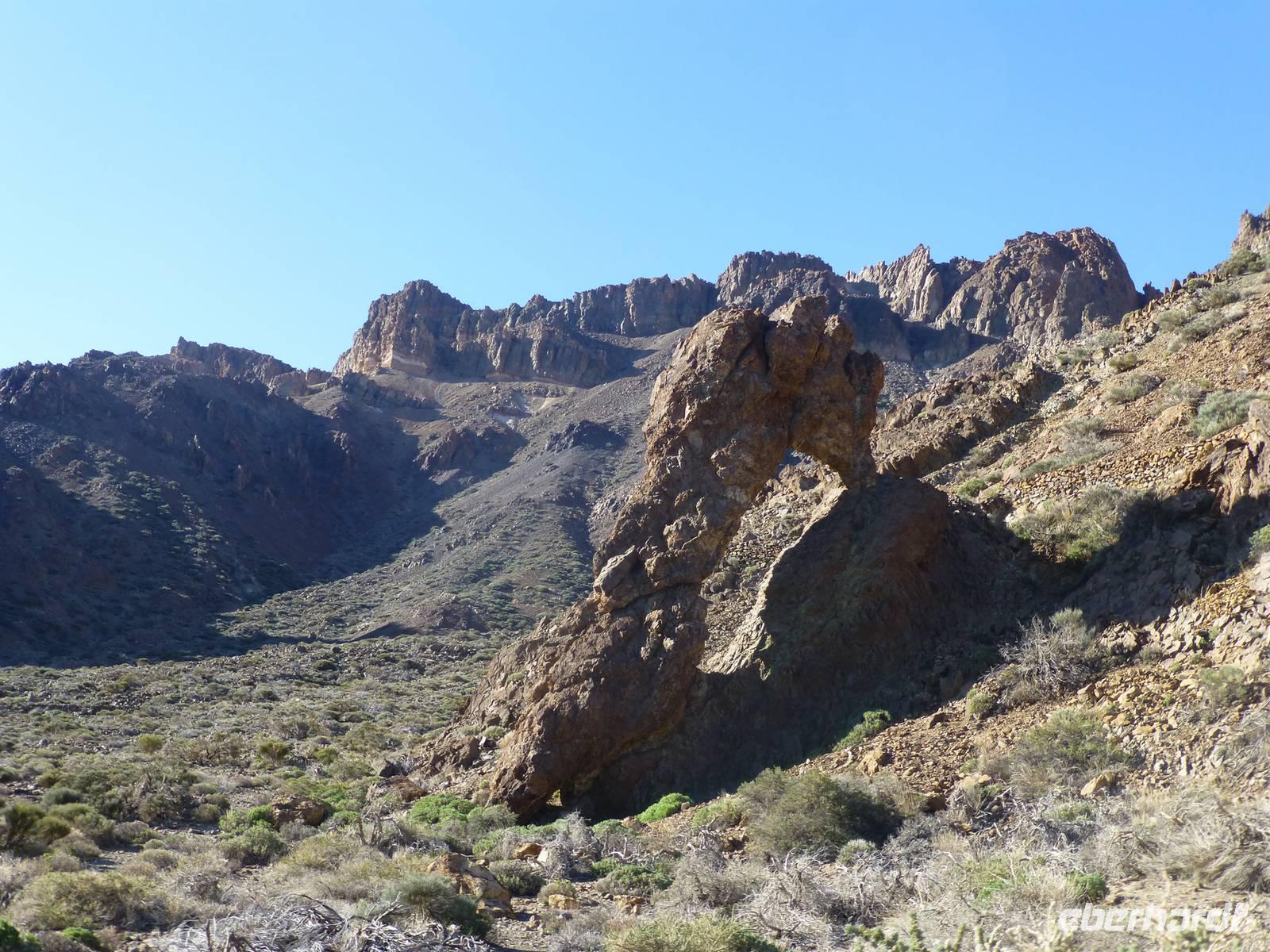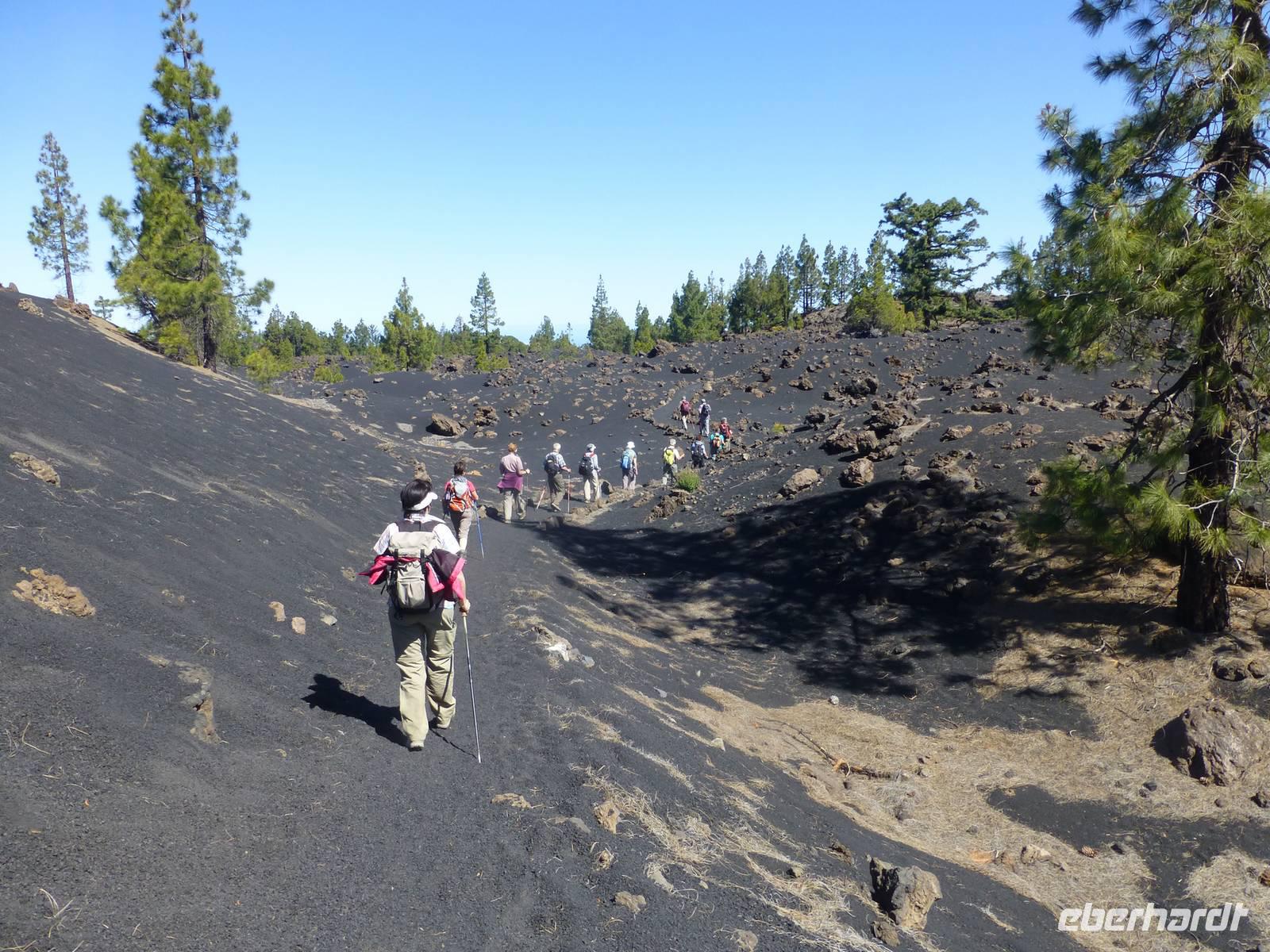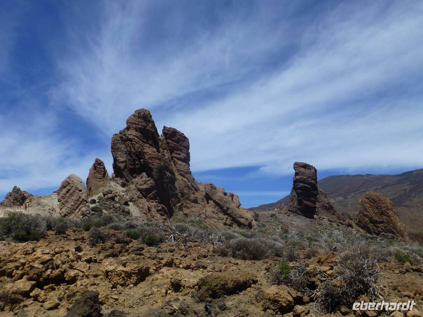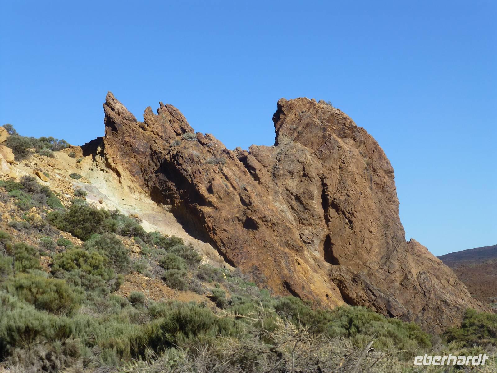 Noch einmal begeben wir uns in den Teide-Nationalpark, nur dass wir uns heute erst dem alten Teide „Pico Viejo" und dann dem jüngsten Vulkan der Insel, dem „Chinyero", widmen. Mit etwas Phantasie erkennt man in den grotesken Felsformationen Hexen, Schuhe und Bären ! Auch heute sehen wir die verschiedenen Ausprägungen der Lava: die krümelige „AA-Lava" einerseits und die Stricklava oder „Pahoehoe-Lava" andererseits. Bei der leichten Wanderung durch den schwarzen Lava-Sand können wir die Natur intensiv genießen. Zwischen den feuerresistenten Kanarenkiefern blühen Aphrodil-Lilien, Katzenminze und Braunwurz. Später gesellen sich auch Erika-Baumheide und leuchtend gelber Kanaren-Hahnenfuß hinzu.
