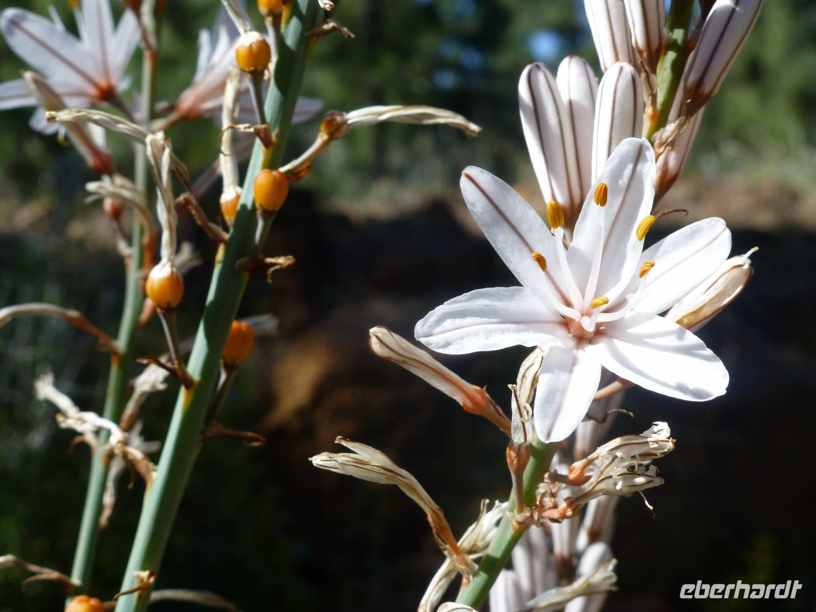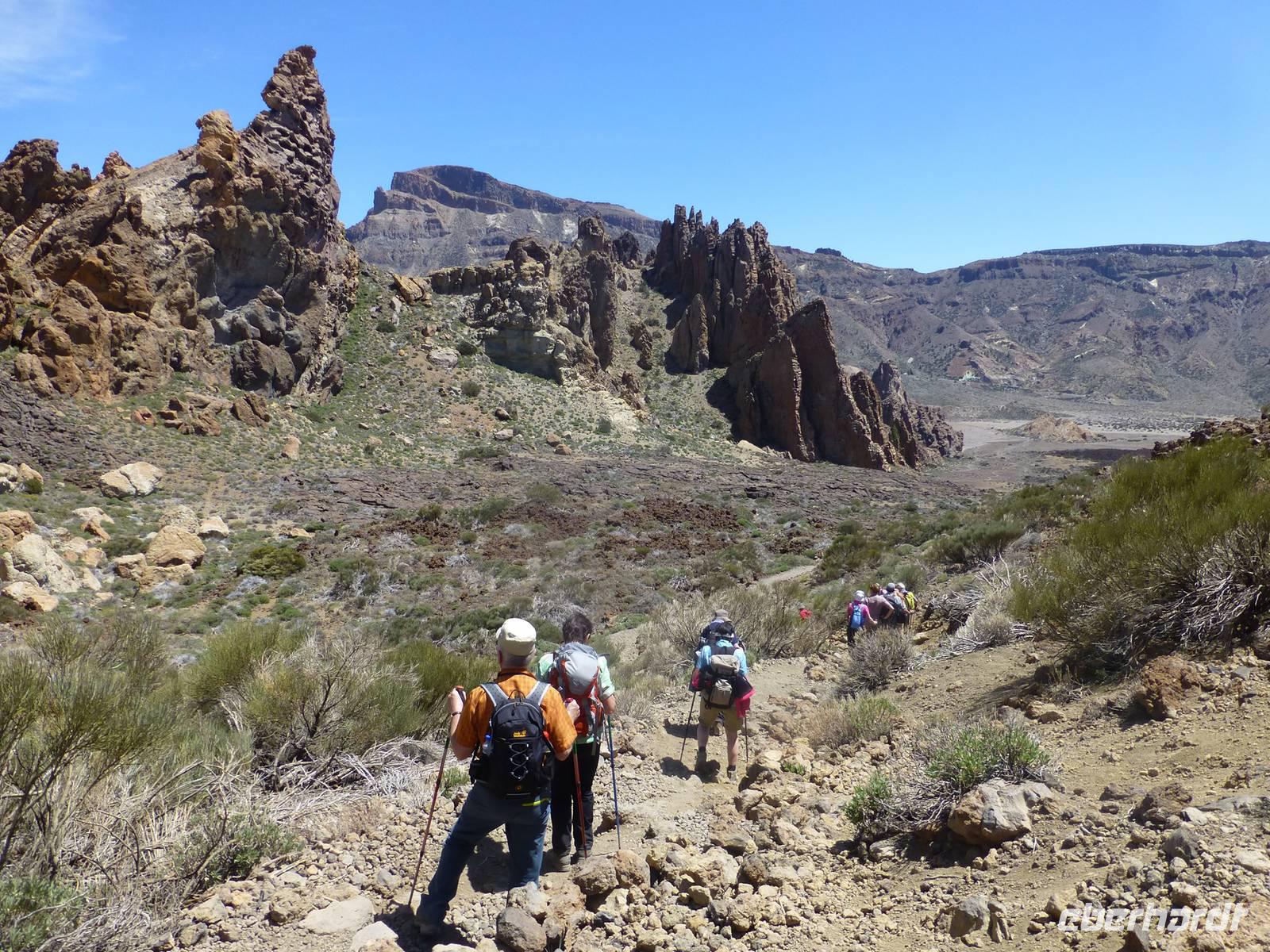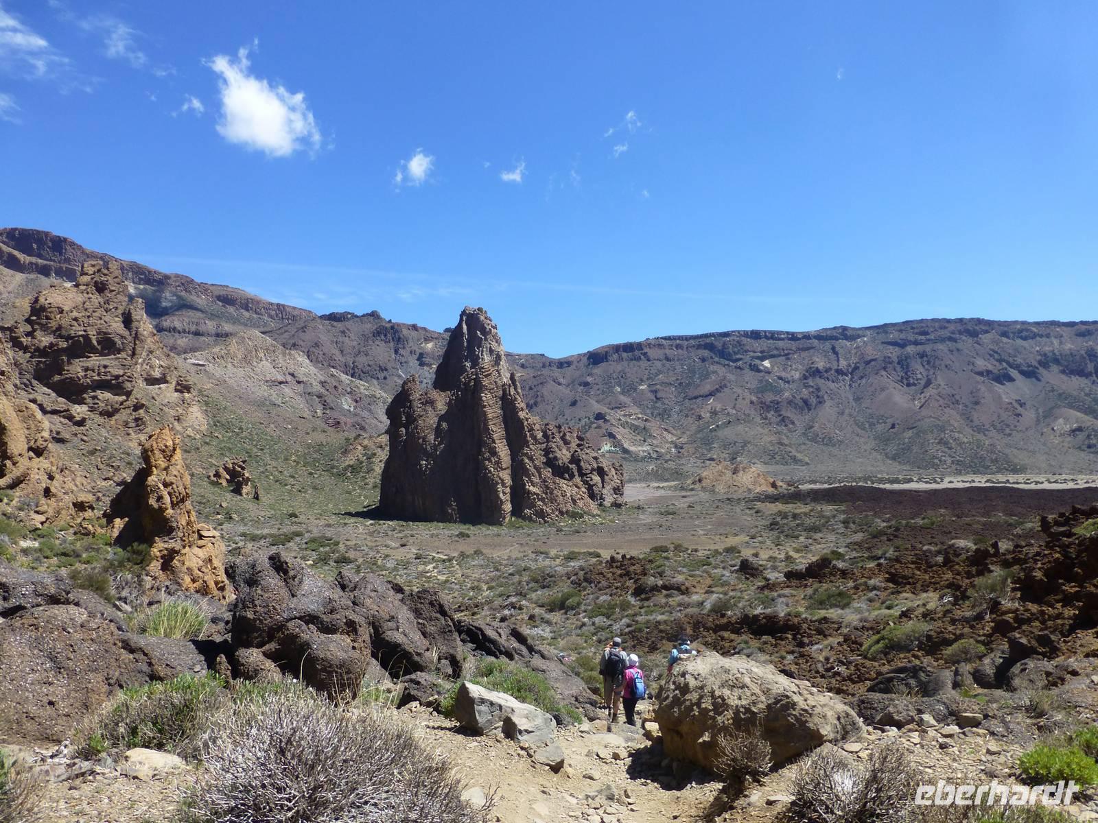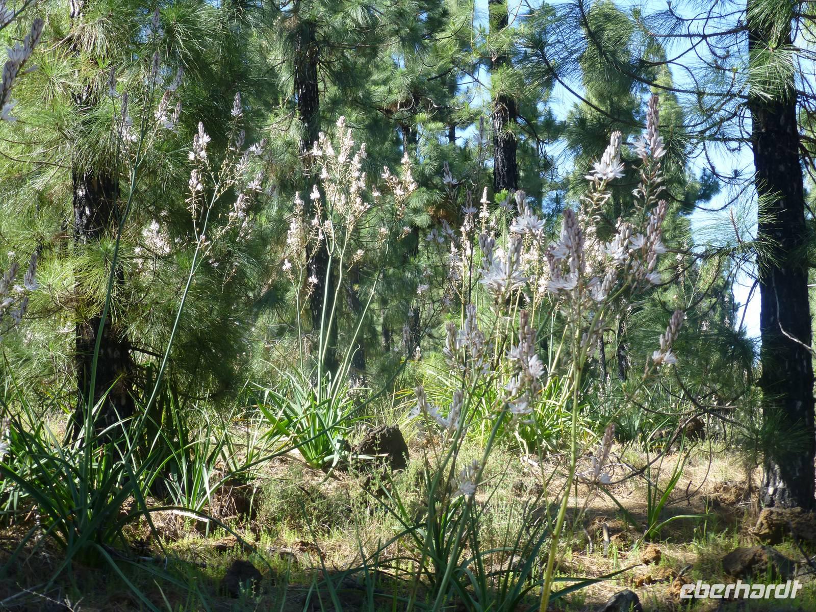 Noch einmal begeben wir uns in den Teide-Nationalpark, nur dass wir uns heute erst dem alten Teide „Pico Viejo" und dann dem jüngsten Vulkan der Insel, dem „Chinyero", widmen. Mit etwas Phantasie erkennt man in den grotesken Felsformationen Hexen, Schuhe und Bären ! Auch heute sehen wir die verschiedenen Ausprägungen der Lava: die krümelige „AA-Lava" einerseits und die Stricklava oder „Pahoehoe-Lava" andererseits. Bei der leichten Wanderung durch den schwarzen Lava-Sand können wir die Natur intensiv genießen. Zwischen den feuerresistenten Kanarenkiefern blühen Aphrodil-Lilien, Katzenminze und Braunwurz. Später gesellen sich auch Erika-Baumheide und leuchtend gelber Kanaren-Hahnenfuß hinzu.