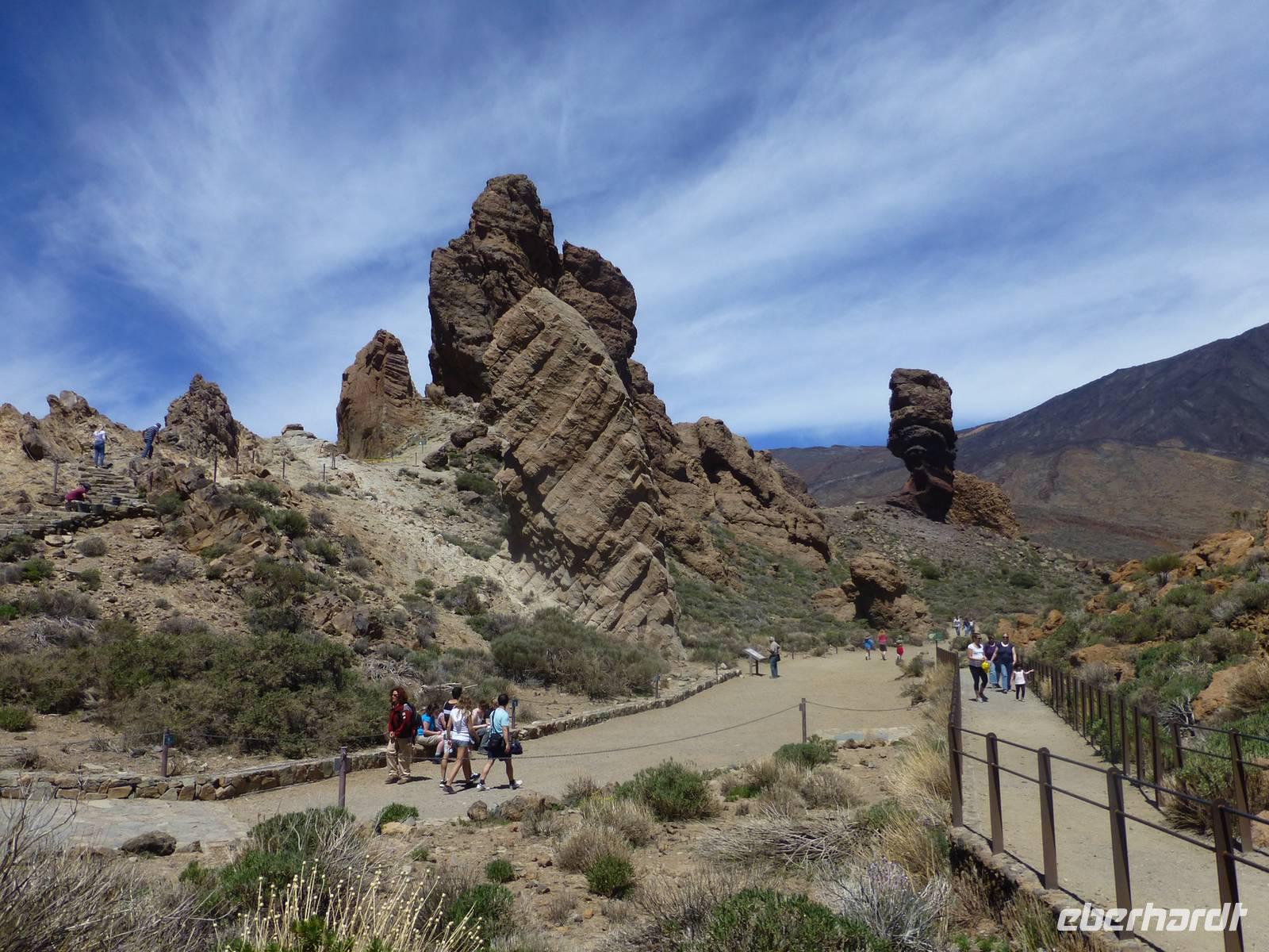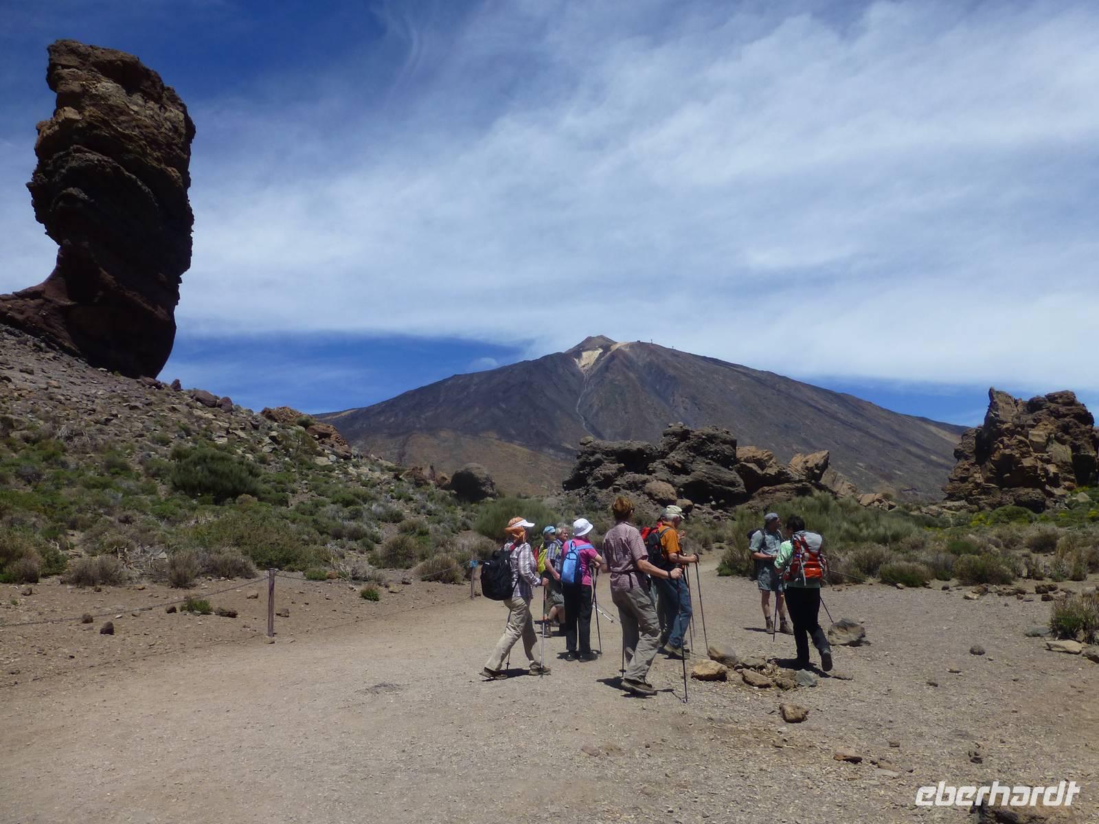 Heute wollen wir hoch hinaus! Am frühen Morgen fahren wir in den Teide-Nationalpark. Wir sind die ersten Gäste an der Gondelbahn und können sogleich hinauf fahren. An der Bergstation auf 3.550 Metern Höhe beginnen wir unsere Wanderung auf den höchsten Berg Spaniens. Der gut ausgebaute Weg führt über Treppen aus Lava-Gestein bis zum Krater und schließlich hinauf zum Gipfel. Die 168 Höhenmeter Aufstieg gestalten sich durch die dünne Luft in dieser Höhe nicht ganz einfach, aber mit ruhigem Schritt arbeiten wir uns langsam hinauf. Dann ist es geschafft! Der 360°-Rundumblick ist einfach atemberaubend und die Mühen des Aufstiegs sind schnell vergessen. Olé! Wir können von hier nicht nur die größte Kraterlandschaft Europas bestaunen sondern auch bis nach Gran Canaria, La Palma, La Gomera und El Hierro blicken. Nach dem obligatorischen Gipfelfoto steigen wir wieder hinab und fahren mit der Gondel zurück. Der majestätische Teide dominiert das Panorama auch bei unserer zweiten Wanderung am Nachmittag. Die Naturgewalten haben in der Kraterlandschaft bizarre Monumente aus Lava-Gestein geformt. An den „Roques de García" beginnt die Tour, wobei wir die unterschiedlichen Formationen näher kennenlernen.