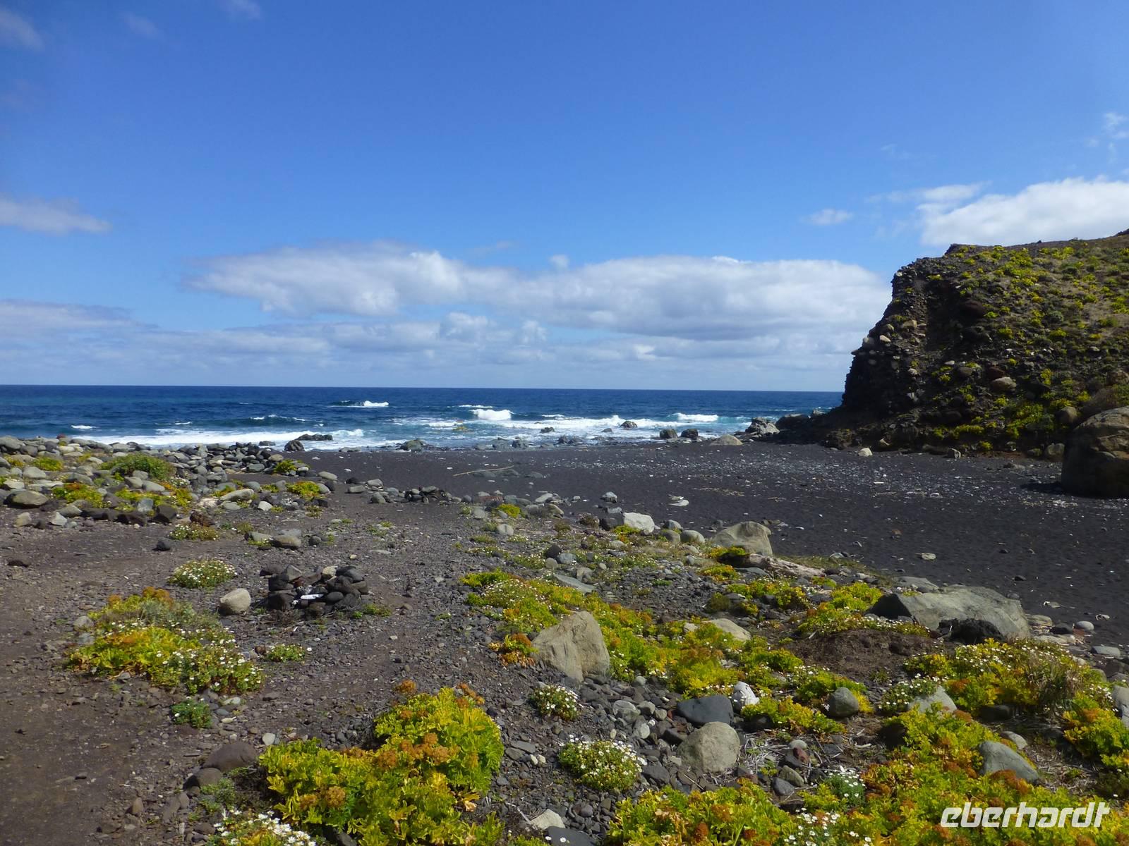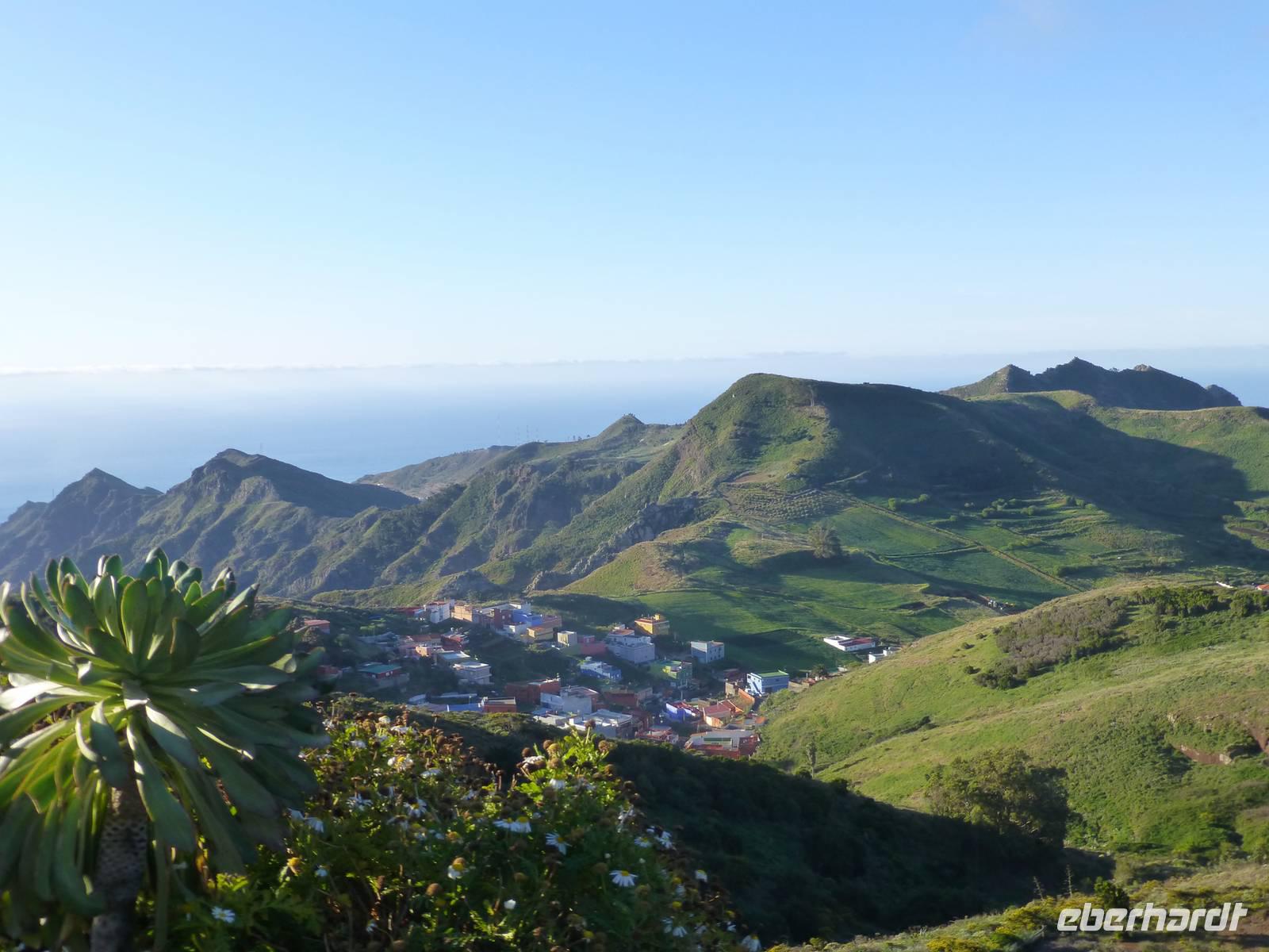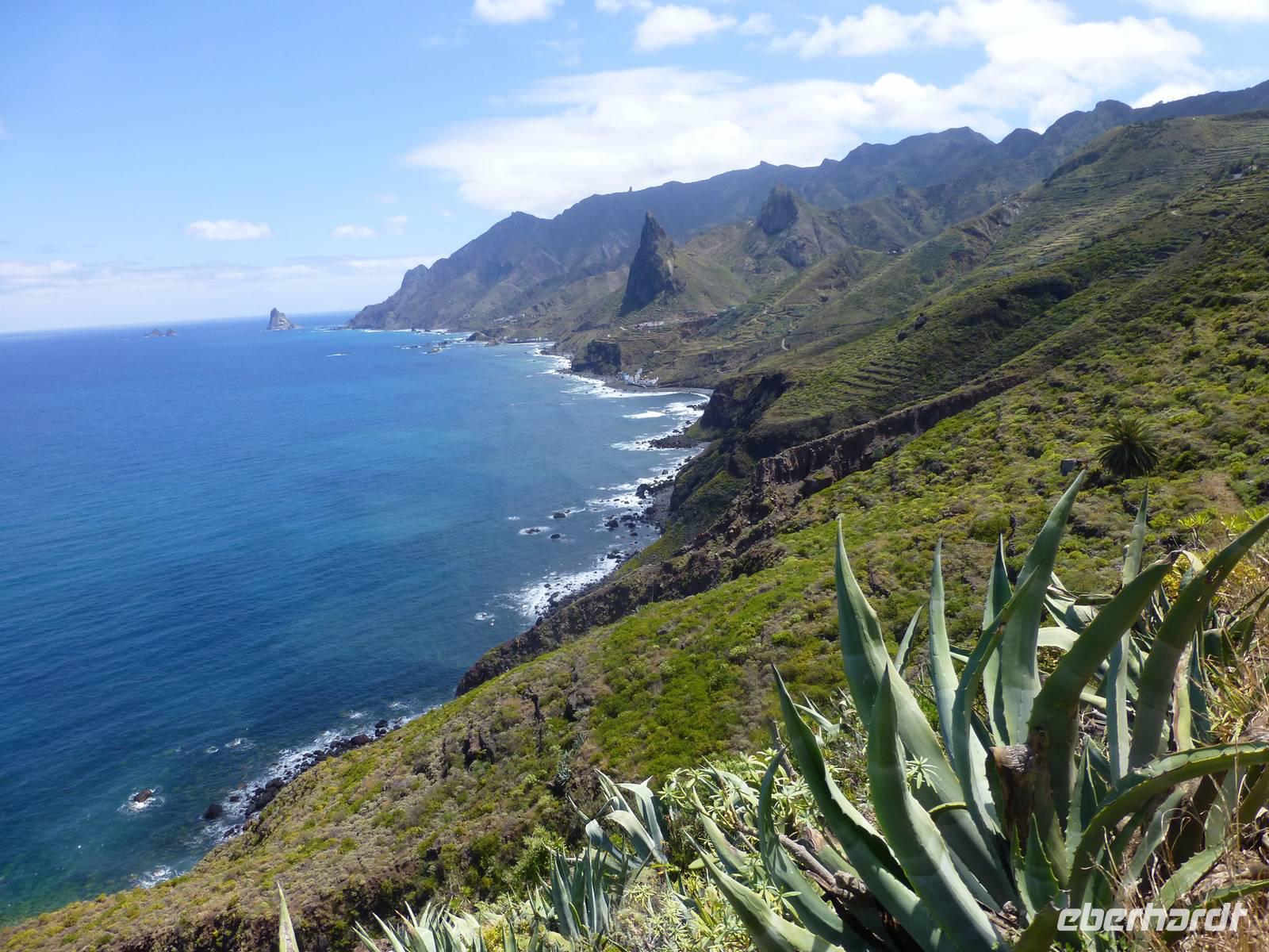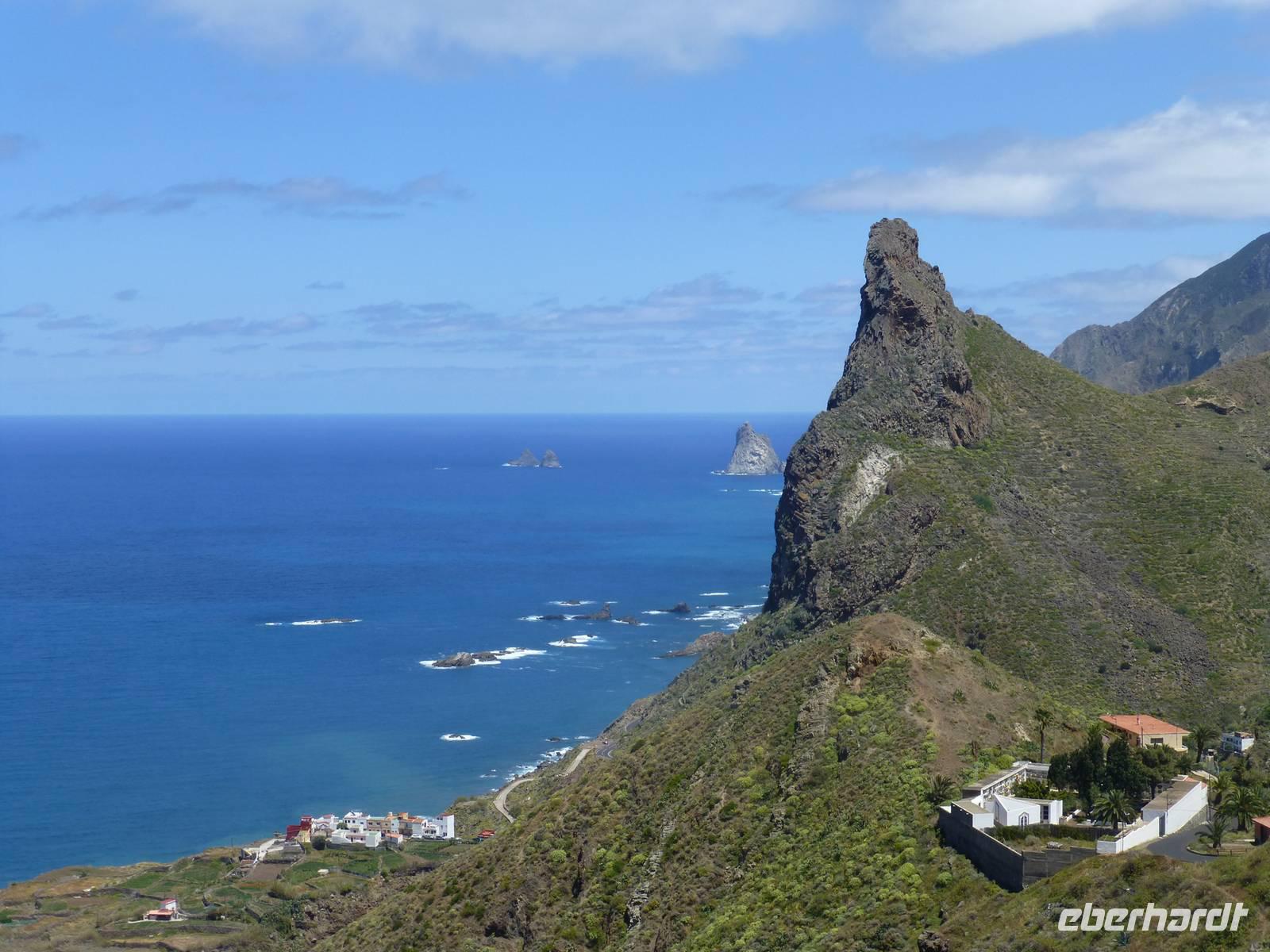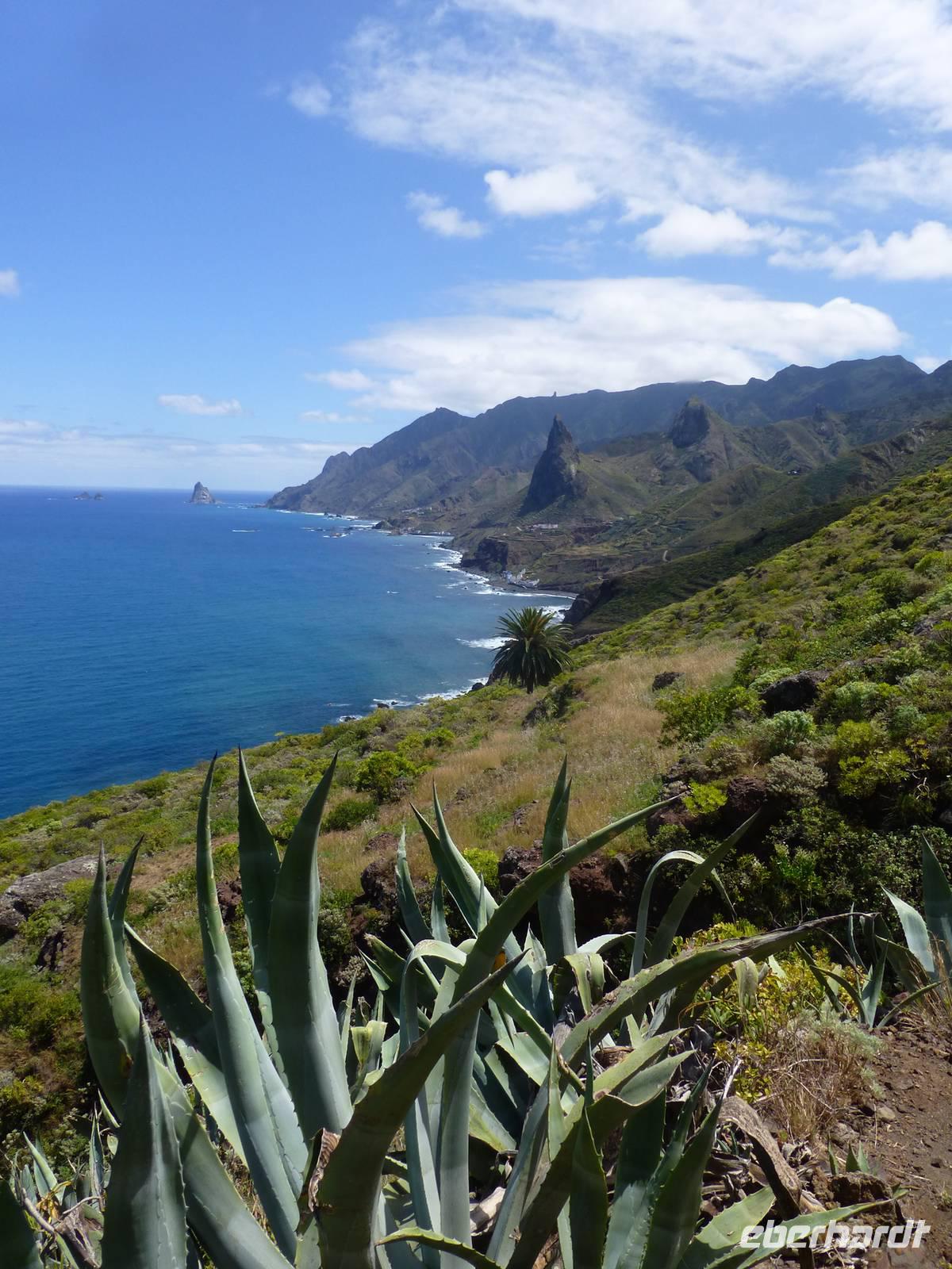 Heute werden (leider schon) zum letzten Mal die Wanderschuhe geschnürt. Mit dem Bus fahren wir über La Laguna in das Anaga-Gebirge im Osten der Insel. In dieser ländlichen Gegend scheint die Welt irgendwie stehen geblieben zu sein. Die Menschen leben hier noch unter sehr einfachen Bedingungen - die steilen Felswände werden durch Terrassen urbar gemacht und die kleinen Häuser schmiegen sich an die schroffen Berghänge. Vom Dörfchen Afur wandern wir durch die Schlucht hinab zum felsigen Strand „Playa del Tamadite". Unterwegs sehen wir die verschiedenen Gesteinsformen, die über Jahrmillionen die Landschaft geprägt haben. Verschiedene Wolfsmilch- und Dickblattgewächse finden selbst auf dem felsigen Untergrund Halt. Bei einem Picknick am Strand lauschen wir dem Meeresrauschen. Auch der letzte Wandertag unserer Reise beschert uns wieder perfektes Wetter mit Sonnenschein und blauem Himmel. Weiter führt der Weg im Auf und Ab entlang der fantastischen Küste. Der Blick aufs tiefblaue Meer, auf die abwechslungsreiche Flora und die wilde Küstenlandschaft ist ein Genuss! Unser Ziel ist das Fischerdorf Taganana, wo wir uns eine Erfrischung in einer Bar genehmigen. Als kleinen „Bonus" legen wir noch einen Stopp in San Andrés ein. Die Attraktion des Ortes ist der lang gezogene goldgelbe Sandstrand „Playa de las Teresitas", der zum Baden einlädt. Durch die Inselhauptstadt Santa Cruz fahren wir schließlich zurück zu unserem Hotel und verabschieden uns von unserem Reiseleiter Othmar, der uns mit einer guten Portion Wissen und Humor durch die herrlichen Landschaften Teneriffas geführt hat.