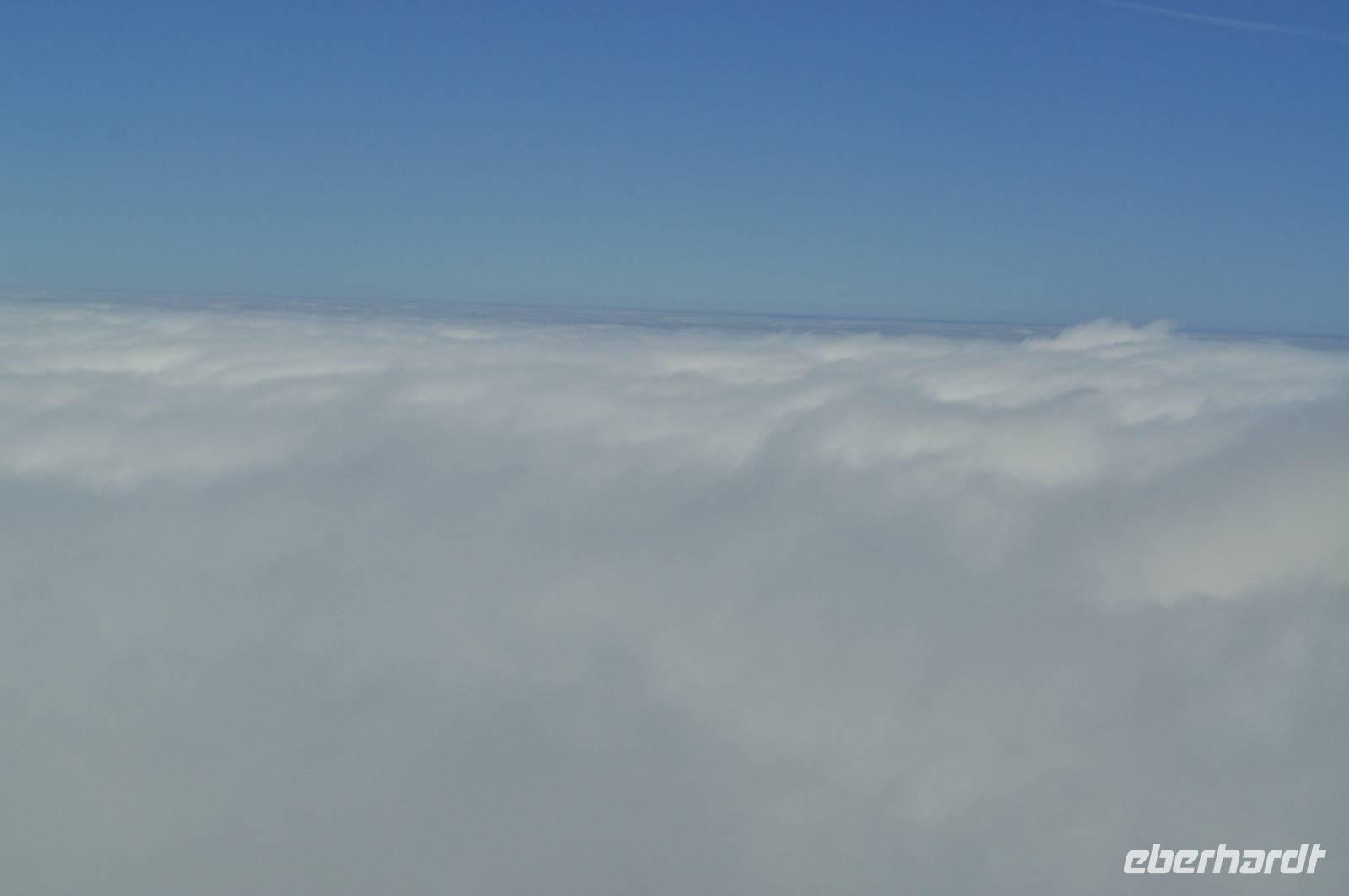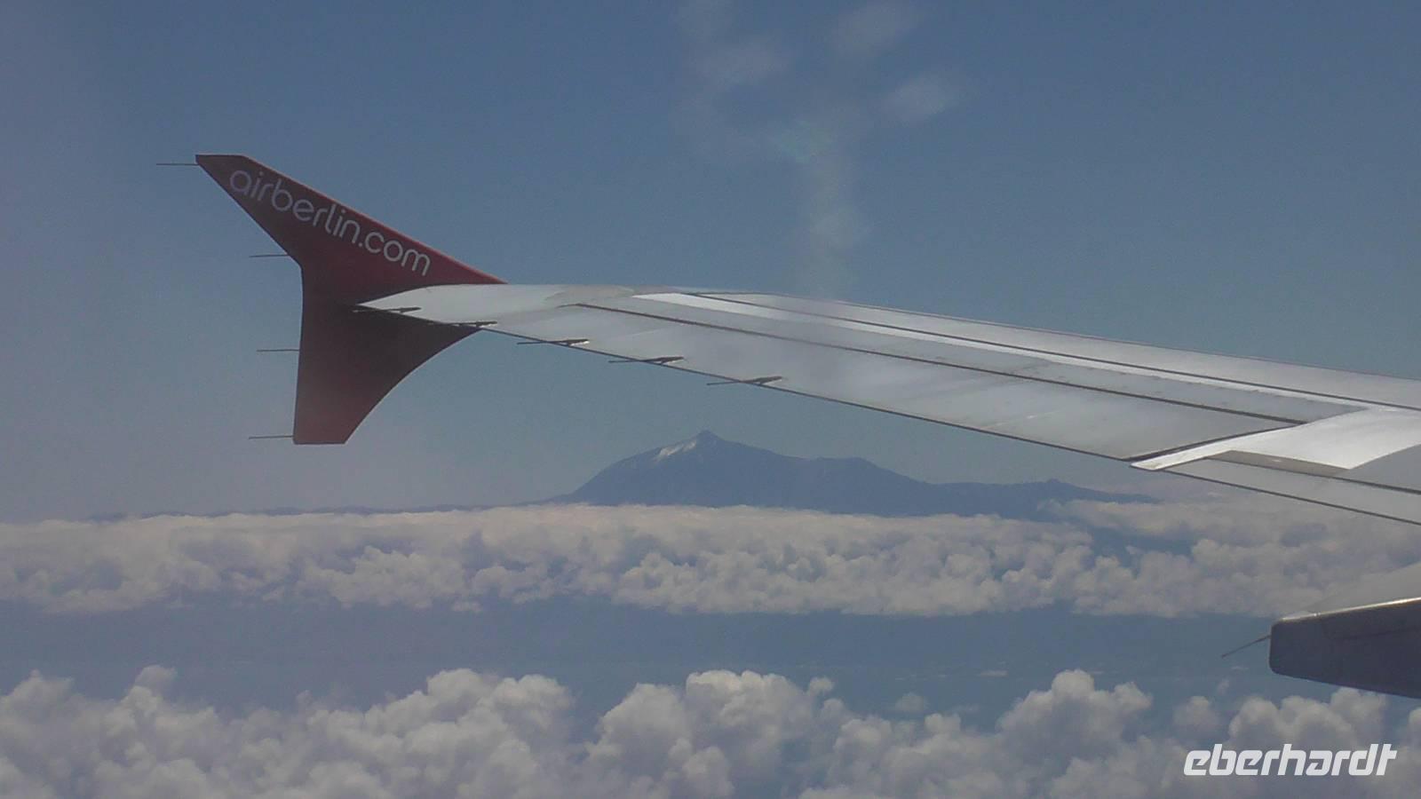 Am frühen Morgen starten wir in Richtung Flughafen Berlin-Tegel. Alle Gäste treffen pünktlich ein. Durch den Vorabend Check-In sparen wir uns lange Wartezeiten am Check-In Schalter. Mit ausgedruckter Bordkarte müssen wir nur noch unser Gepäck abgeben, in wenigen Minuten ist alles erledigt. Pünktlich startet unser Air Berlin Flug mit einem Airbus 321 in Richtung Santa Cruz de La Palma. Wir fliegen über Köln und Paris (inkl. Blick auf den Eiffelturm aus 10.000 m Höhe). Nach gut