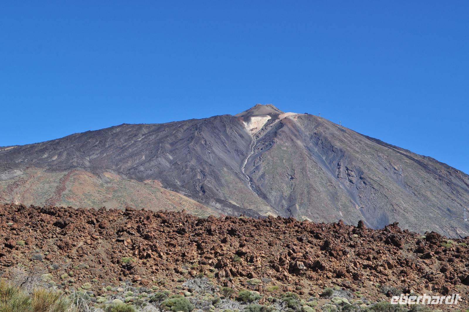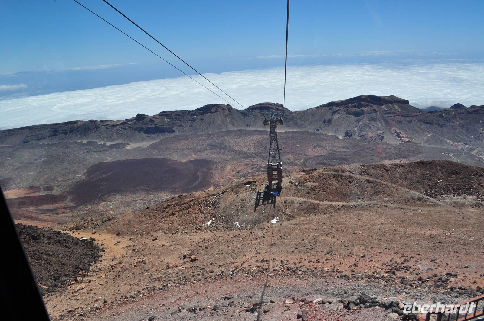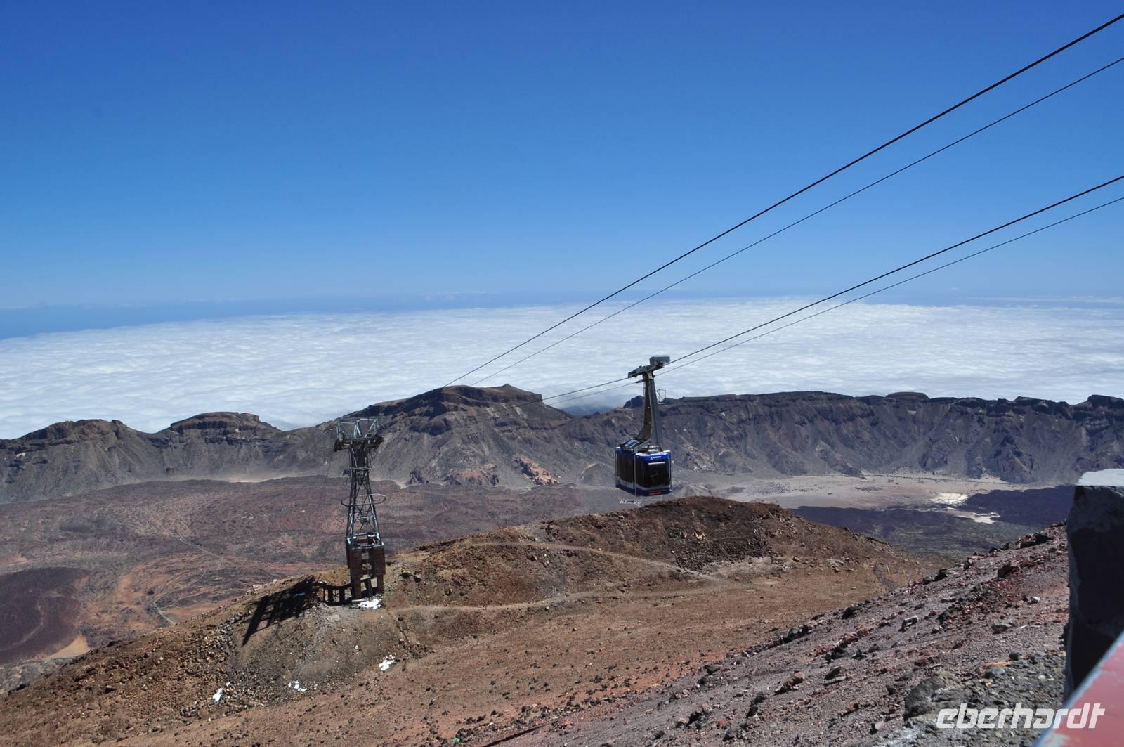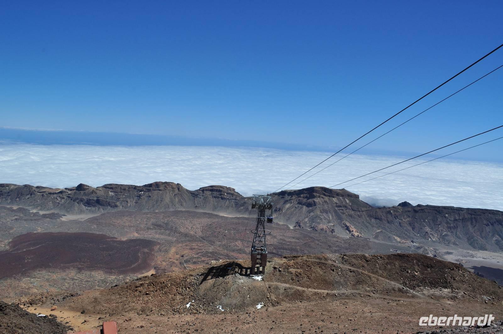 Es folgte das glückliche Gipfelfoto in 3.718 m Höhe. Über uns strahlendblauer Himmel. Das dichte Wolkenmeer des Passats lag gut 2.000 m tiefer, ein atemberaubender Blick über den Archipel der Kanaren und sicher ein unvergesslicher Augenblick für jeden von uns.
