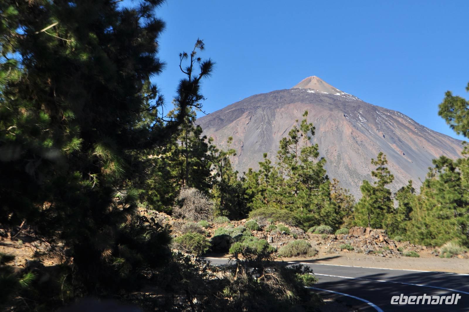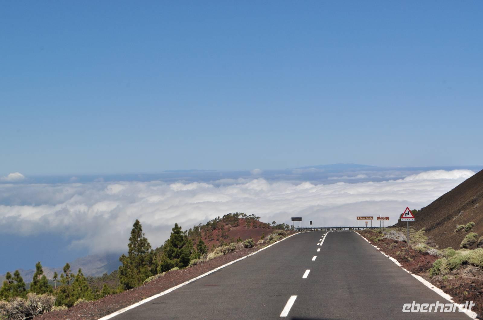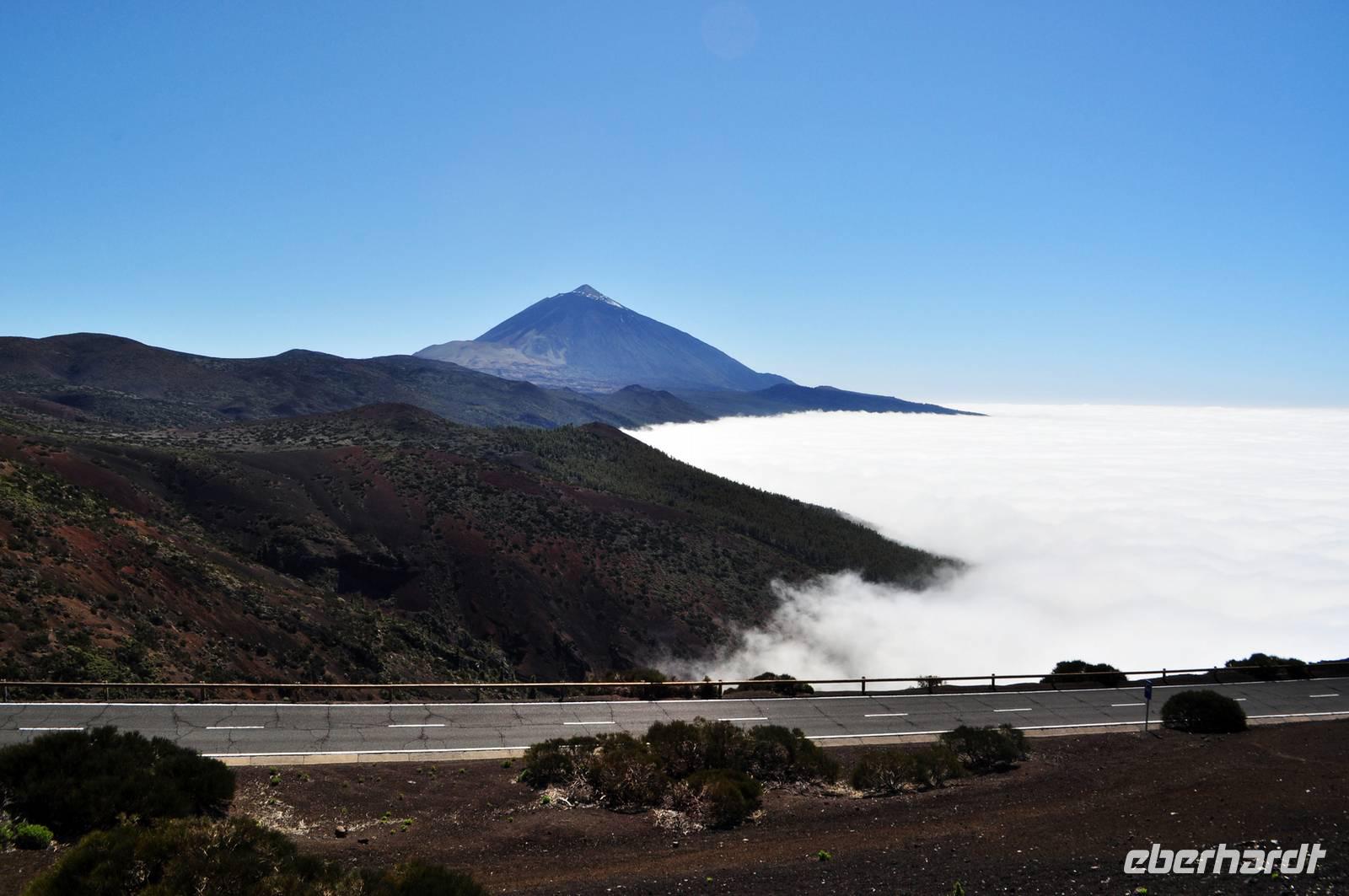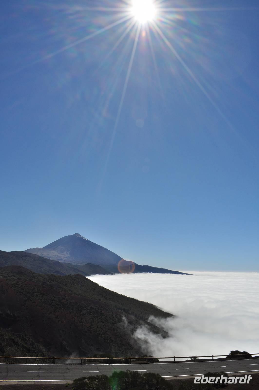Auf der Rückfahrt verabschiedete sich der Teide nochmal von seiner schönsten Seite. Der spitze Kegel mit dem darunterliegenden Wolkenmeer. Ebenso ein atemberaubendes Bild in der Nähe der astronomischen Sonnenobservatorien am Nordrand der Caldera. Bei gut 1.700m Höhe tauchen wir im Pinienwald in das Nebelmeer aus Wolken ein. Anscheinend verließen wir wieder das Reich der Götter um auf das Irdische zurück zu kehren. Über La Laguna ging es zurück nach Puerto de la Cruz.