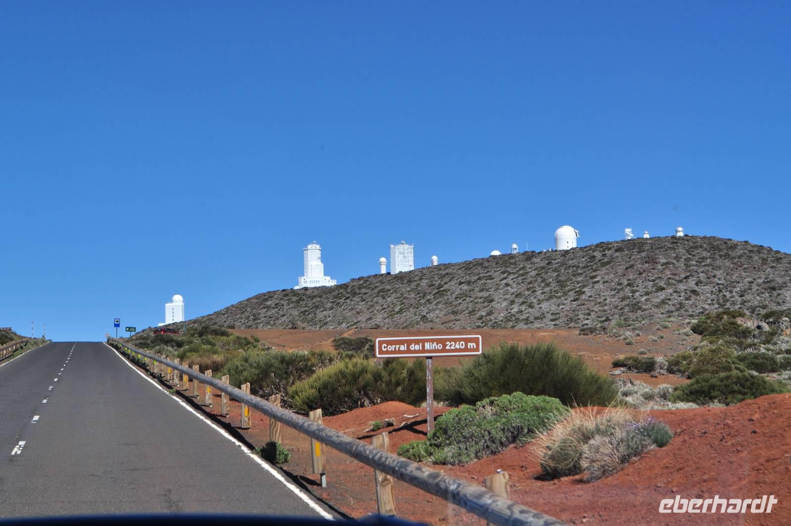 In den nächsten Tagen gibt es immer ab 7.30 Uhr Frühstück. Um 9.00 Uhr starten wir jeweils zu unseren Wanderungen. Andreas und unser Chauffeur holen uns pünktlich am Hotel ab. Es geht hinauf auf über 2.000m Höhe zum Roque de los Muchachos (2.426 m), dem höchsten Gipfel