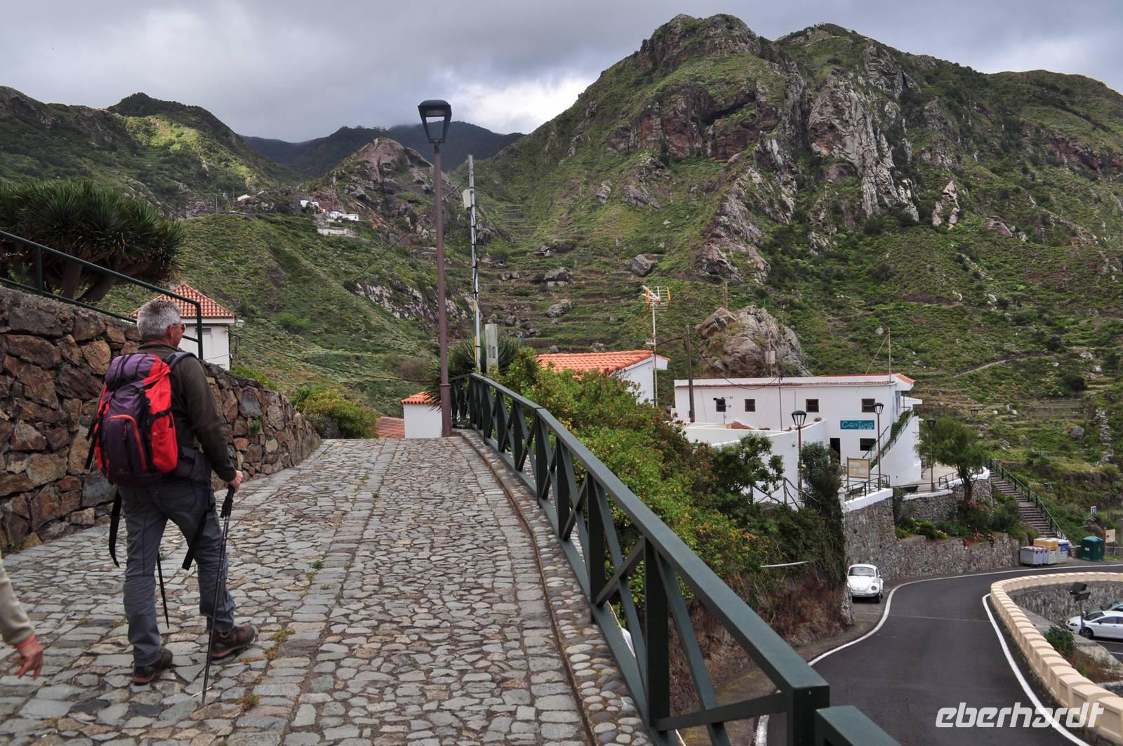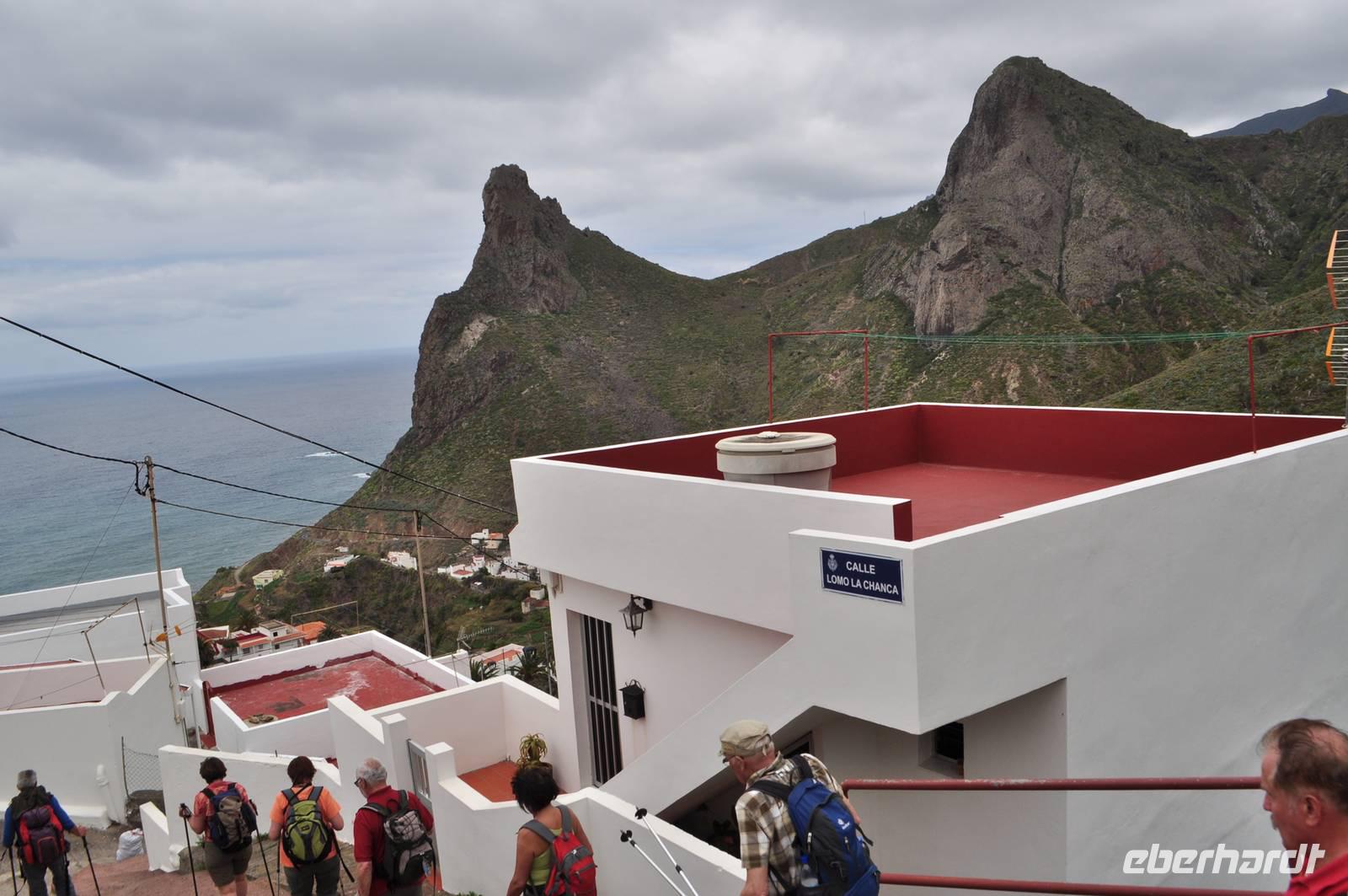 Unser Tagesziel war das Bergdorf Taganana. Mit dem Bus ging es ein kurzes Stück weiter in den kleinen Ort Roque de las Bodegas. Der Ortsname ist hier Programm, direkt am Ufer liegt ein Lokal. Alles andere als ein Touristenlokal. Ein typisches kanarisches Fischrestaurant. Bei traditioneller handgemachter frei improvisierter Musik der Einheimischen, gab es Tapas und Wein. Wir waren die einzigen Deutschen im ganzen Ort. Das Restaurant hingegen voll mit Kanarios. Wir waren herzlich eingeladen hier unsere schöne Wanderreise auf La Palma & Teneriffa gemütlich ausklingen zu lassen.