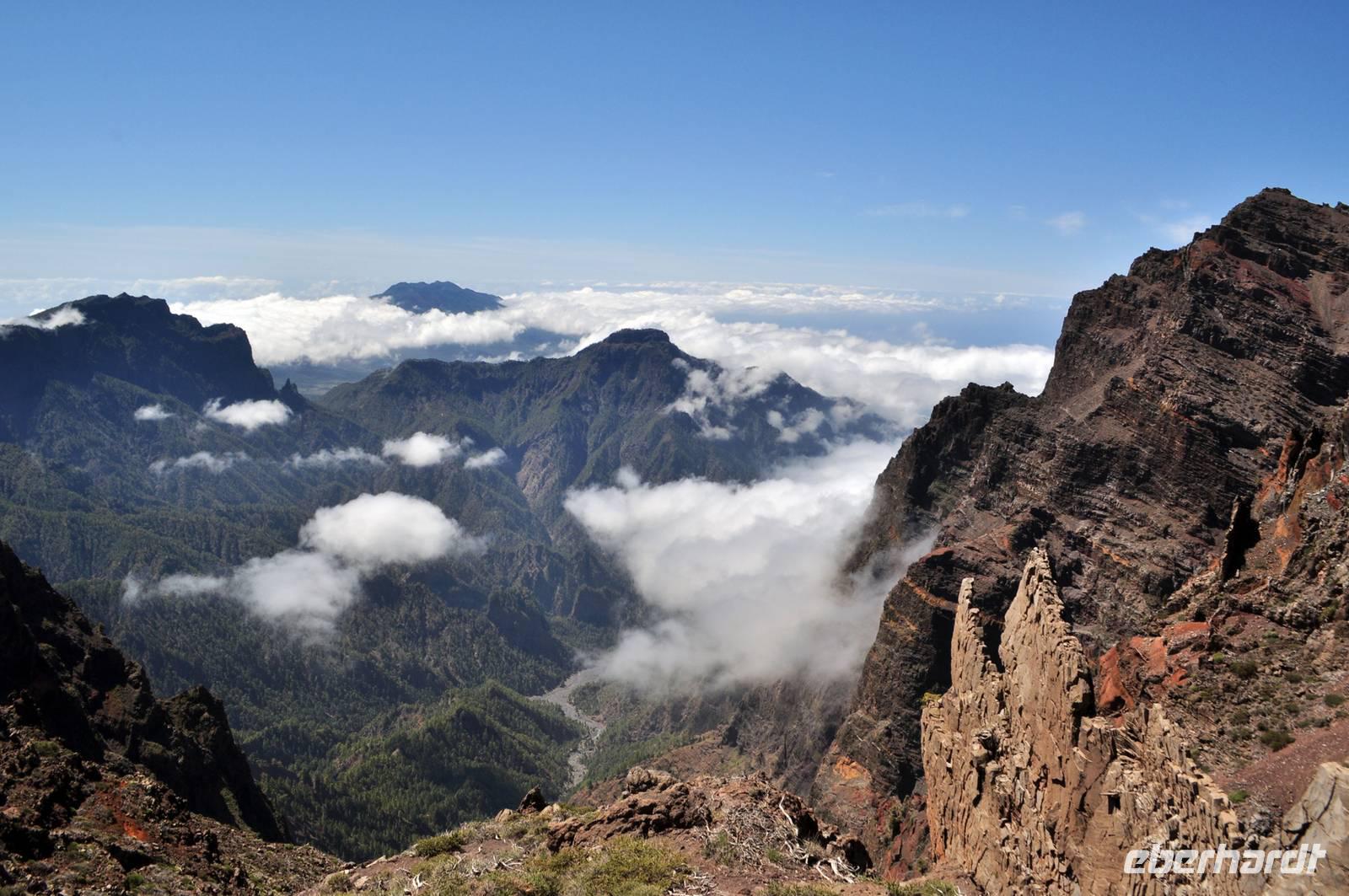 (2.348 m). Wir bekommen einen ersten Eindruck von dieser riesigen Caldera de Taburiente und den geologischen Kräften, die hierwirken mussten.
