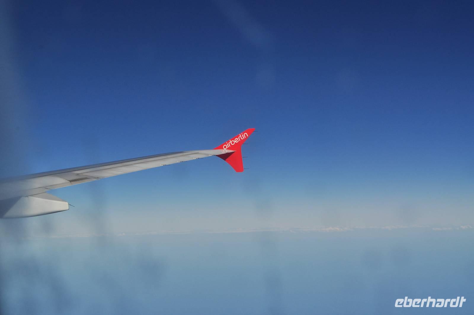 Mit einstündiger Verspätung hoben wir mit unserem Airbus 321 von Air Berlin wieder in Richtung Berlin Tegel ab. Nach ca. 5 Stunden Flug erreichten wir unser Ziel.