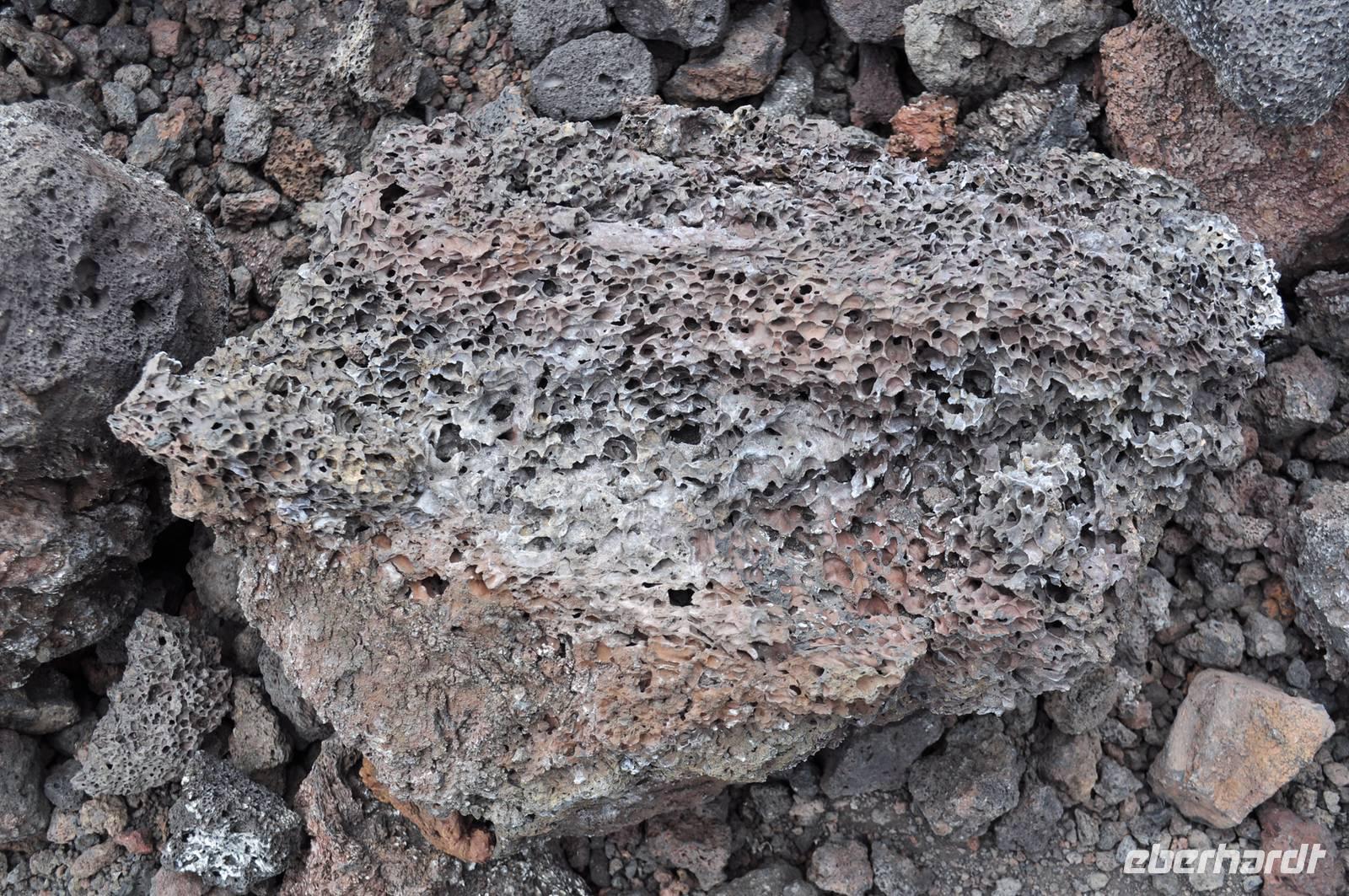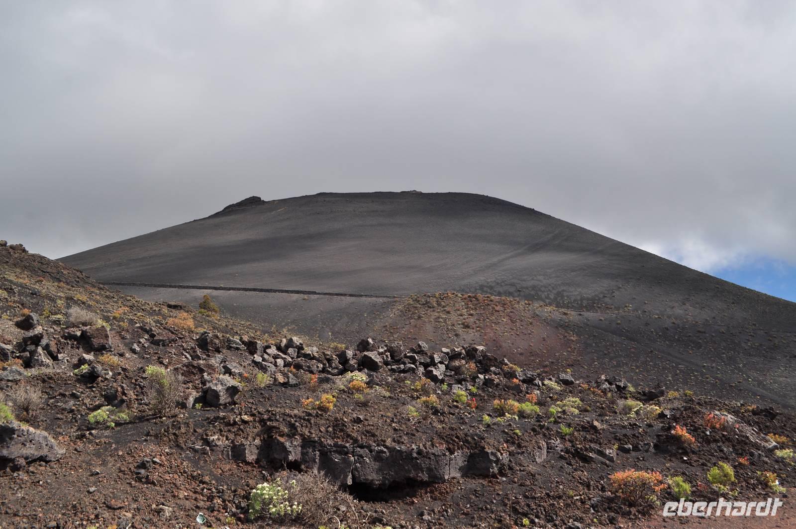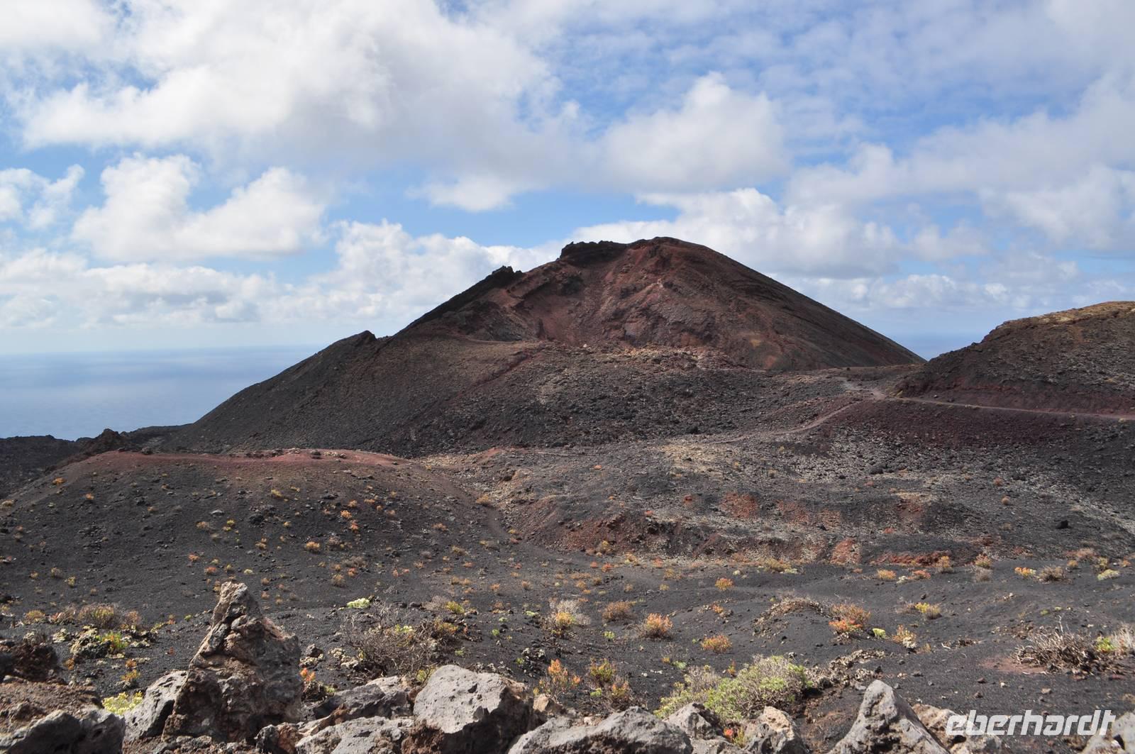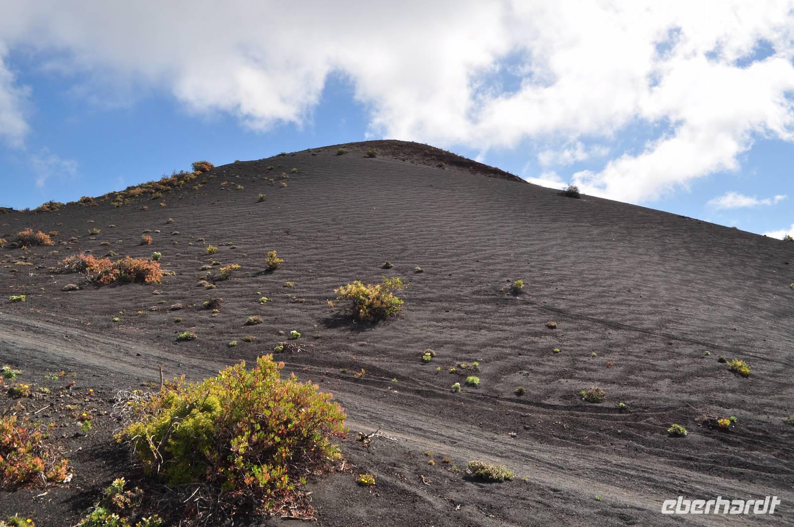 Irgendwann erreichten mich die ersten Schwefelgerüche, Banausen sprechen von „stinkenden faulen Eiern", zugegebenermaßen ist der Vergleich nicht ganz von der Hand zu weisen. Für einen erfahrenen Vulkangänger bedeutet es aber, man nähert sich dem Zentrum. Zuletzt schnupperte ich diesen Geruch auf Vulcano auf unserer Wanderreise „Ätna und die Äolischen Inseln", in abgeschwächter Form auch am Teneguia im Süden der Insel La Palma. Hier nun wieder sehr deutlich.