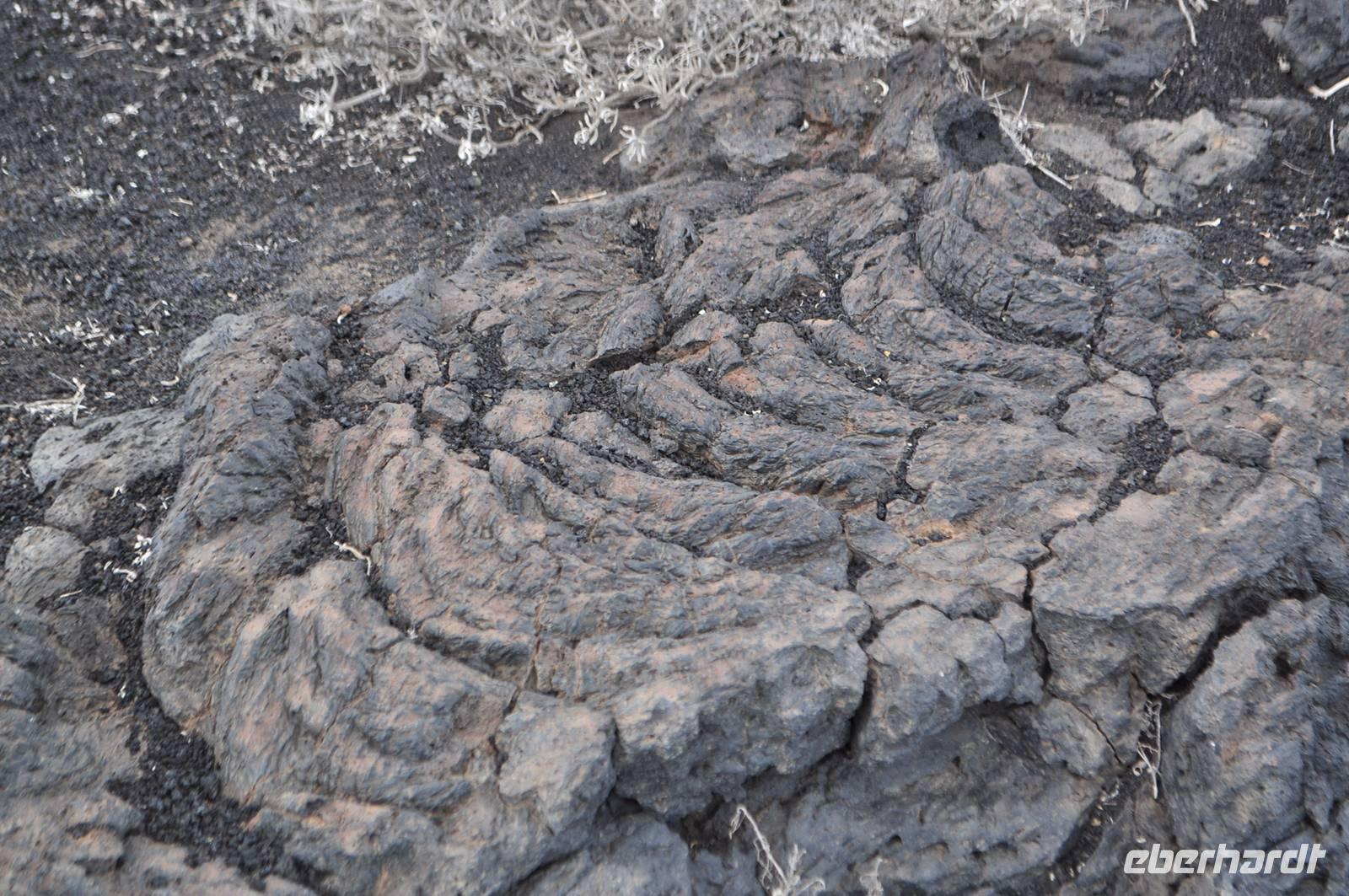 Den vulkanologisch interessierten Gästen bietet sich ein abwechslungsreiches Bild unterschiedlichster Vulkan- und Lavaprodukte. Ein Highlight erwartet uns zum Ende der Wanderung. Dann gibt es sogenannte Kissenlava, englisch Pillowlava. Sie ist weltweit nur sehr selten zu sehen, da sie nur entsteht wenn heiße Lava auf das Meer trifft. In der Regel passiert das unter Wasser. Die Existenz dieser Lava ist ein Beweis, dass dieser Teil früher im Meer gelegen haben muss und sich durch tektonische Ereignisse auf heutiges Niveau angehoben hat. Es handelt sich um Relikt als La Palma vielleicht noch ein Seamount war (ein unterseeischer Berg, der die Meeresoberfläche noch nicht berührt).