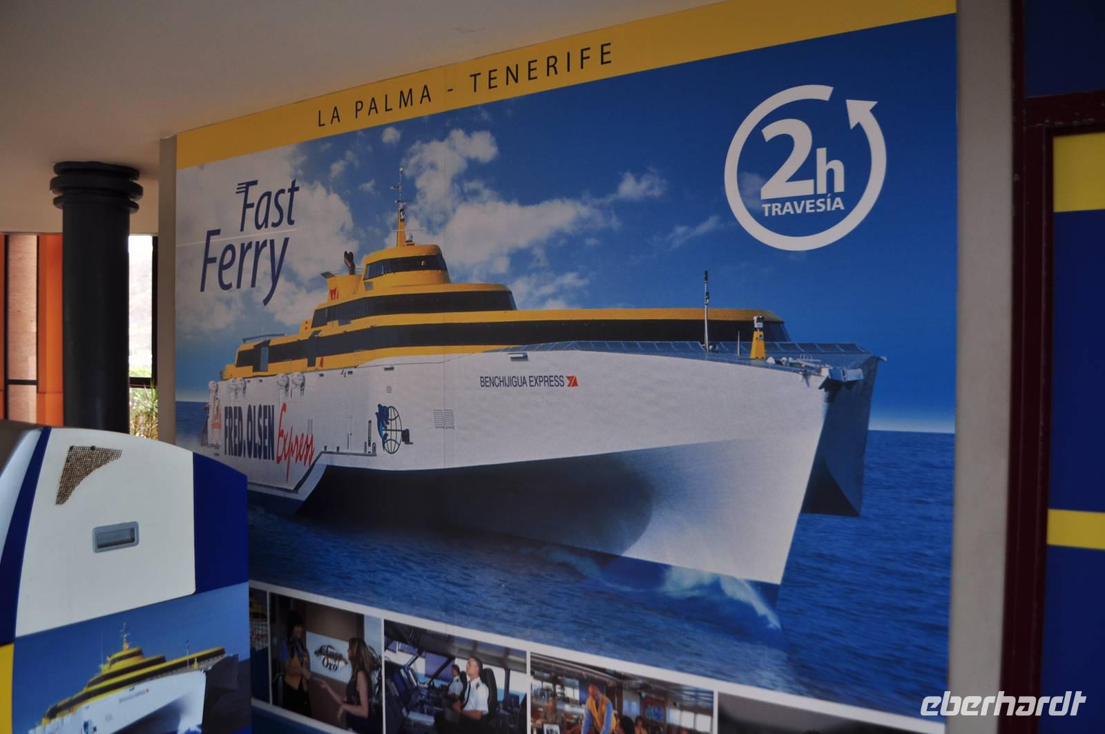 Im Hafen wartet der Trimaran Benchijigua Express der norwegischen Reederei Fred Olsen. Mit fast