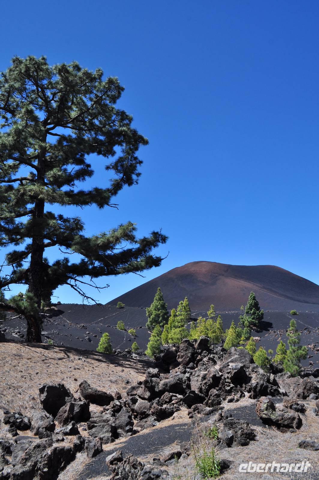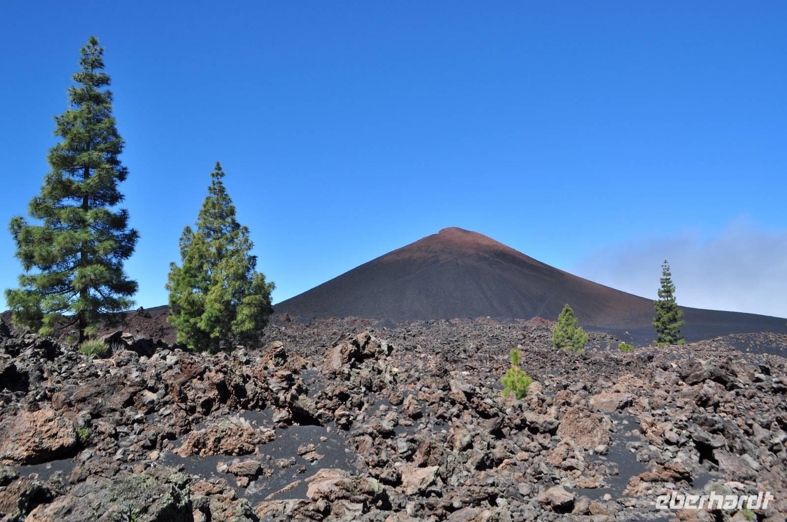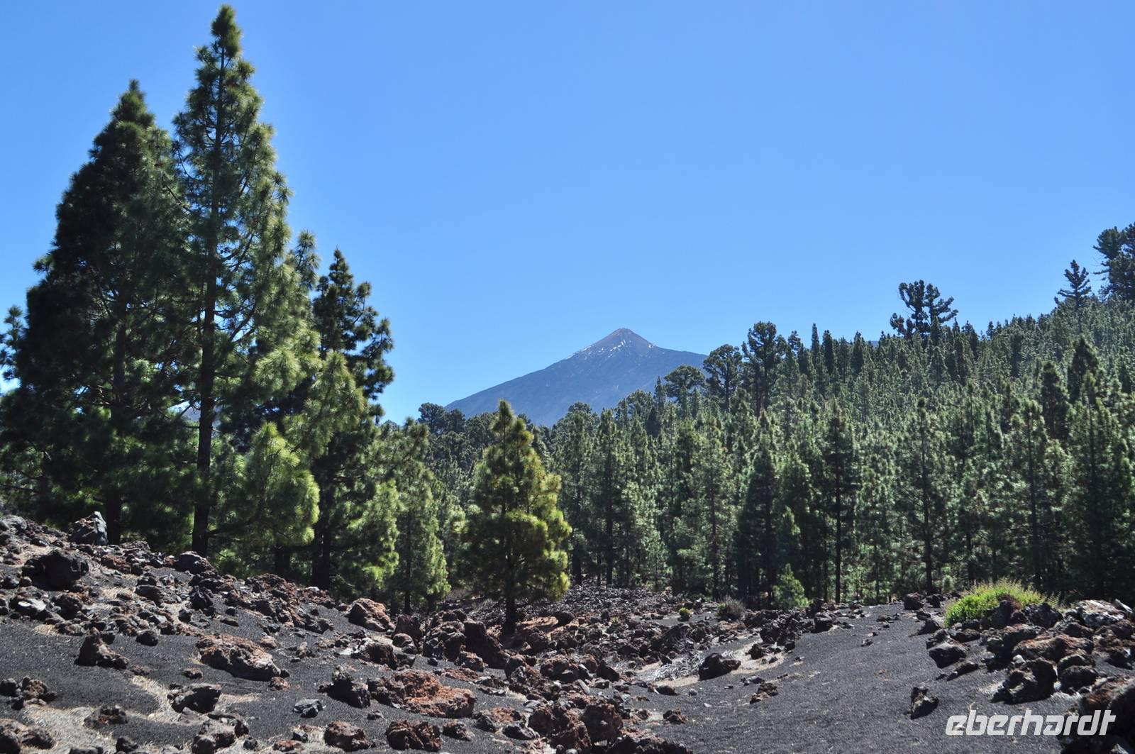 Unsere Wanderung beginnt etwas tiefer und westlicher. Eine Wanderung um den schwarzen Asche- und Schlackekegel des Chinyero. Eine sehr schöne einfache Wanderung durch duftende Pinienwälder mit phantastischen Ausblicken zum Teide und Chinyero Kegel.