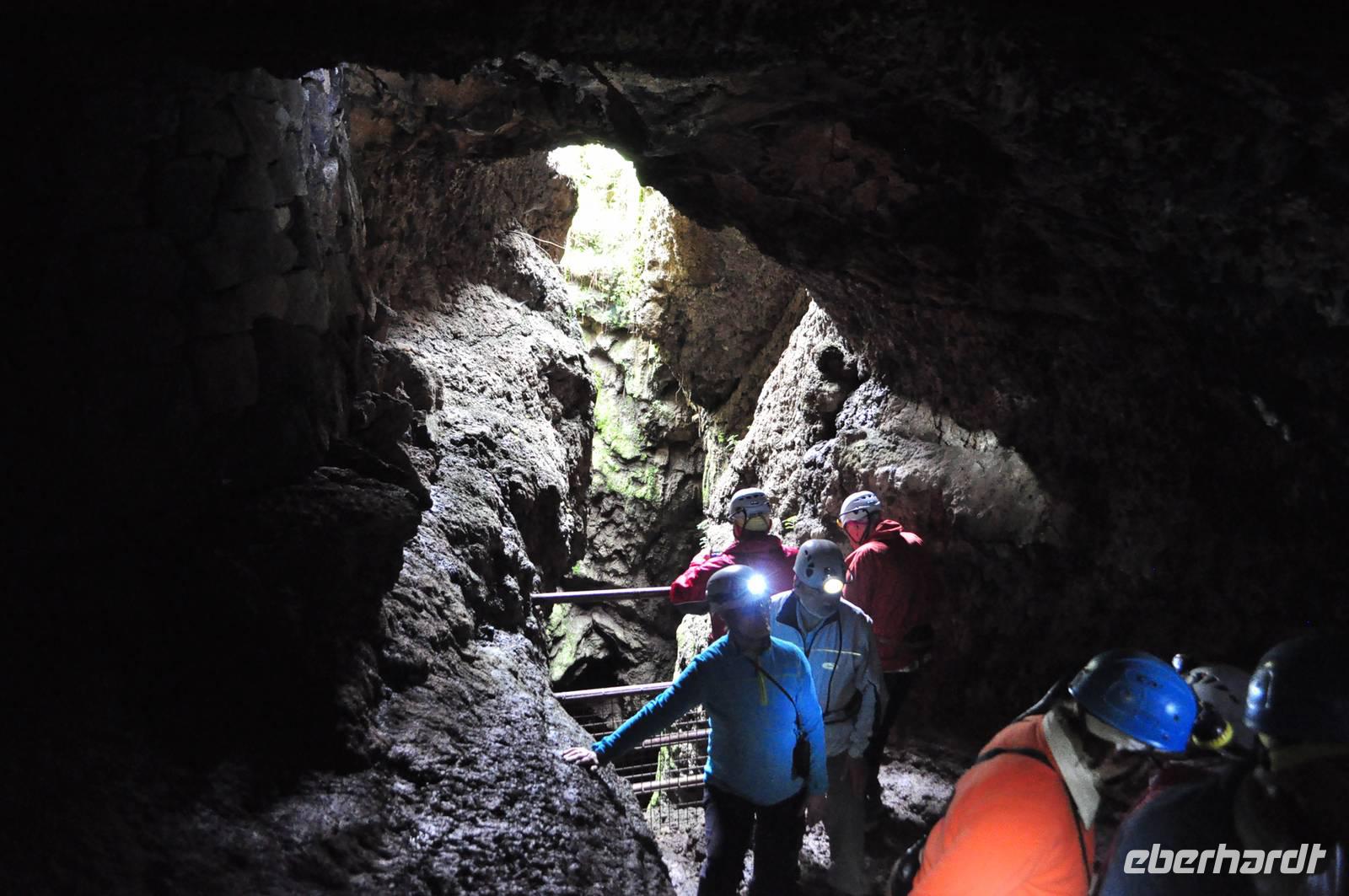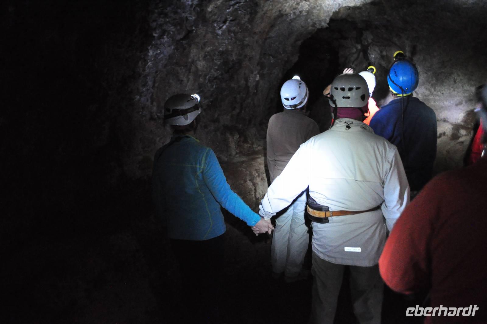 Ausgestattet mit Helm und Stirnlampe dürfen wir diese andere Welt inmitten eines Wäldchens gelegen betreten. Die Tunnel wurden von einer Frau beim Brombeerpflücken entdeckt. Nur wenigen Besuchern ist es erlaubt in diese sensible Welt einzudringen.