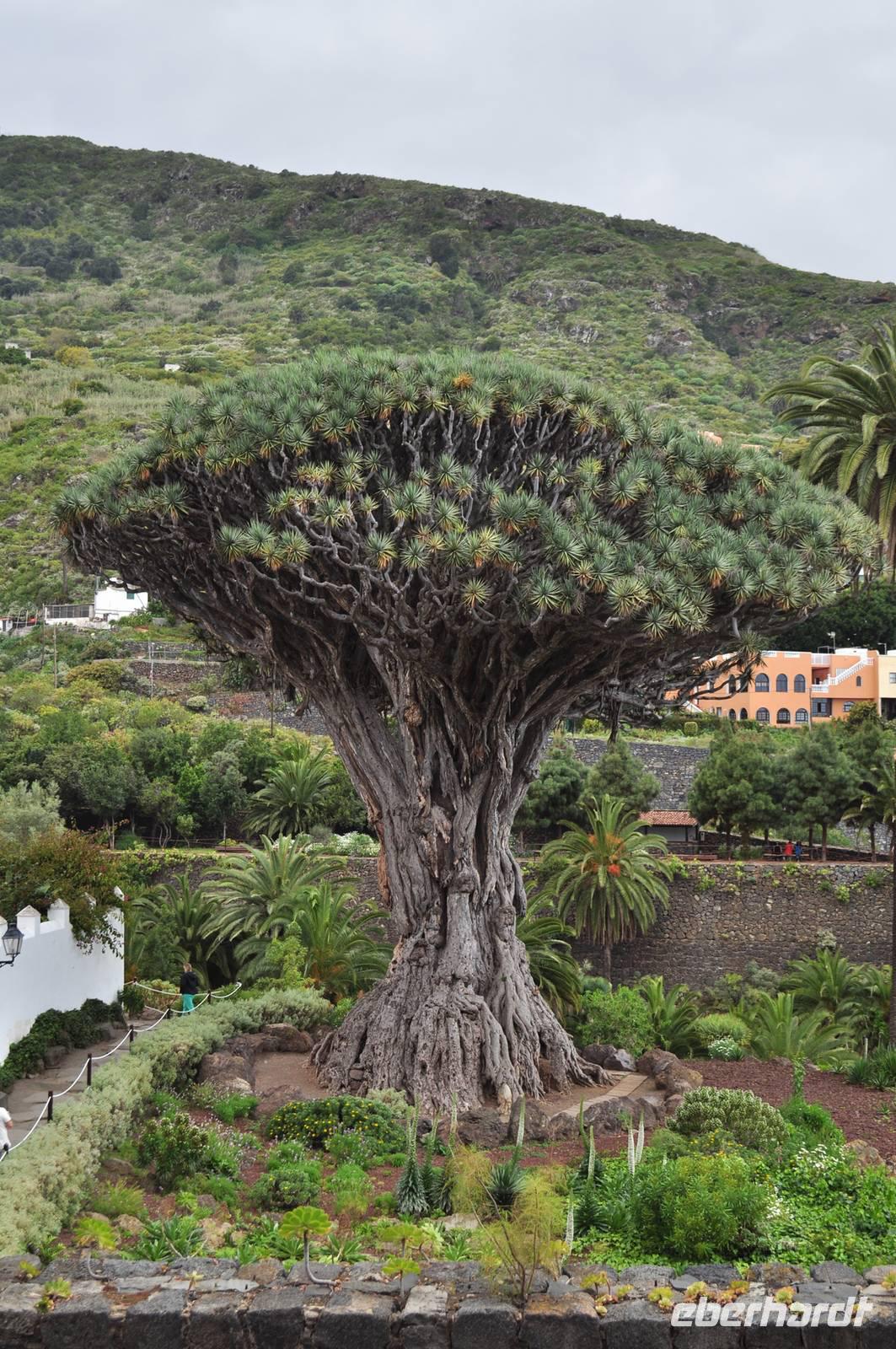 Diesen Tag lassen wir am Informationszentrum mit einem Barraquito ausklingen, einer typischen kanarischen Kaffeespezialität mit Schuss. Bevor wir uns auf dem Weg ins Hotel begeben besuchen wir noch den berühmten Drachenbaum. Ein sehr beeindruckendes Exemplar nach neuesten Erkenntnissen ca. 450 Jahre alt.
