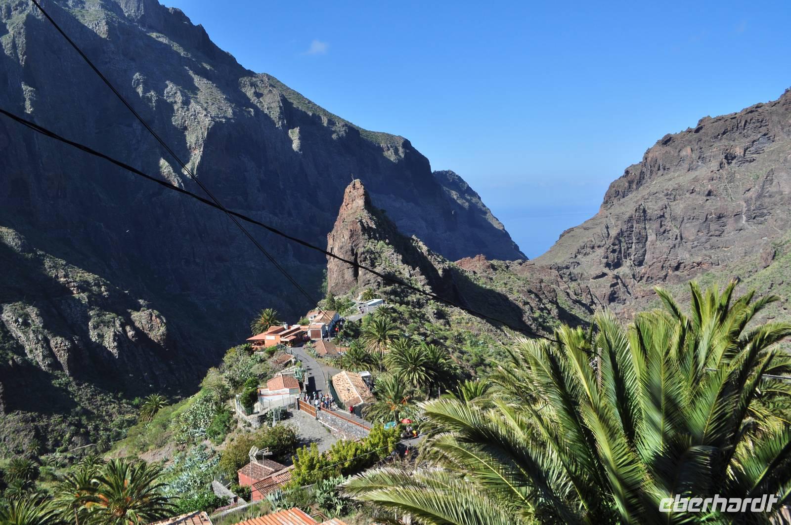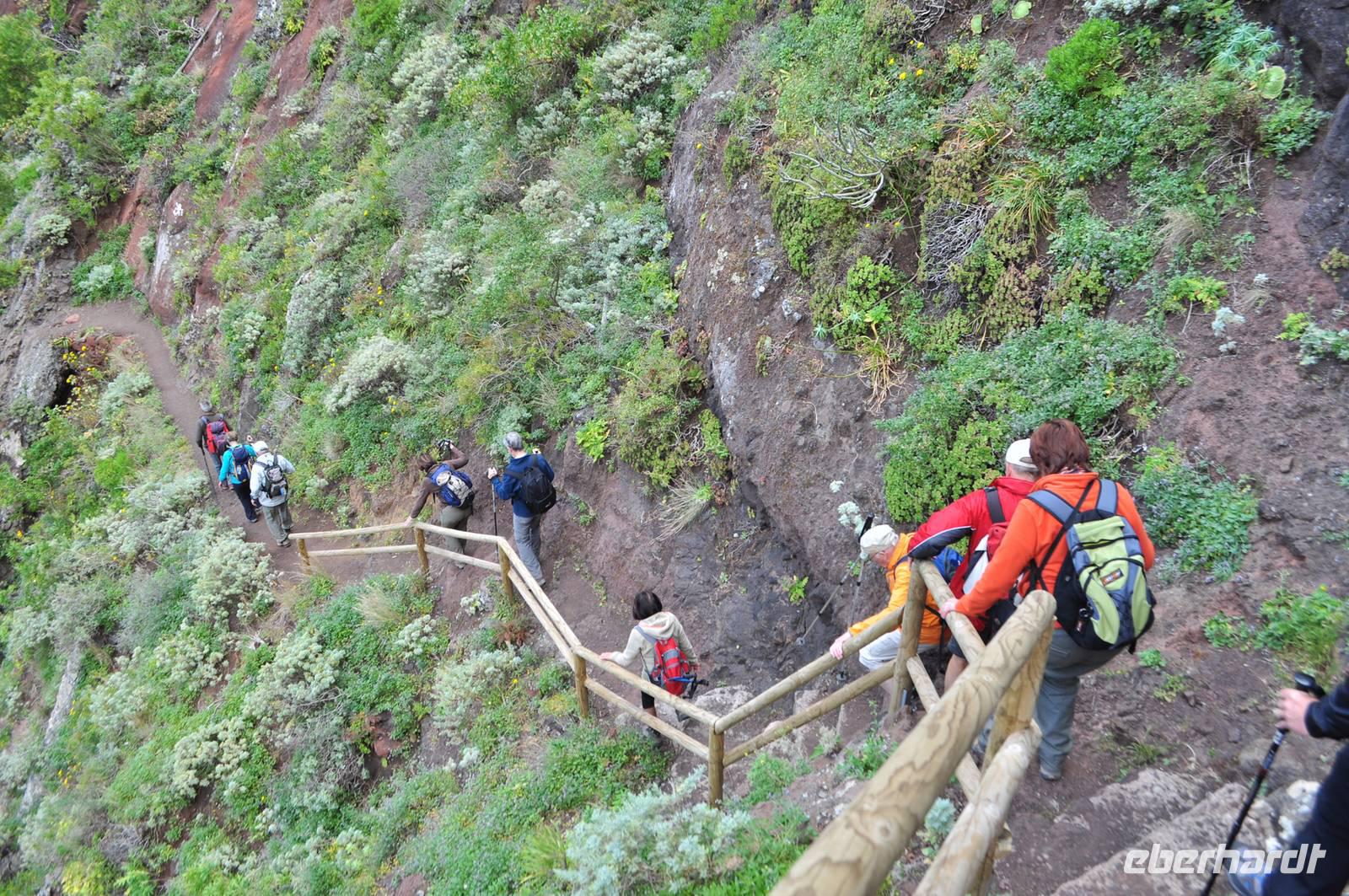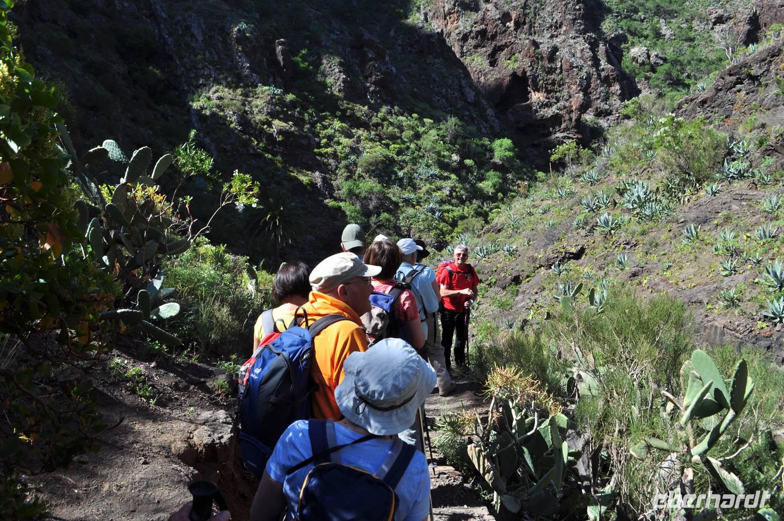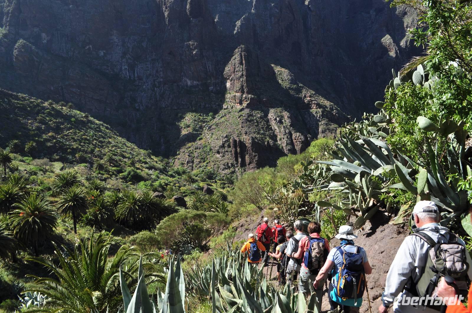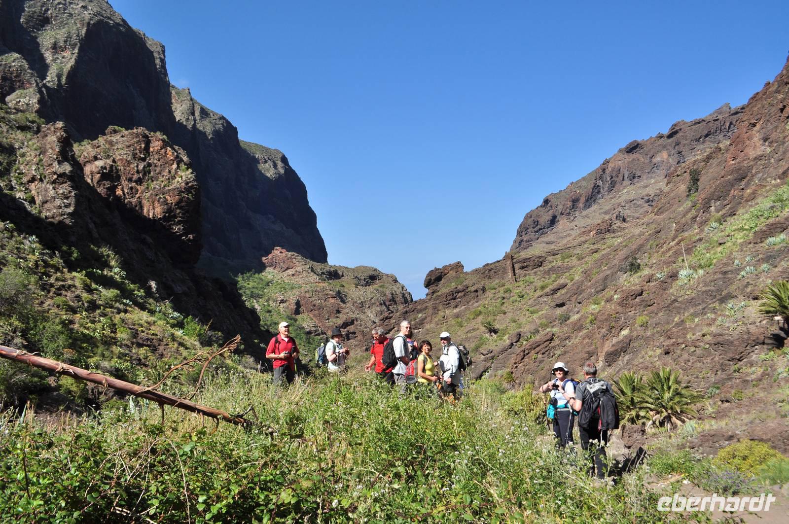 Unser heutiges Ziel die die berühmte Masca Schlucht. Eine wildromantische, zugleich schroffe Schlucht. Sie beginnt in über 600m Höhe und endet in einer Felsbucht am Meer. Diese Wanderung ist technisch sehr anspruchsvoll. Es sind in der Länge zwar „nur" ca. 6 - 7 km, aber der Weg hat es in sich.