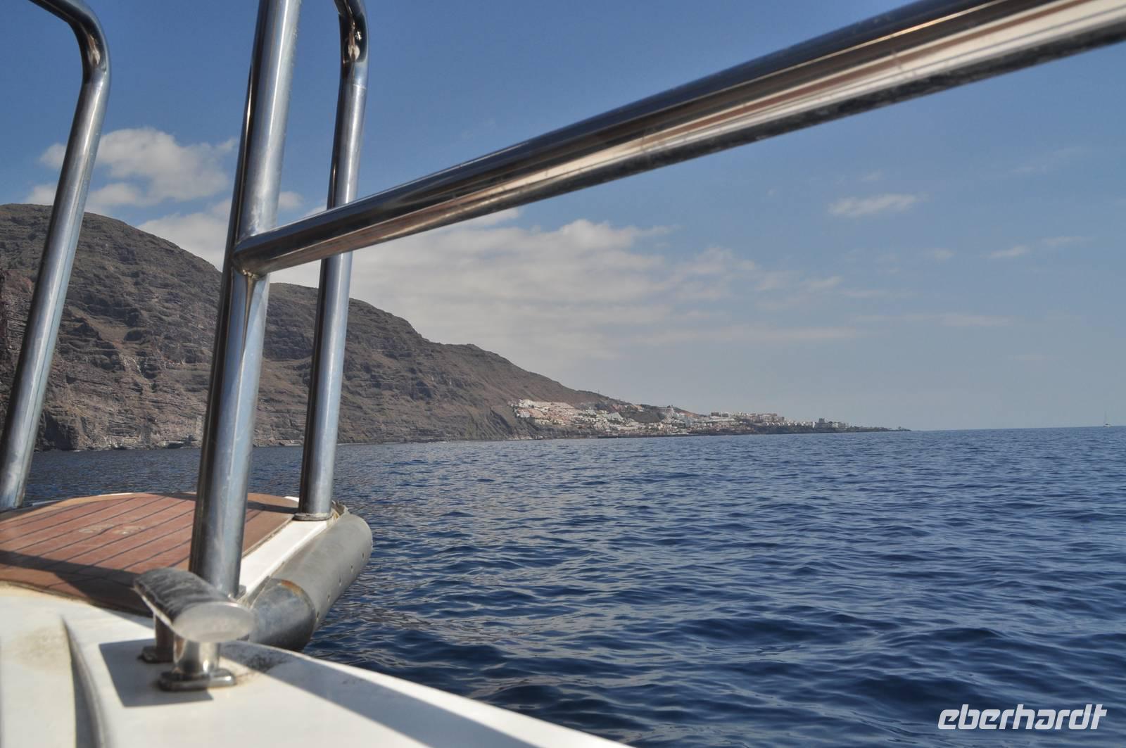 Ab der Felsenbucht bringt uns ein Boot nach Los Gigantes. Wer Glück hat kann Seeadler auf dieser Fahrt beobachten. Die meisten konzentrieren sich aber auf das Freibier.