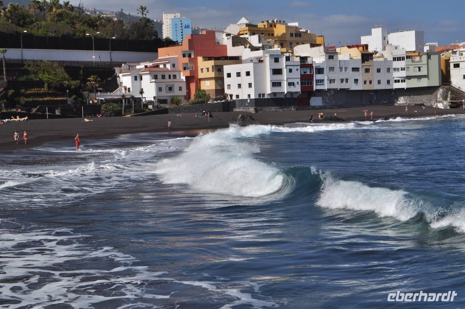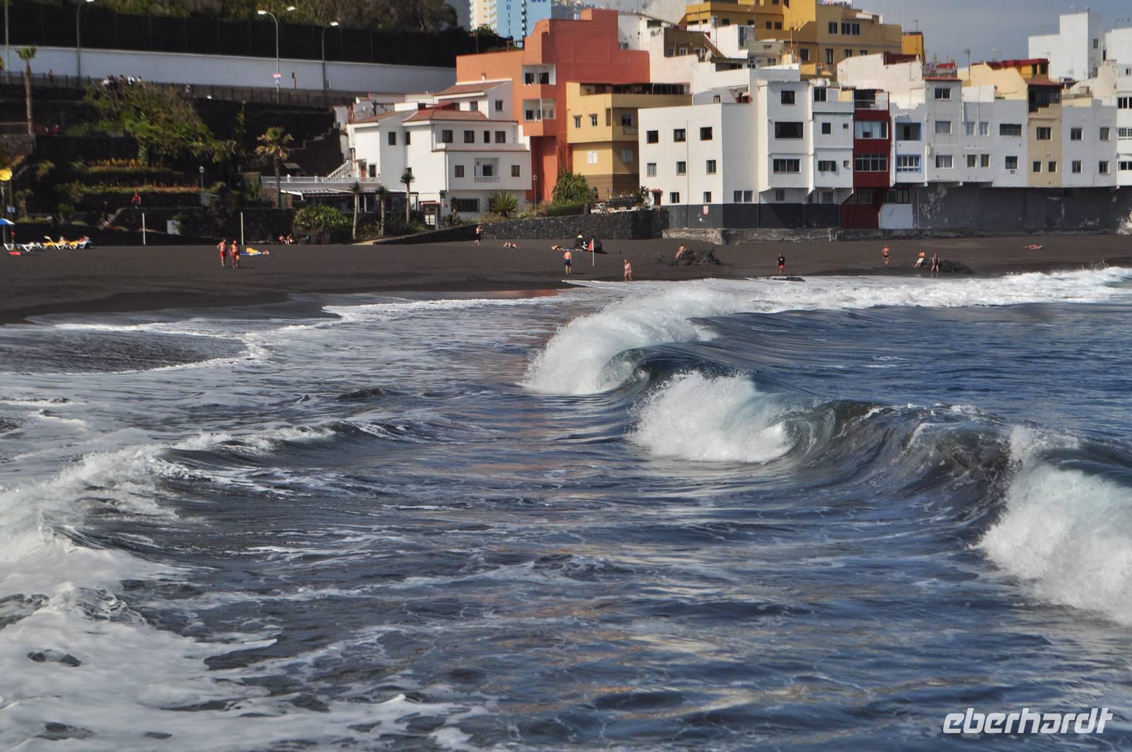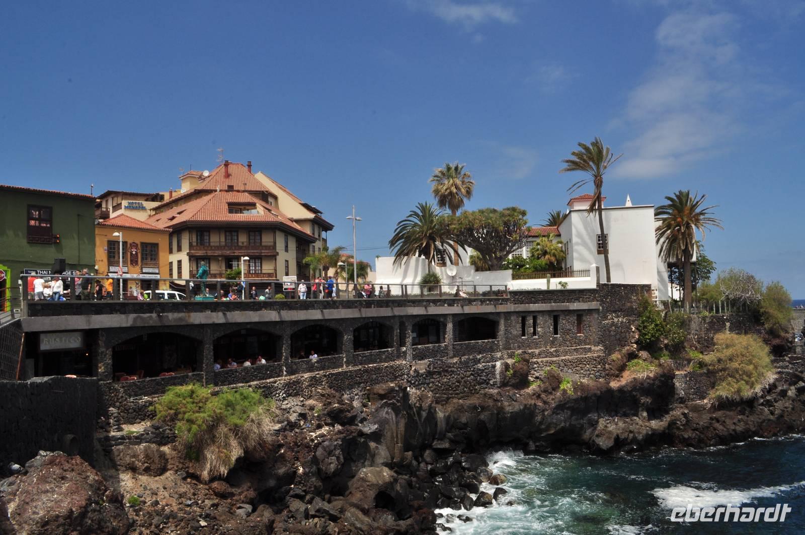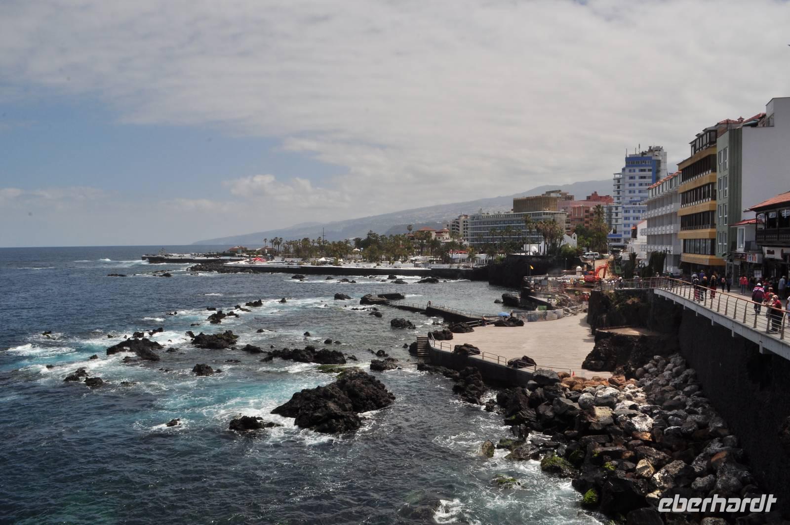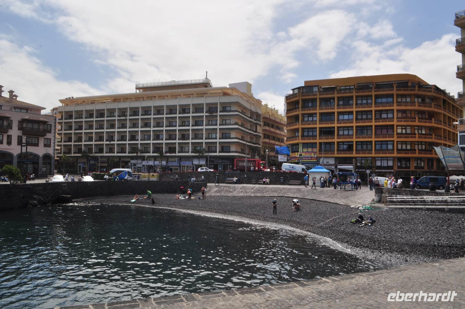 Wer Lust hat kann den Nachmittag zum Baden zu nutzen. Der beliebte schwarze Sandstrand Playa de Jardin liegt nur wenige Gehminuten vom Loro Parque entfernt. Fast alle nutzen den Nachmittag zu einem ausgedehnten Stadtbummel. Die wunderbar restaurierte und verkehrsberuhigte Stadt Puerto de la Cruz besinnt sich auf seine spanischen (kanarischen) Wurzeln. Die Bausünden der 1970er und 80er Jahre verschwinden zusehend aus dem Stadtbild. Zurück bleibt ein idyllisches Hafenstädtchen. Einladende kleine Gassen mit bunten fertig renovierten Häusern, kleinen Restaurants und Cafés laden ebenso zum Verweilen ein, wie die palmenbestandenen Plazas. Viele kleine Boutiquen mit kanarischen Handarbeiten neben einer Vielzahl kleiner Souvenir und Schmuckgeschäfte laden zu einem ausgedehnten Shopping-Bummel ein. Wer das nicht mag oder braucht, entspannt bei besagtem Kaffee oder Eis oder in den berühmten Meeresschwimmbädern von César Manrique.