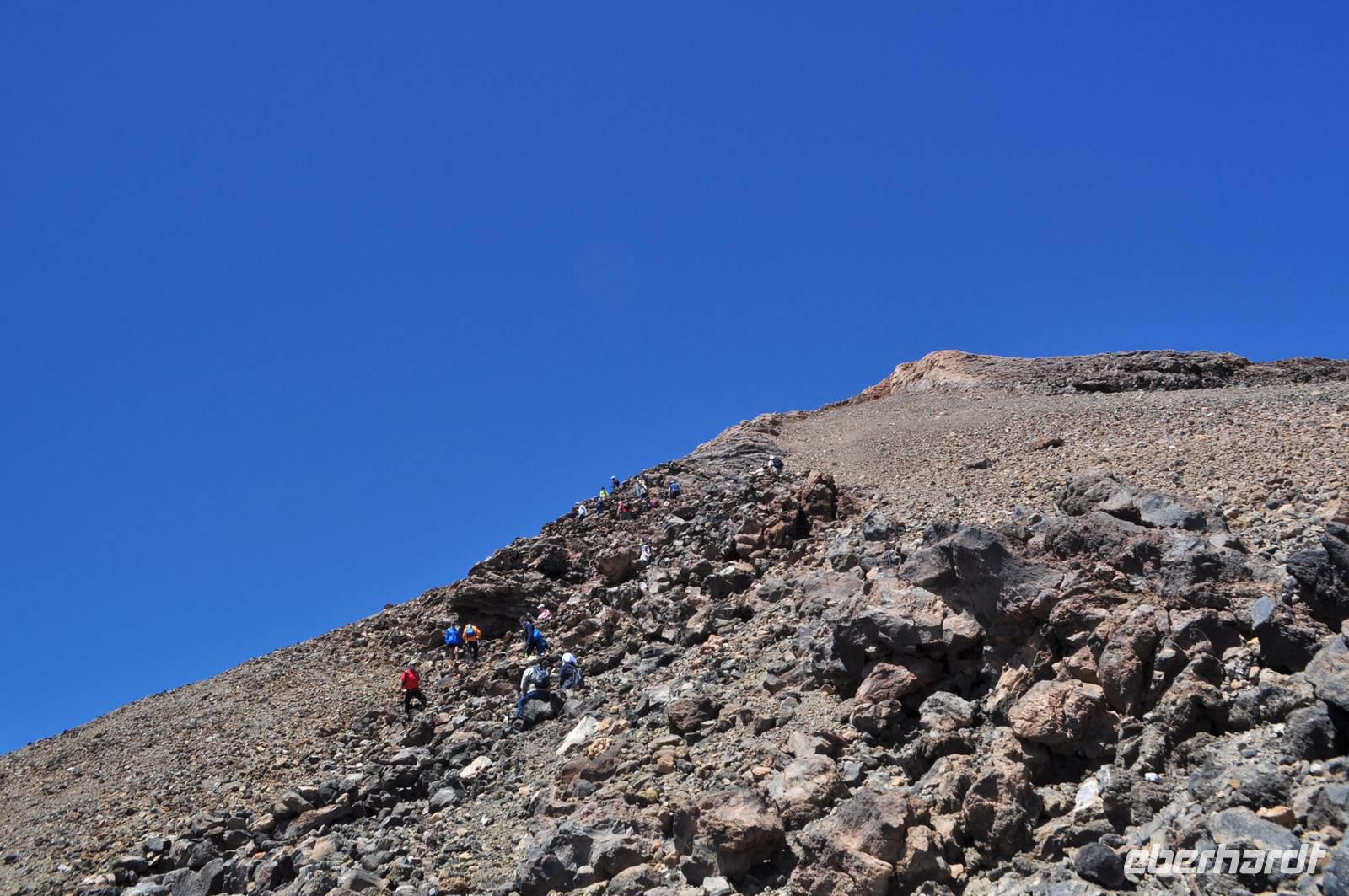 Sie treten im Gipfelkrater aus. Die Betonung liegt auf „Gipfel". Der Kraterrand war erreicht. Das letzte Stück zum höchsten Punkt des Kraterrandes ließ ich mir nun auch nicht mehr nehmen.