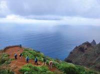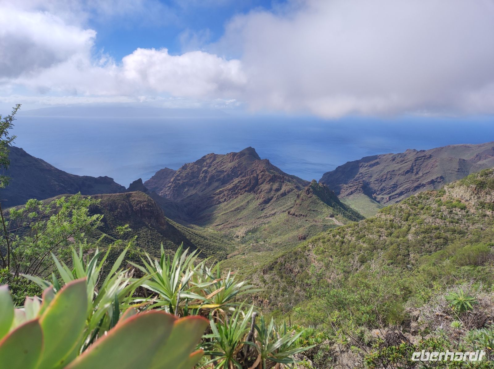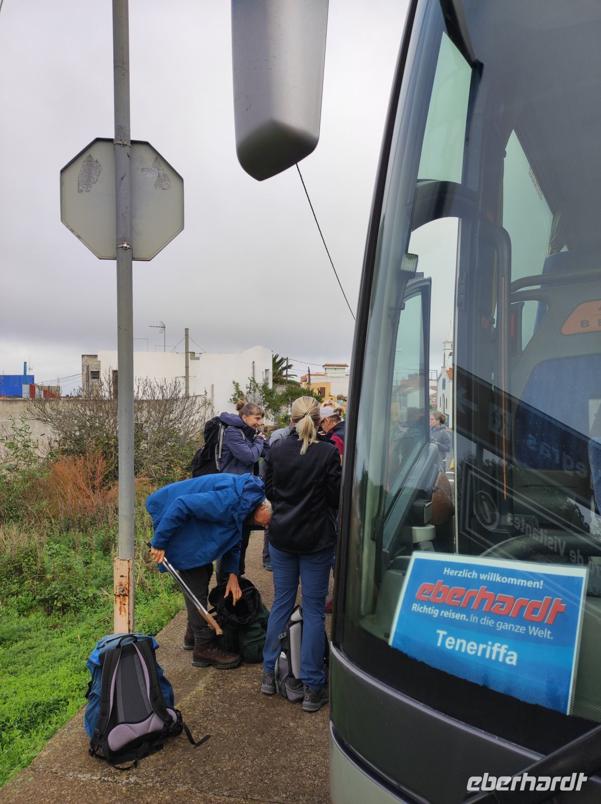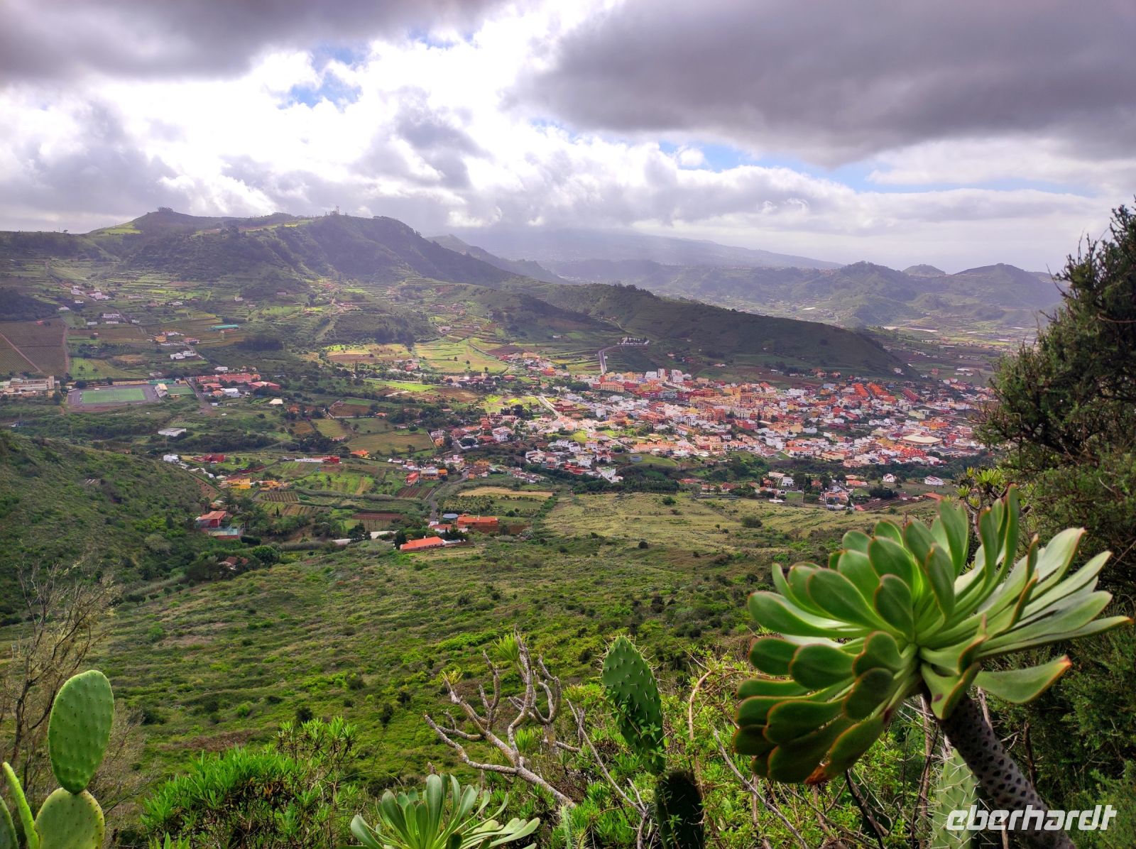 An unserem ersten Morgen auf Teneriffa genossen wir erstmal die reichhaltige Auswahl am Frühstückbuffet, um 08.30 Uhr trafen wir dann das erste Mal auf unseren Wanderreiseleiter Carsten, nach einer kurzen Vorstellung und Programmvorstellung ging es dann auch schon los zu unserer ersten Wanderung im Norden Teneriffas. Bei unserer Fahrt zum Ausgangspunkt der Wanderung brachte uns Carsten die ersten Besonderheiten der Natur und Kultur auf Teneriffa näher. Schon früh bemerkten wir das die Wanderwege auf Teneriffa recht gut gekennzeichnet sind, an jeder Weg Gabelung gibt es eine Gelb-Weiße Markierung die den Richtigen Weg anzeigt, Sackgassen oder gefährliche Wege sind mit einem Kreuz gekennzeichnet. Durch das eher bewölkte Wetter konnten wir leider die ersten Ausblicke nicht wirklich genießen, aber nutzten gleich einmal die Zeit um uns alle untereinander besser kennenzulernen. Am höchsten Punkt unserer heutigen Wanderung angekommen legte sich erstmals die Wolkendecke und wir hatten die ersten schönen Ausblicke auf das Tal. Während einer Pause erklärte uns Carsten etwas über die Landwirtschaft auf Teneriffa, die Aufmerksamkeit schwindete schnell als wir einen weiteren Zuhörer bemerkten, einen sehr zutraulichen Raben der es sich nicht entgehen ließ für einige Fotos zu posieren. Wenige Minuten nach dem wir weiter am Bergkamm entlang gingen eröffnete sich uns ein fast klarer Himmel und wir machten eine kleine Fotopause und genossen die atemberaubende Aussicht vom Monte Gala Gebirge. Auf dem Weg nach unten kosteten einige von uns die am Kaktus wachsende Kaktusfrucht, wenn man erprobt wie Carsten war konnte man die Frucht ohne Verletzungen schälen und das nach Kiwi schmeckende Fruchtfleisch genießen, aber viele von uns hatten noch am Nächsten Tag die sehr feinen Stacheln in der Hand. Pünktlich zum Wolkenbruch am Bus angekommen brachte uns dieser zum dem etwa 30 Fahrminuten entfernten Restaurant Garachico, in diesem wurde uns ein kleines typisch spanisches 3 Gänge Menu serviert mit frischem Zackenbarsche einer Vorsuppe und Nachtisch. Nach der kleinen Stärkung machten wir einen kleinen Stadtrundgang und Carsten zeigte uns am Beispiel des Stadtparkes wie sehr sich die Höhe der Stadt geändert hat durch den letzten Ausbruch des Vulkanes Anfang des 19. Jahrhunderts. Dieser Stadtpark hat noch das ehemalige Fundament des Hafens, welches doch nochmal 2 Meter unter der jetzigen Höhe der Stadt lag. Anschließend ging es wieder mit dem Bus zurück nach Puerto de al Cruz zu unserem Hotel. Später trafen wir uns nochmal zum Abendessen im Hotel und sprachen über die Eindrücke der ersten Wanderung.