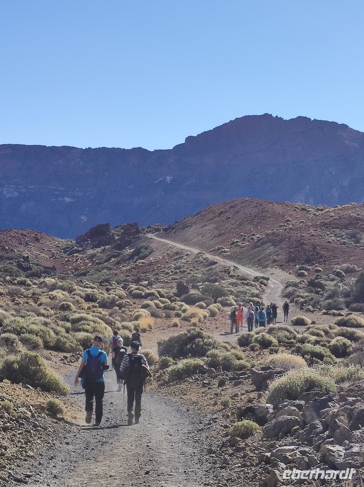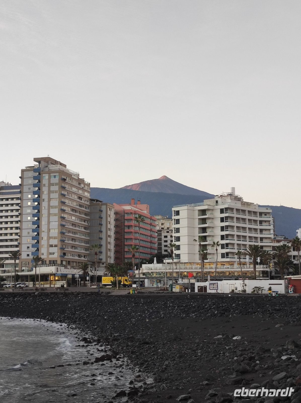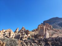 Die heutige letzte Wanderung führte uns zum Fuße des Teides in den National Park. Wer gedacht hat die Highlights der Reise liegen bereits hinter uns wurde an diesem Tag eines Besseren belehrt. Diese Wanderoute führte uns wieder einmal entlang einer komplett anderen Landschaft dieser so vielfältigen Insel. Auf ca. 2200 Meter Höhe liefen wir erst durch eine steppen artige Landschaft mit dem Teide im Rücken bevor sich dann ein Riesiges Felsenmassiv vor uns aufbaute. Die Felsen waren rötlicher Farbe und erinnerten stark an die Felsenformationen im Bryce Canyon oder in Arizona in den USA. Der Weg führte entlang der Felsen bis zu einem Besucherzentrum, in diesem Angekommen wurde uns ein kurzer aber eindrucksvoller Film über die Naturpracht des Teide Nationalparks vorgeführt. Es wurde Drohnen Aufnahmen und Fotos aus den 4 Jahreszeiten im Nationalpark gezeigt, von der farbenfrohen Flora im Frühling, dem Trockenen Steppartigen Landschaftsbild im Sommer und Herbst und der zugeschneiten Landschaft, im Teide Nationalpark ist alles dabei. Nach einem kurzen Aufenthalt im Museum, welches die Einflüsse des Menschen im Nationalpark und auf Teneriffa generell zeigt ging es auch schon mit dem Bus weiter. Wir machten kurz Stopp an einem Aussichtpunkt, bevor es deiner weiter zu einem Restaurant mit super Ausblick auf den Teide. Bei Tapas und Wein redeten wir über unsere letzte Wanderung und über die Erlebnisse der Reise, bevor es dann mit dem Bus zurück zum Hotel ging übergaben die Gäste bei einer kleinen Dankesrede dem Wanderreiseführer Carsten und dem Busfahrer ein kleines Trinkgeld. Nach dem letzten Abendessen ging es nochmal mit einem Teil der Gruppe zu der Promenade um den letzten Sonnenuntergang auf Teneriffa zu genießen bevor es dann am nächsten Tag zurück in das kalte Deutschland geht.