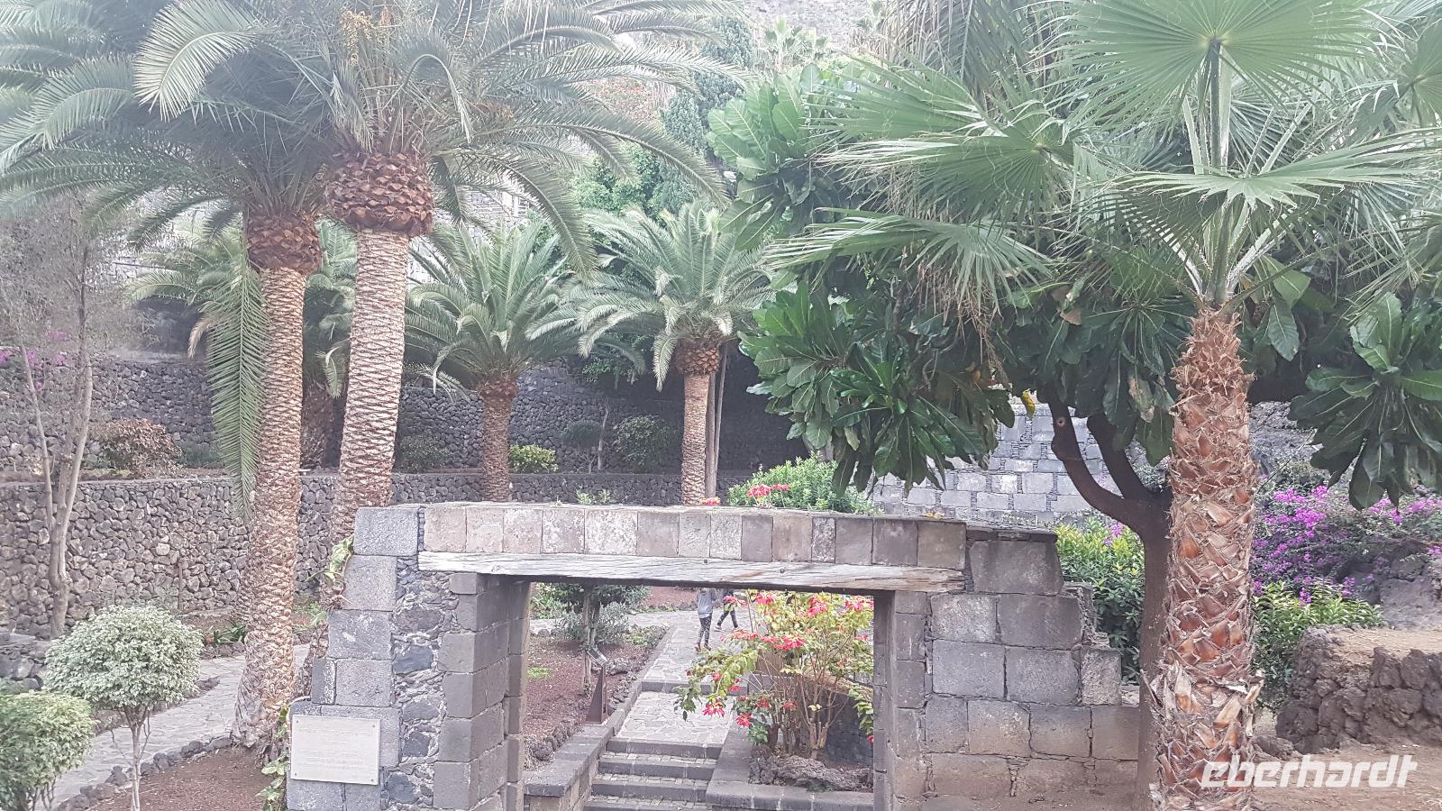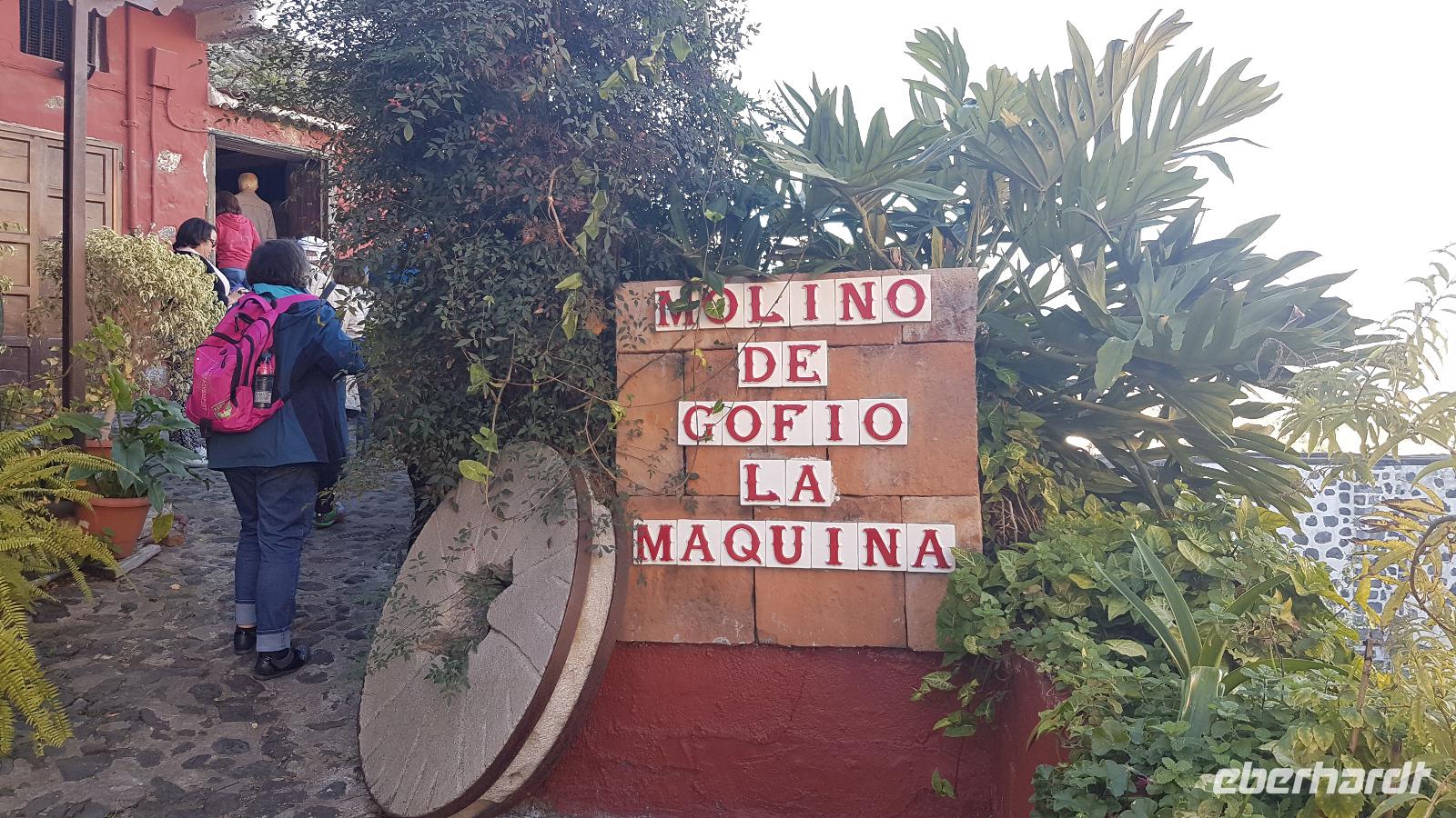 In einer Gofio-Mühle wird aus gerösteten Weizen-, Gersten- und Maiskörnern ein Mehl, das Gofio gemahlen, ein Grundnahrungsmittel der Inseln. Noch heute ist das Mehl Zutat für viele kanarische Gerichte. Auf dem Rückweg zum Bus schauen wir noch in den botanischen Garten.