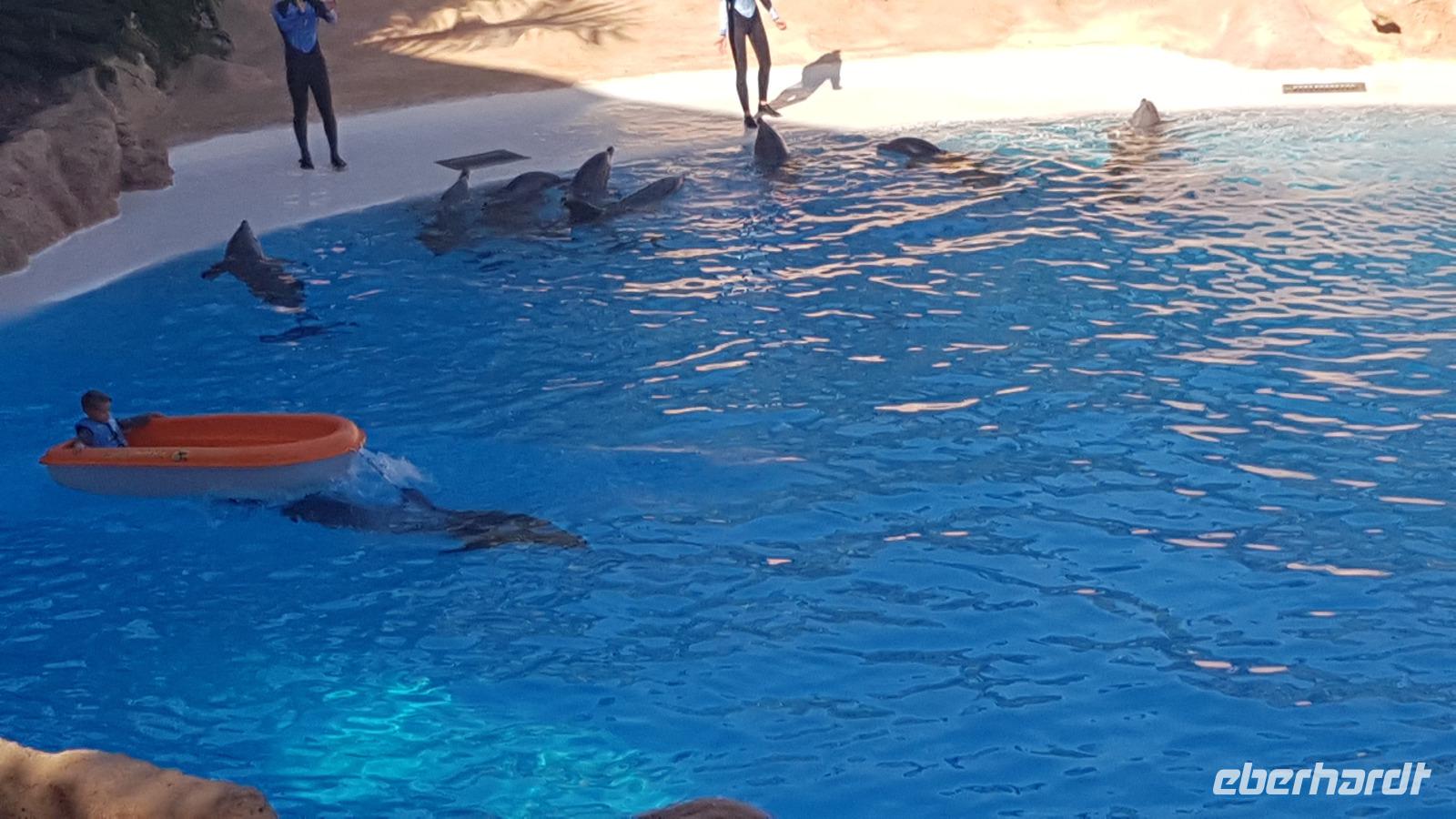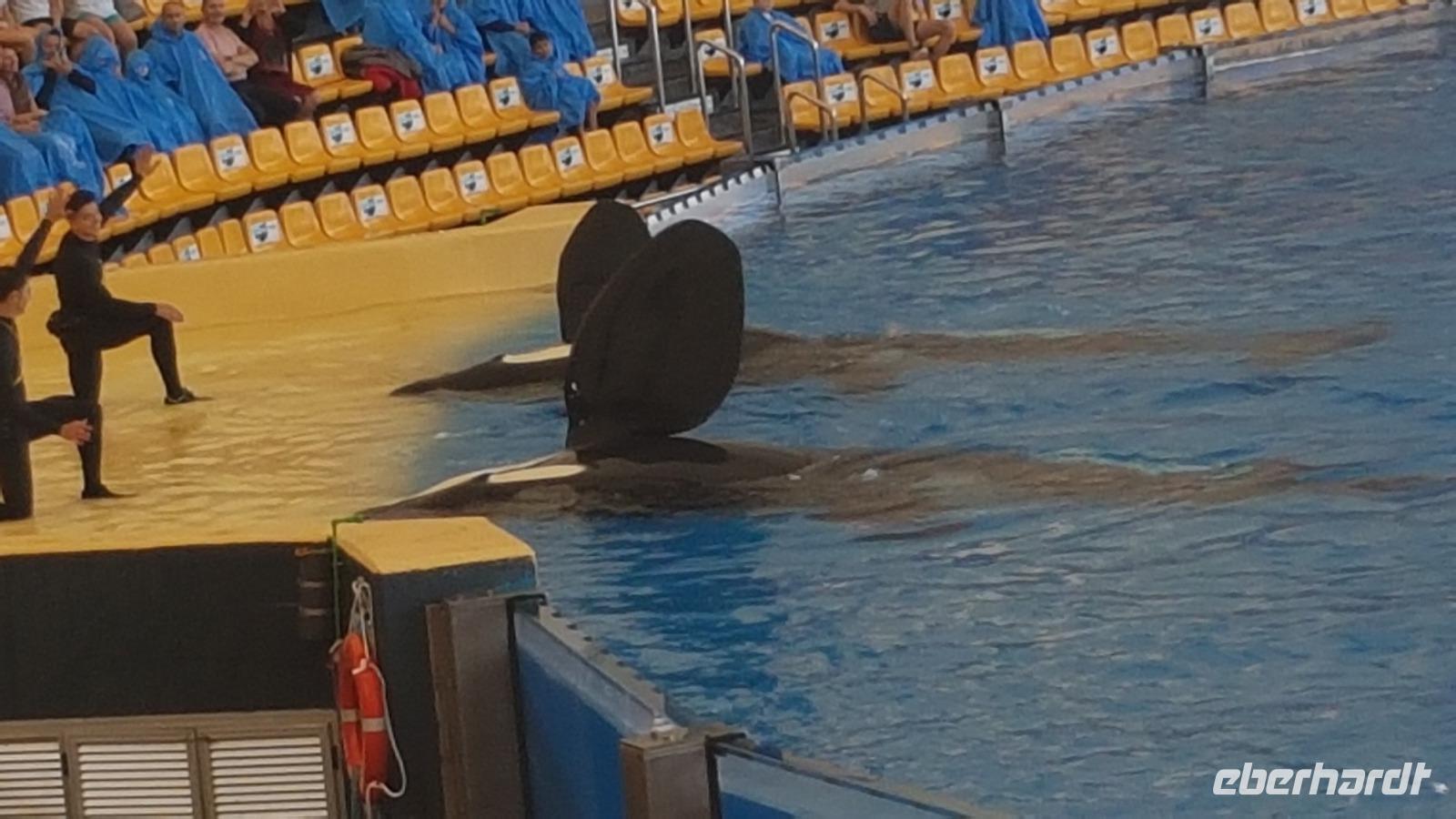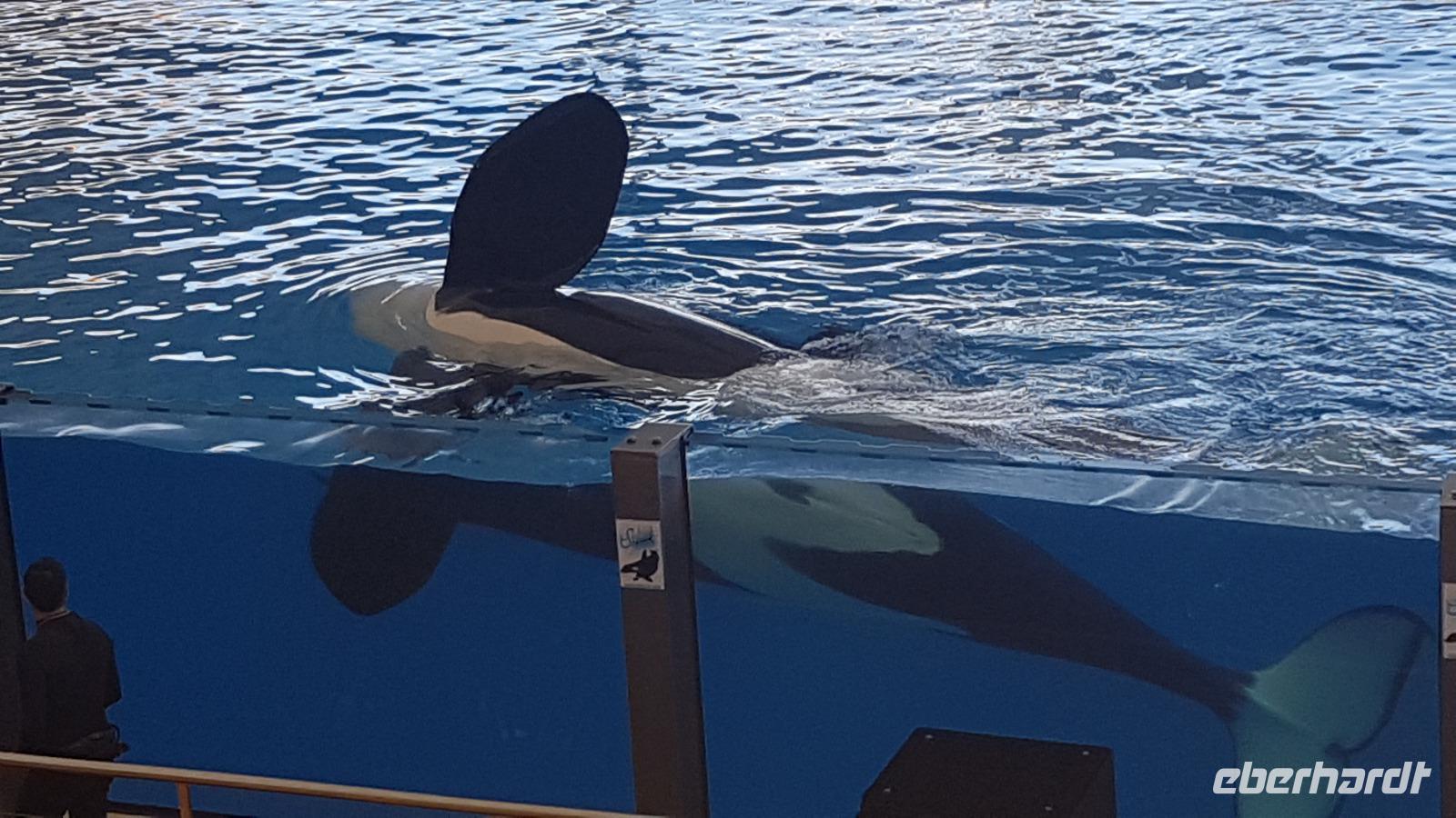 Wir beschließen mit dem Loro-Express gegen 16 Uhr an das andere Ende der Stadt zurück zu fahren, um noch einen Blick von außen auf die Meeresschwimmbecken zu werfen.