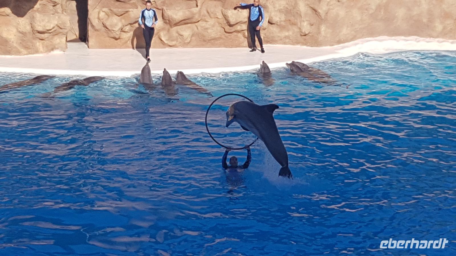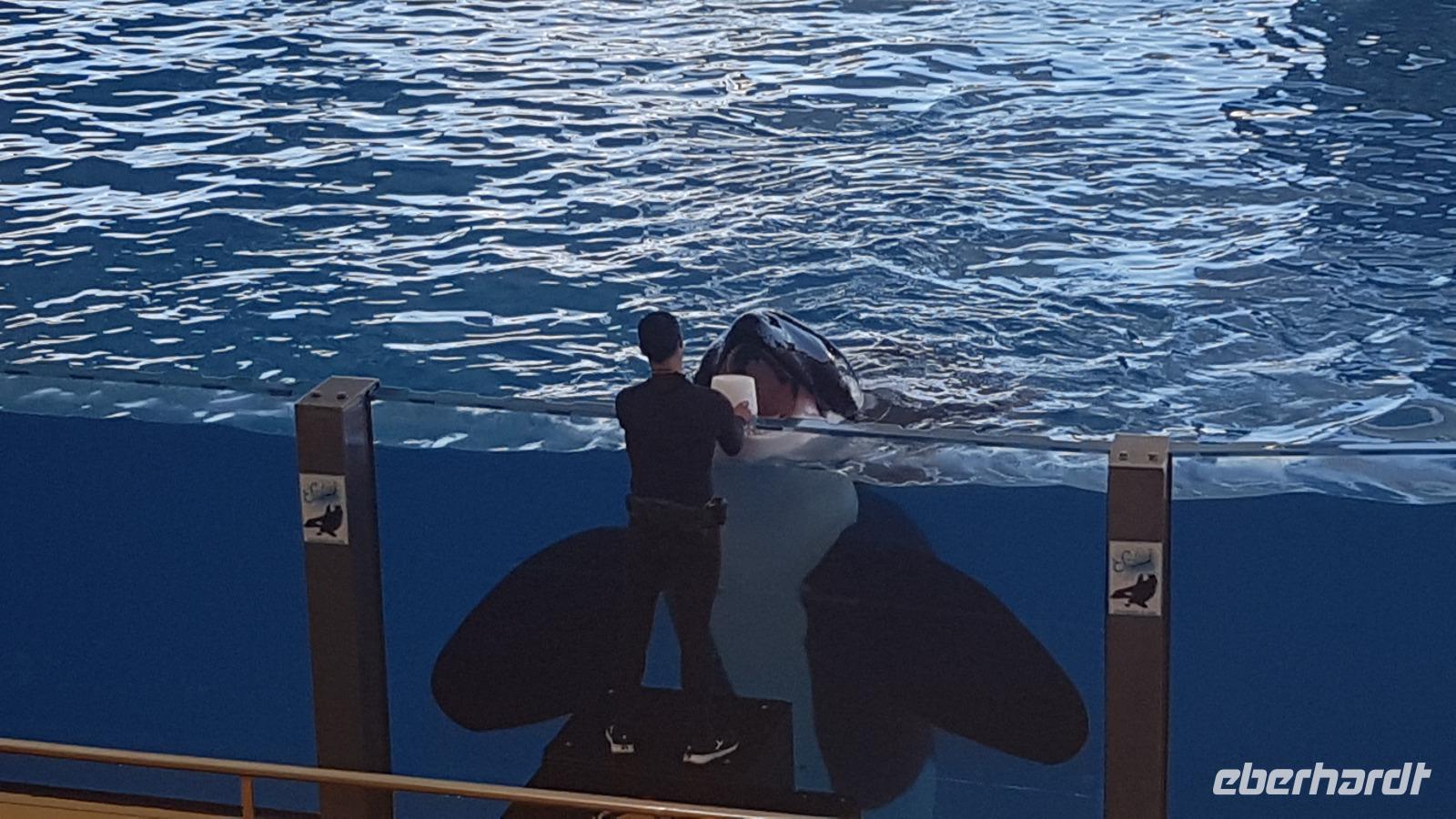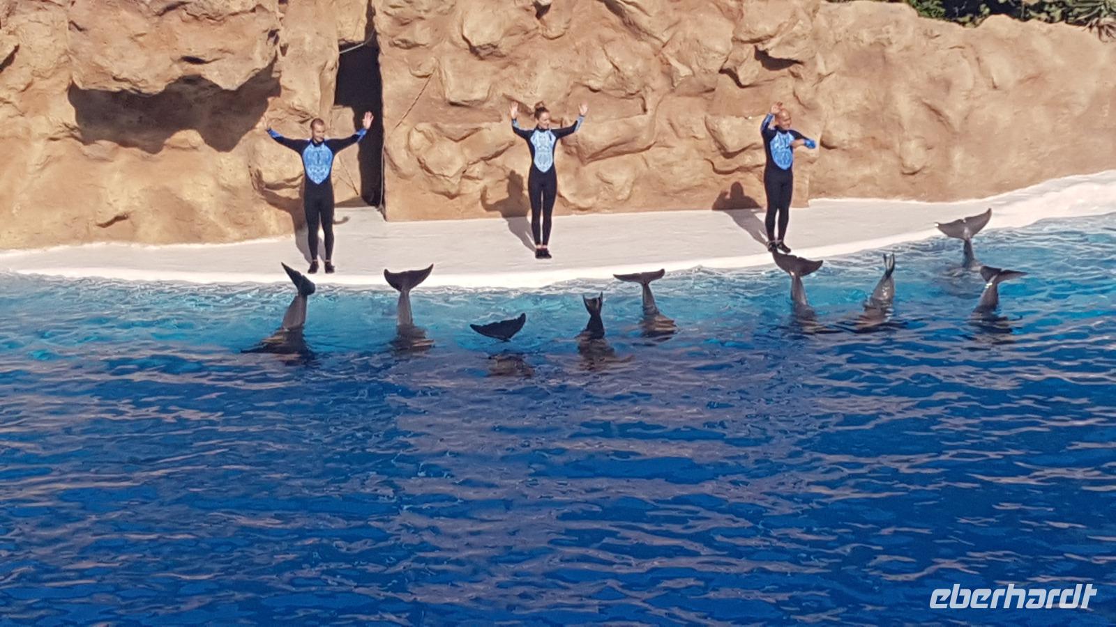 Wir beschließen mit dem Loro-Express gegen 16 Uhr an das andere Ende der Stadt zurück zu fahren, um noch einen Blick von außen auf die Meeresschwimmbecken zu werfen.