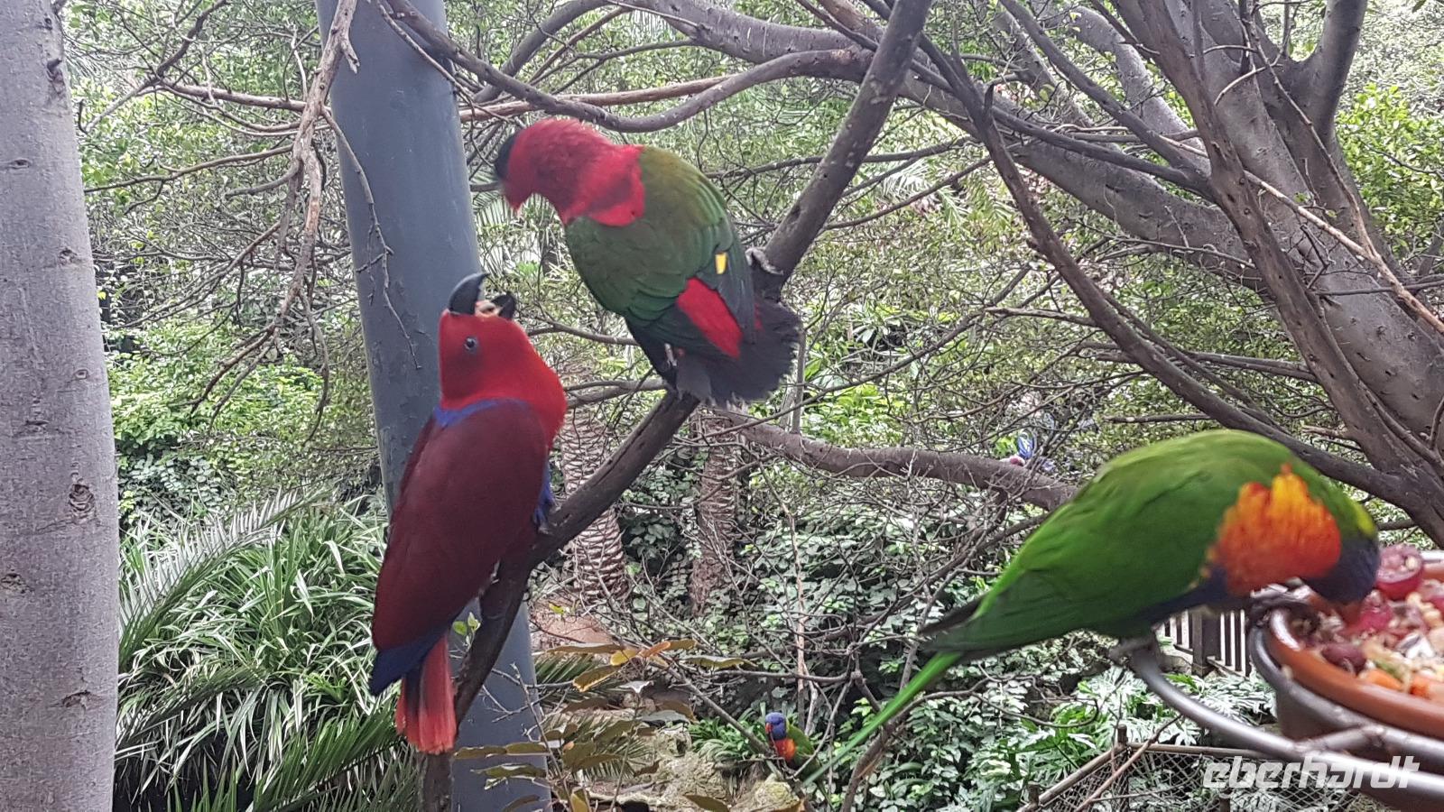 Einige Gäste möchten heute die Sonne am Strand und ein Bad im Atlantik nehmen, einige nehmen mein Angebot an und spazieren mit mir zum Loro-Park, dem meistbesuchten Zoo Spaniens. Die gepflegte Parkanlage mit dem größten Freifluggelände für Papageien, den Königspinguien im Eis- und Schneehaus, den Shows und Vorführungen der Delfine und Orcas begeistert uns. Gemütlich speisen wir zu Mittag, bevor wir unsere Besichtigungstour fortsetzen.