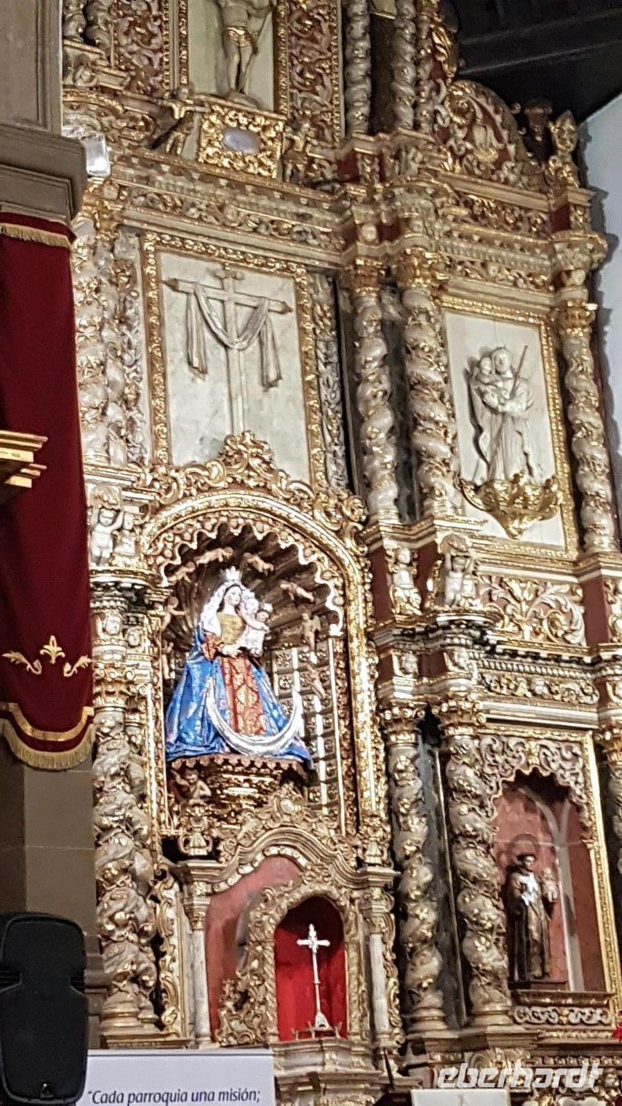 Heute machen wir einen Rundgang durch die Stadt und schauen uns die barocke Hauptkirche etwas näher an. In jedem der drei Hauptschiffe steht ein prächtiger Altar. Ein am Eingang links aufgestelltes, aus Holz bestehendes und mit Silber ummannteltes Kreuz wird bei Prozessionen durch die Straßen der Stadt getragen.