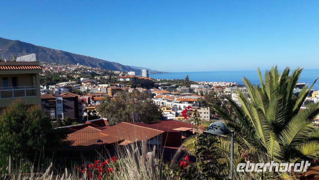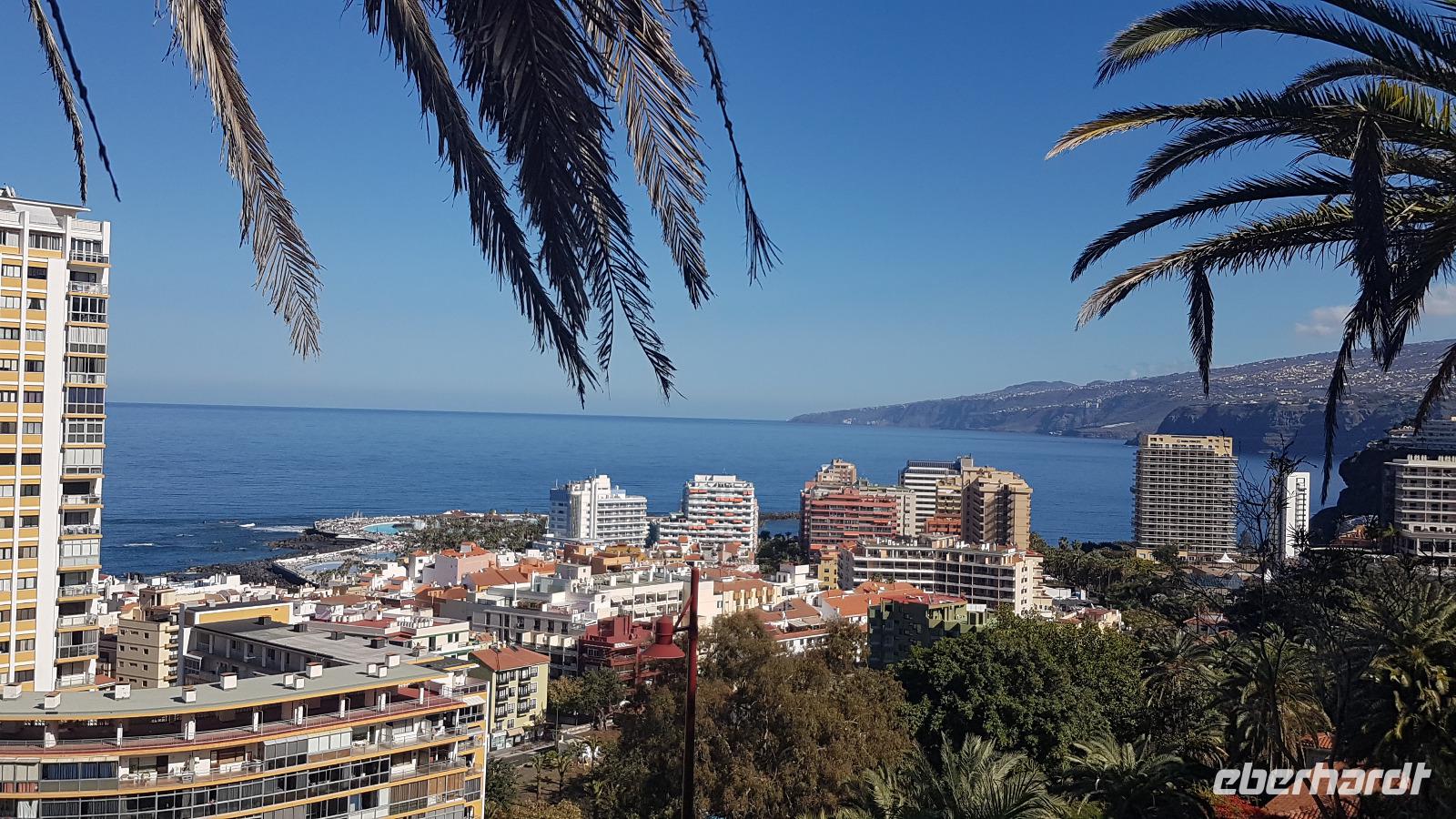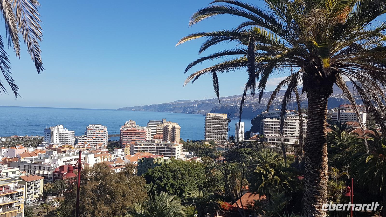 Der Spaziergang über viele Stufen hinauf zum Park „Risco Bello", gestattet uns immer wieder schöne Ausblicke über Puerto de la Cruz, da wir immer mal eine Pause zum Verschnaufen einlegen. Leider war der Par, heute am Feiertag geschlossen und so lade ich die Gäste kurzerhand in ein Panorama Kaffee in der Nähe auf ein Getränk ein. Wir genießen den Sonneschein und die angenehmen Temperaturen und die Stimmung ist gut.