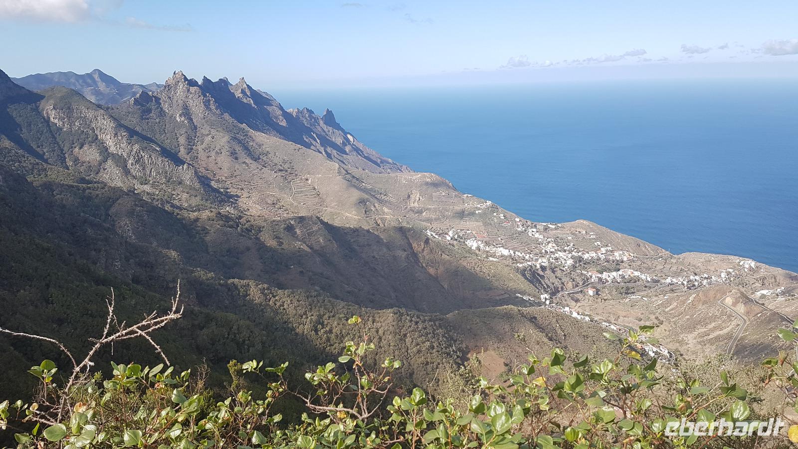 Vom Aussichtspunkt „El Boqueron" sehen wir die Nordspitze Teneriffas mit dem Leuchtturm.