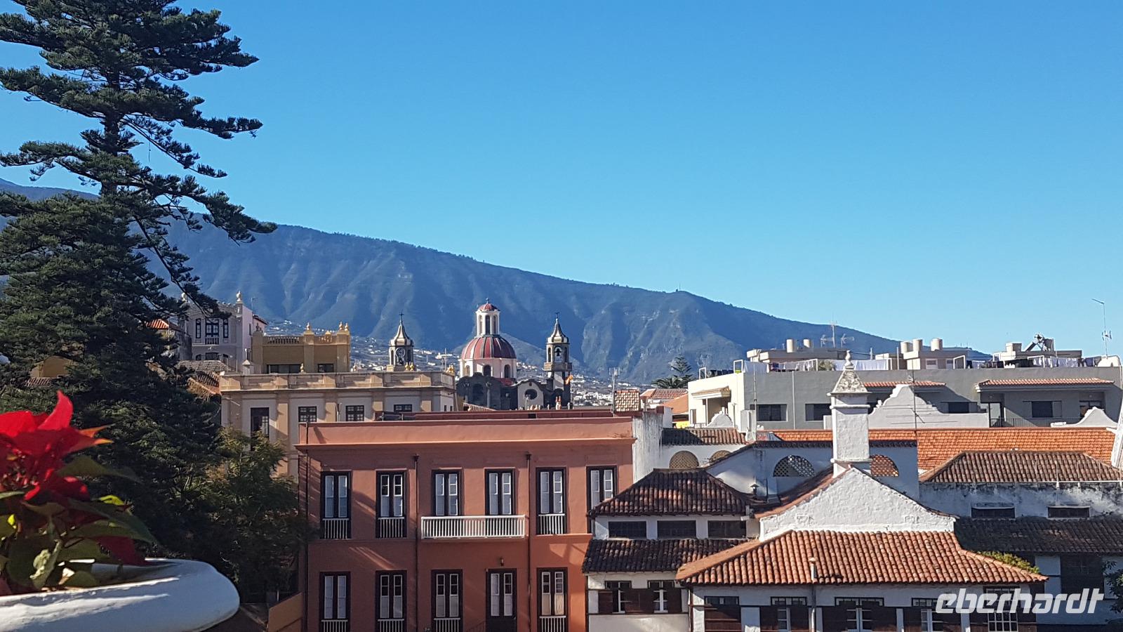 In der Universitätsstadt La Laguna im Restaurant „San Augustin" wird uns ein sehr schmackhaftes kanarisches 3-Gang-Menue serviert, bevor wir uns die Altstadt, die von der UNESCO zum Weltkulturerbe ernannt wurde ansehen. Grüne Innenhöfe der Paläste, lauschige Plätze und die Kirche der Stadt schauen wir uns interessiert an. Der Aufstieg auf den Kirchturm ermöglicht den Blick von oben.