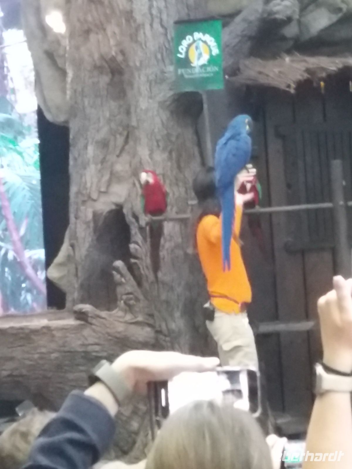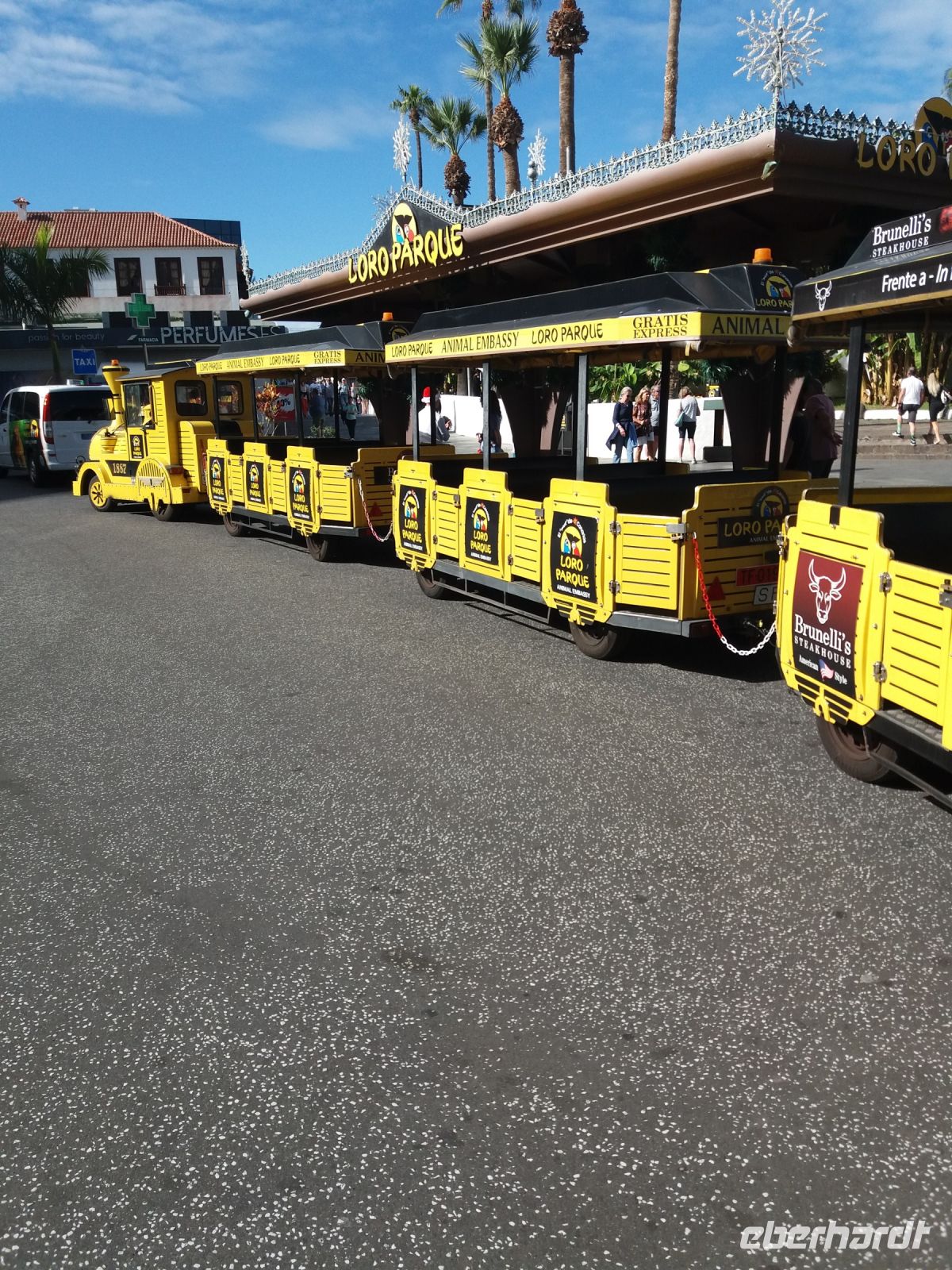 Unweit vom unserem Hotel fährt die kleine Loro-Park-Bahn alle 20min zum Park. Die Fahrt dauert