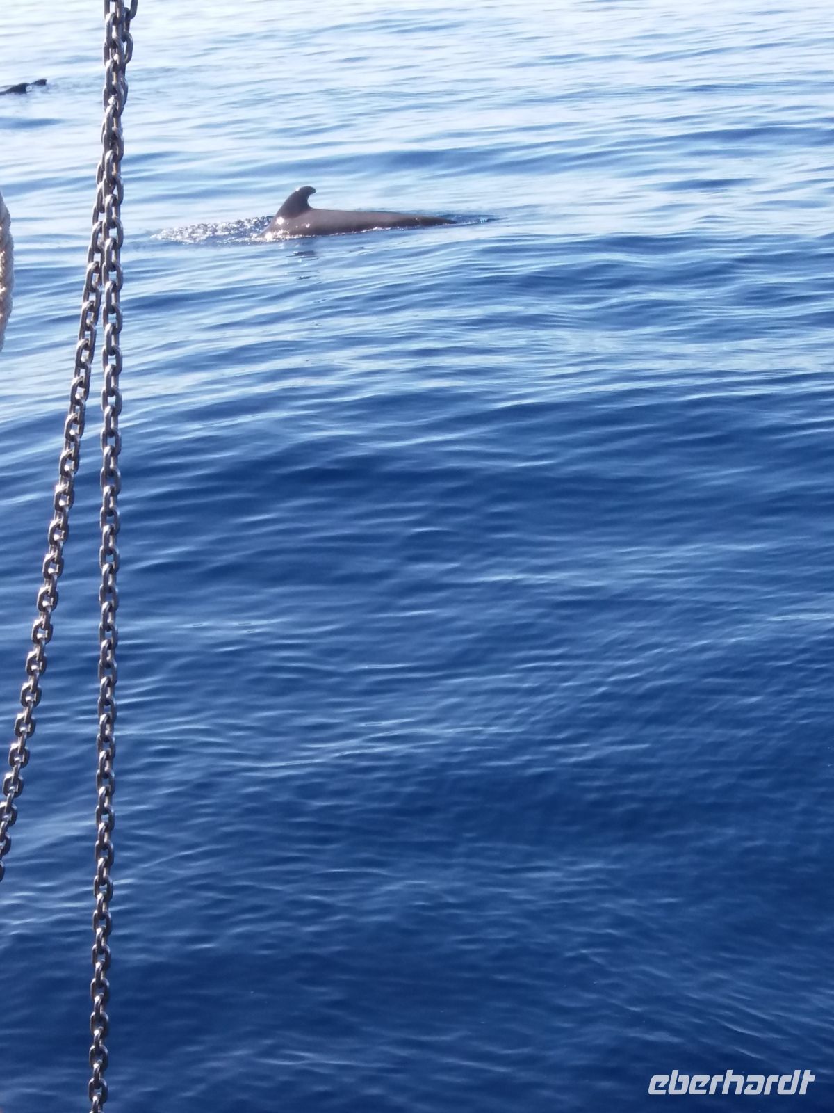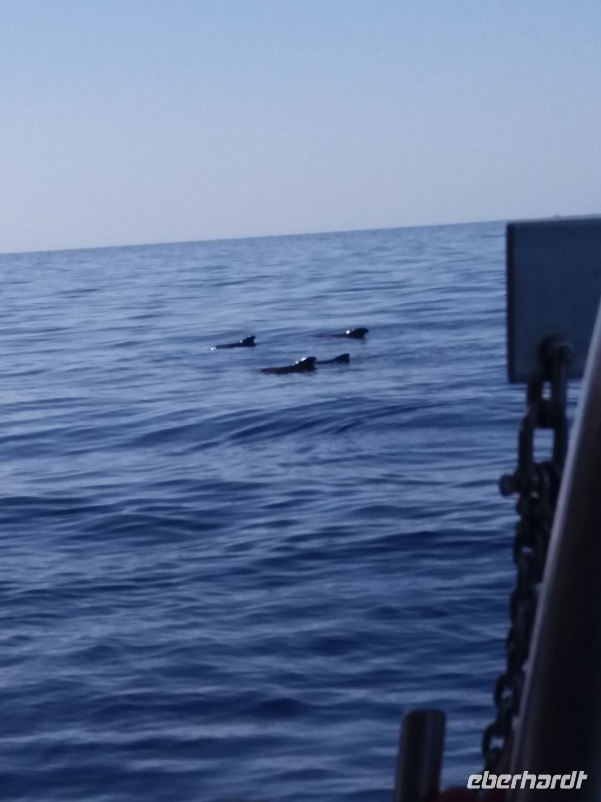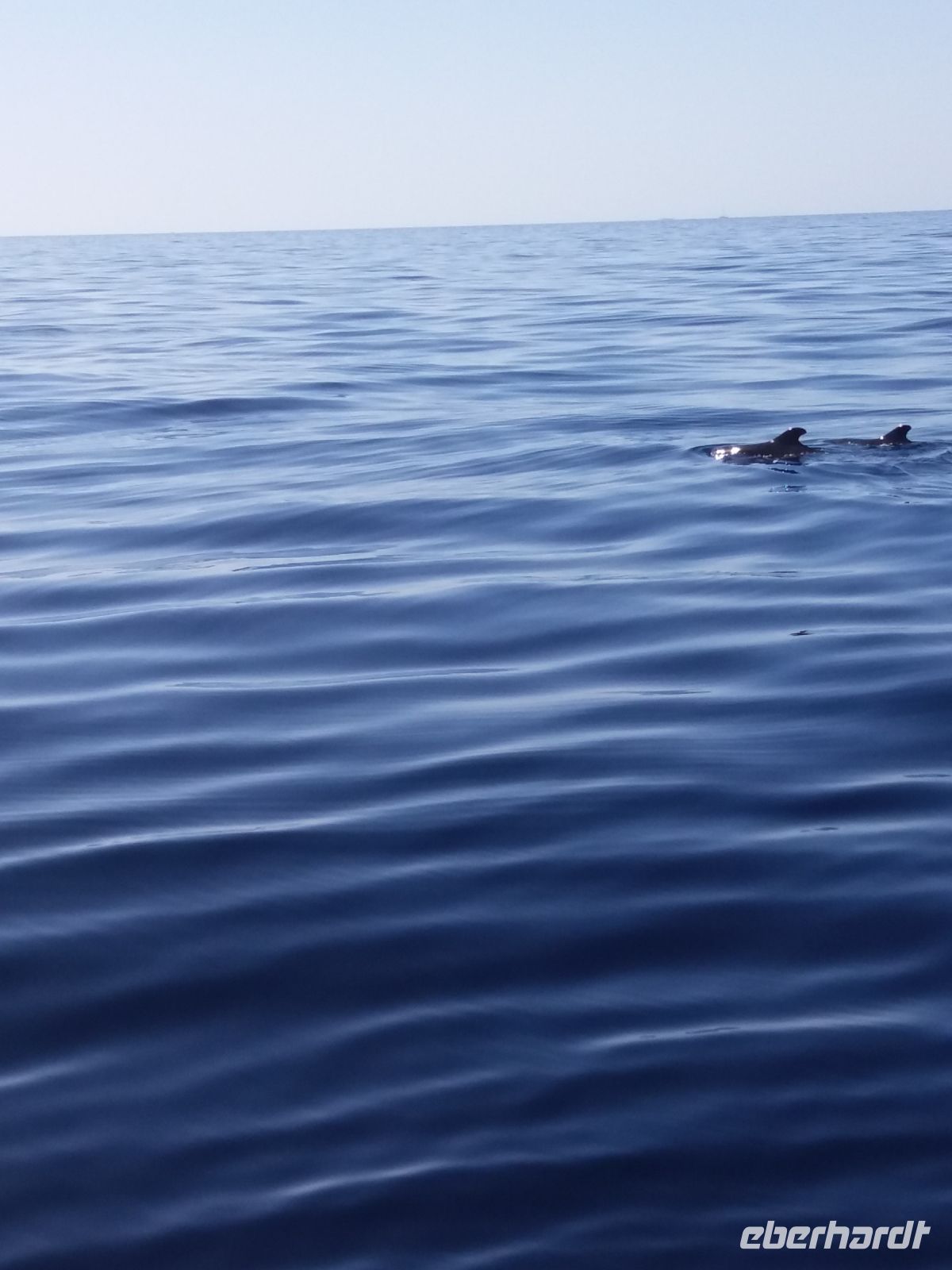 serviert. Ein Spaß für Groß und Klein. Es dauerte nicht lange als die ersten Delphine und Schweinswale auftauchten.