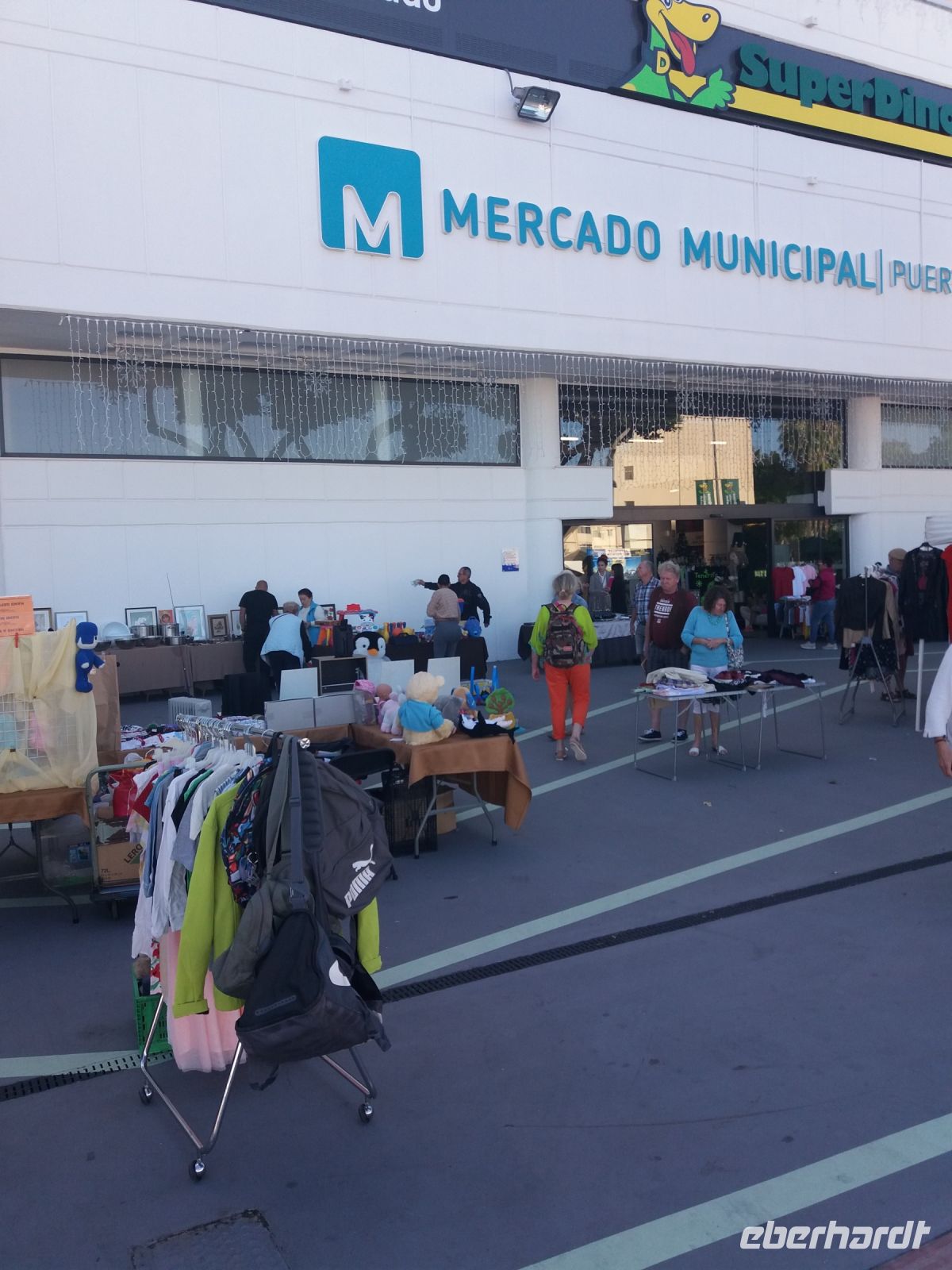 einige Treppen zu der Halle. Reges Treiben davor machte uns neugierig. Es war Flohmarkt. ähnlich wie