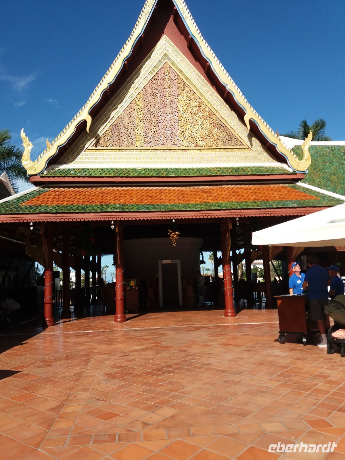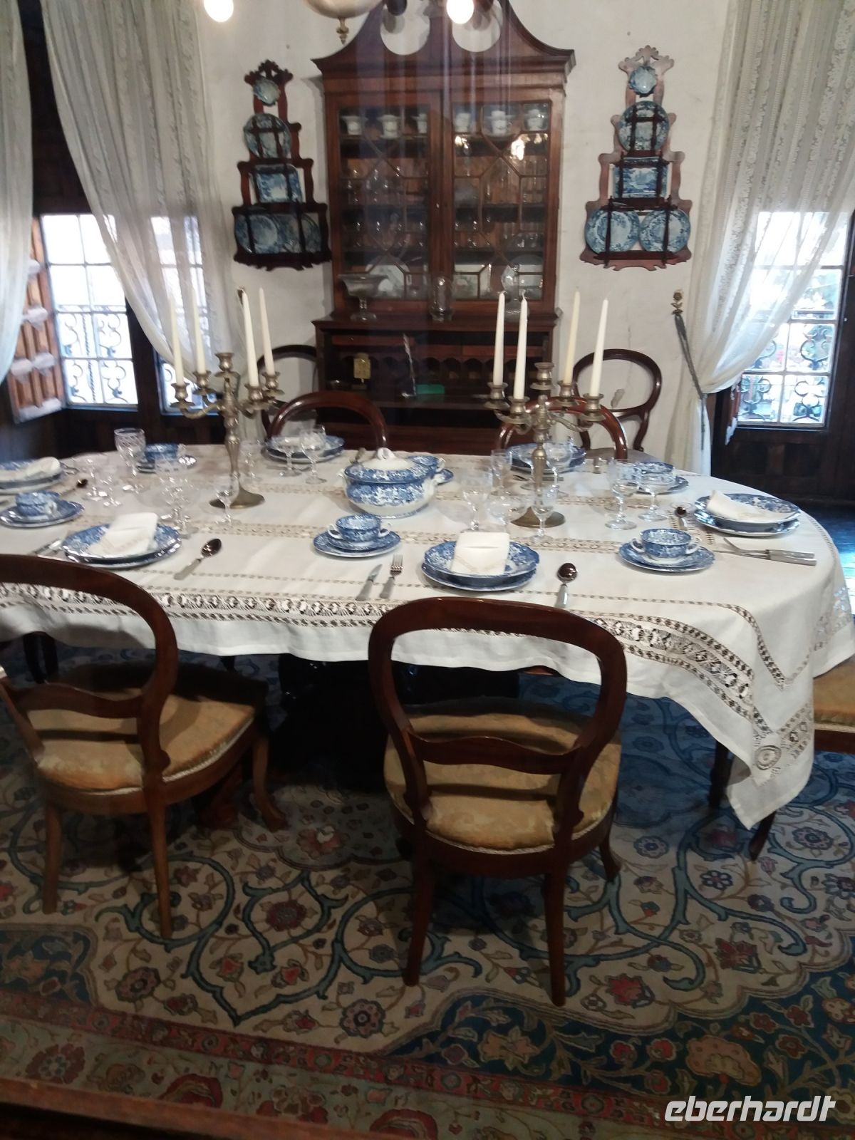 Das Hotel hatte für unsere Reisegruppe von 17 Personen zwei Tischreihen reserviert. So konnte die Gruppe immer zusammensitzen und