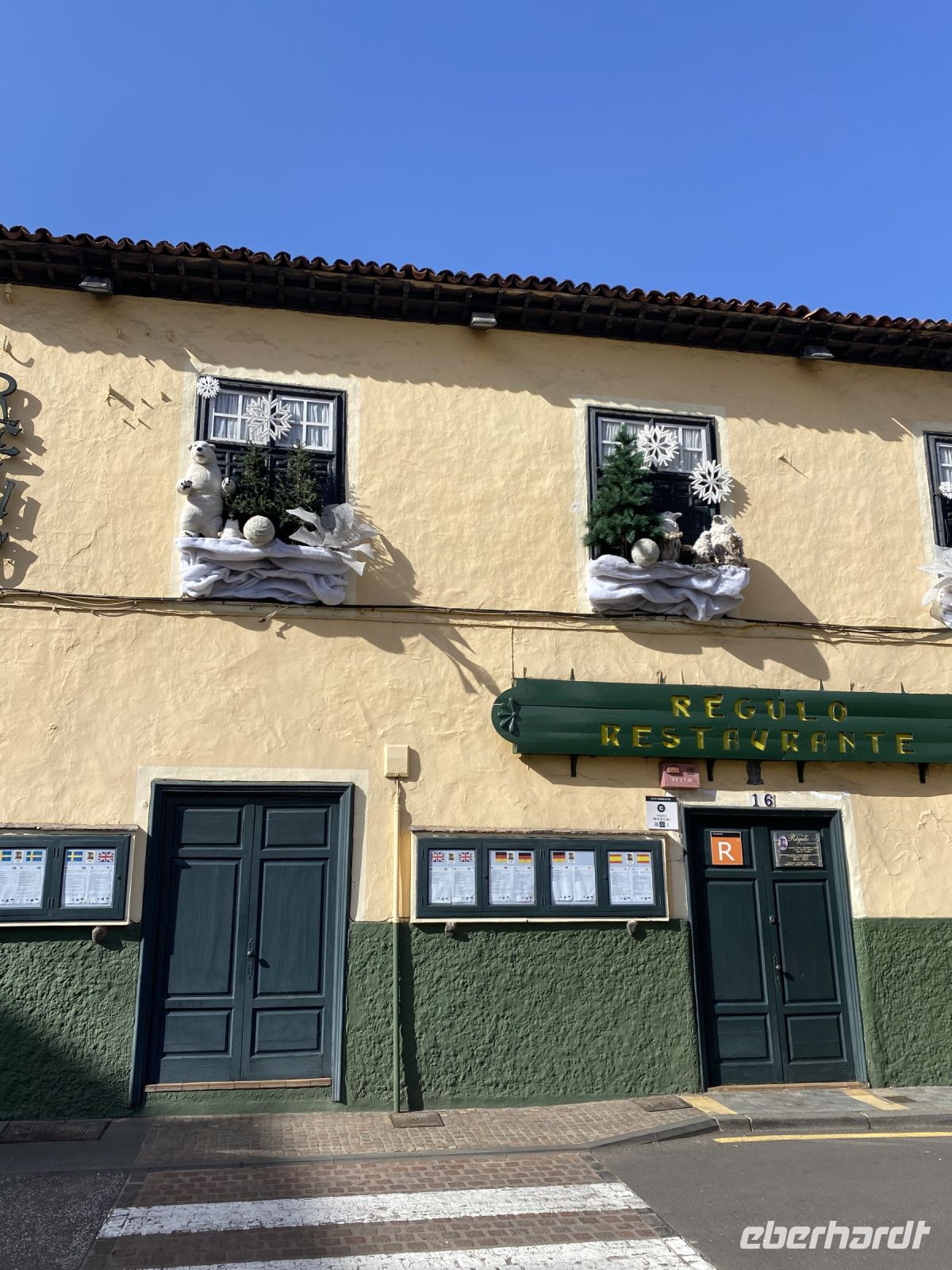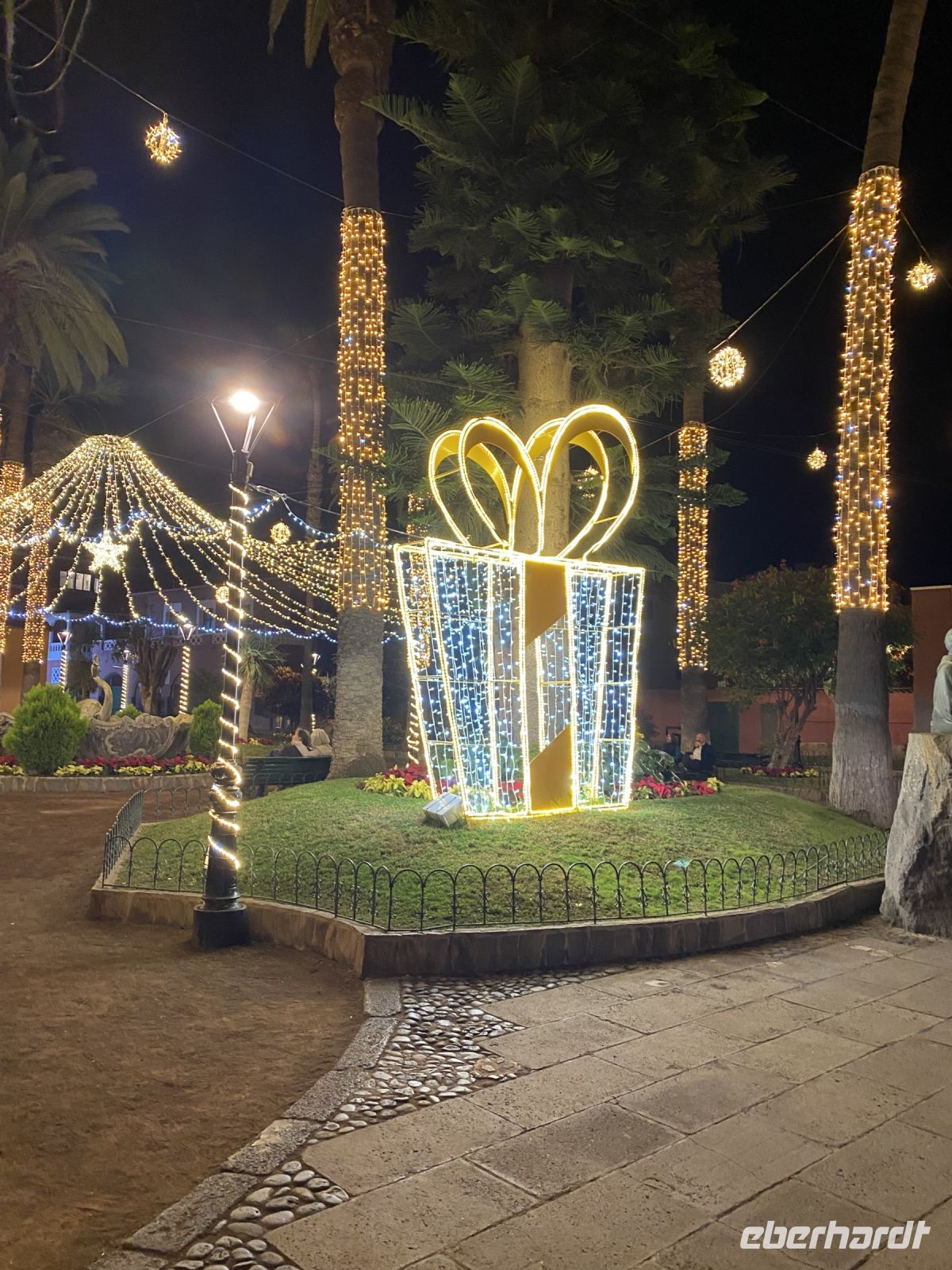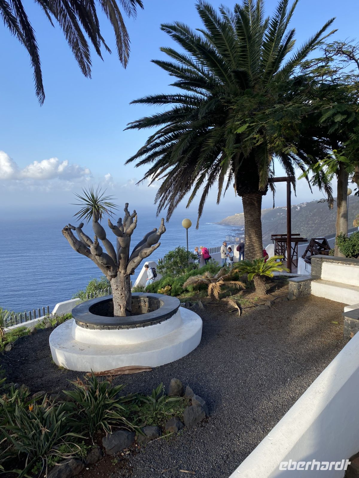 Nach einem ausgiebigen Frühstück und dazu bei manchen ein Gläschen Prosecco verbringen wir den Tag grüppchenweise mit den verschiedensten Aktivitäten. Einige fahren zum Loropark und sind so begeistert, dass sie bereits einen zweiten Besuch während unseres Aufenthalts planen. Andere nutzen nur die Bimmelbahn zum Loropark und flanieren über die Playa Jardin, die nach Entwürfen von César Manrique geschaffen wurde, mit dem Ziel, Wohlgefühl und Entspannung im Besucher zu verursachen. Manche nutzen den Poolbereich des Hotels oder sitzen in einem der zahlreichen Straßencafes und genießen nicht nur Aperol Spritz. Auch ein spanischer Gottesdienst in der Iglesia de Nuestra Señora de la Peña de Francia wird besucht. Erst am Abend trifft sich die Gruppe zum Galabuffet, das keine Wünsche offenlässt. So gut gesättigt kann man unmöglich schon zu Bett gehen. Also bummeln wir noch durch die Gassen, spielen Karten oder sitzen zur Abwechslung mal auf dem Balkon und trinken Likör, den das Christkind gebracht hat.