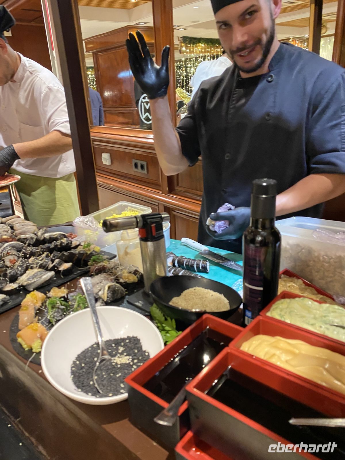 Die verbleibende Zeit bis zum Abendessen vergeht schnell und wir erfreuen uns wieder an einem umfangreichen und leckeren Buffet.