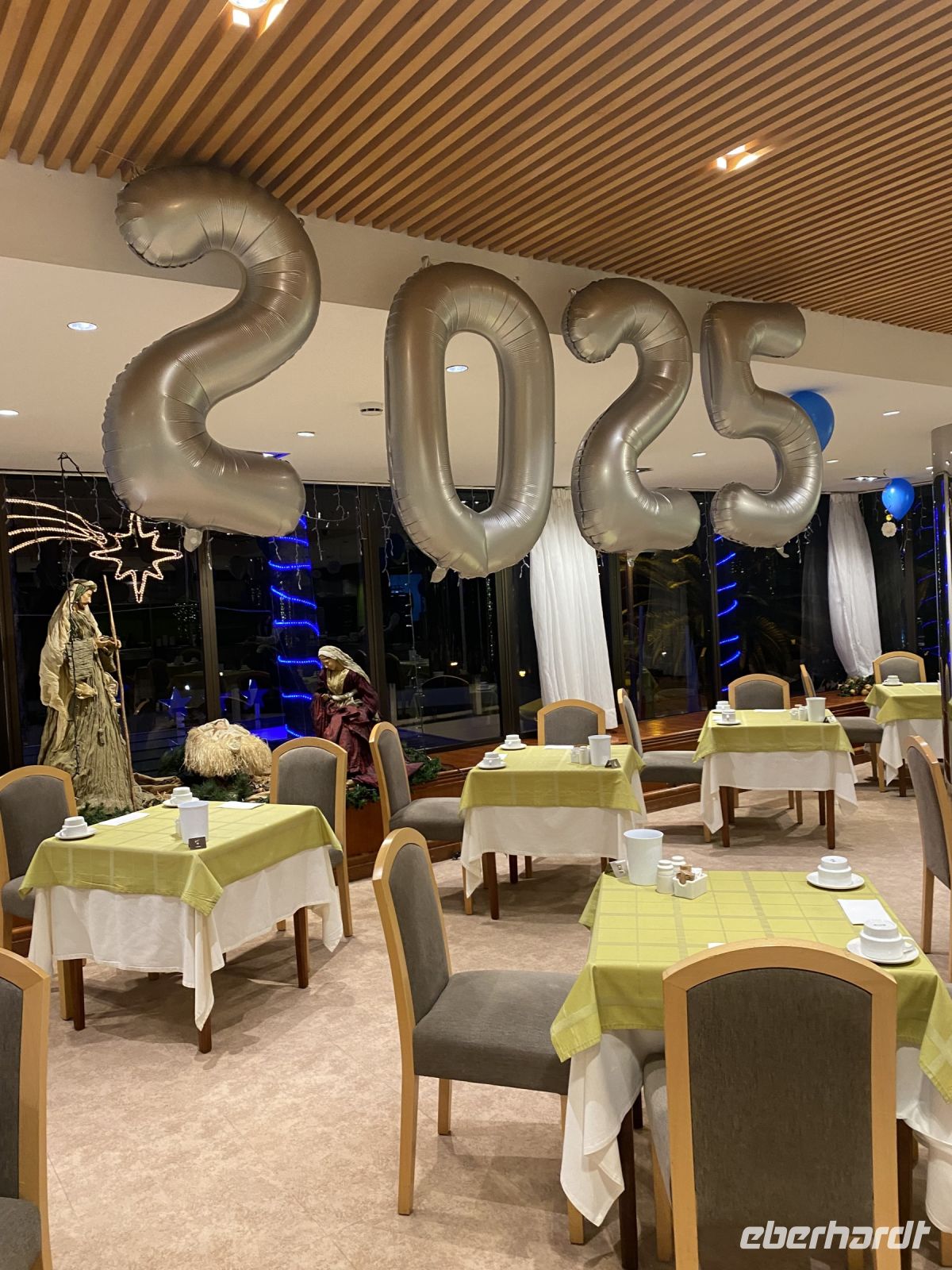 Um 16:00 Uhr treffen wir uns in der Lobby, trinken einen kanarischen Likör auf Weihnachten, um dann mit den mitgebrachten Julklappgeschenken an zwei 10er Tischen um die Geschenke zu würfeln. Die Stimmung beim Julklapp ist lebhaft, fröhlich und oft chaotisch. Es wird viel gelacht, geflucht und gejubelt, während Geschenke hin- und hergetauscht werden. Der Zufall durch die Würfel sorgt für Spannung und unerwartete Wendungen, die die Spieler auf Trab halten. Die Mischung aus Vorfreude, kleinen Rivalitäten und dem Nervenkitzel, das begehrteste Geschenk zu ergattern, macht das Spiel zu einem unterhaltsamen Highlight des Heiligen Abend.