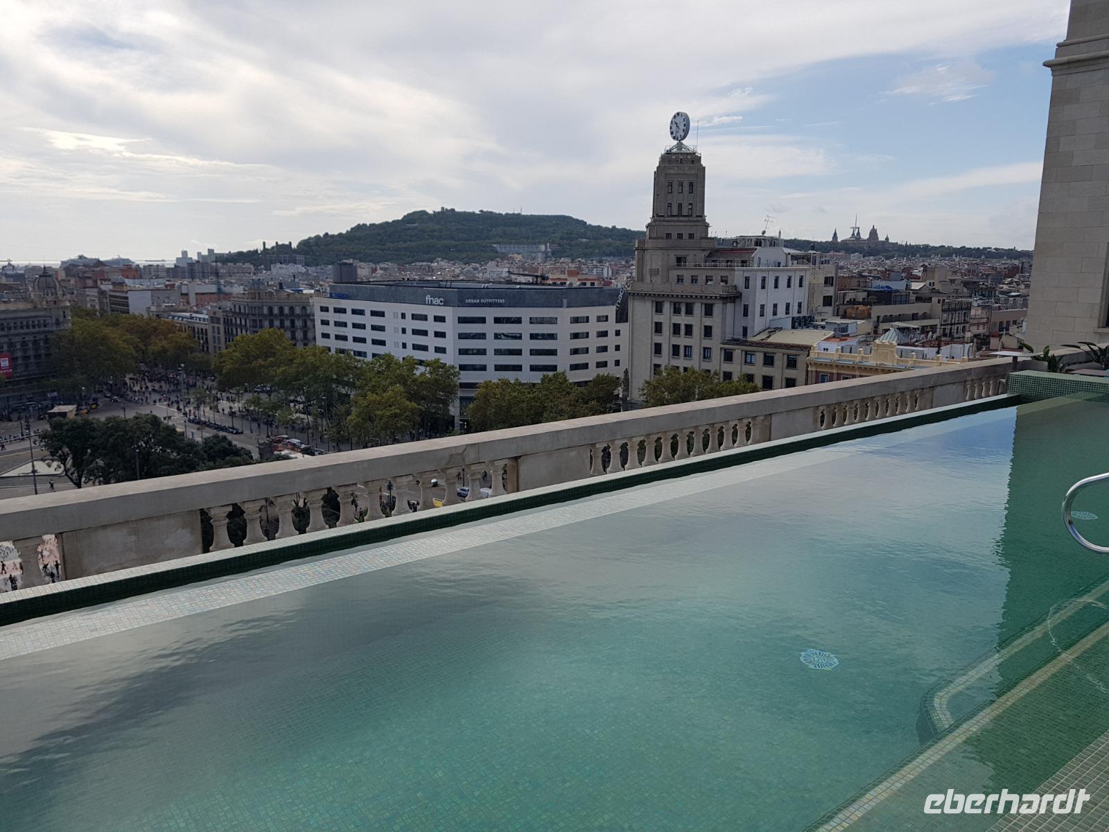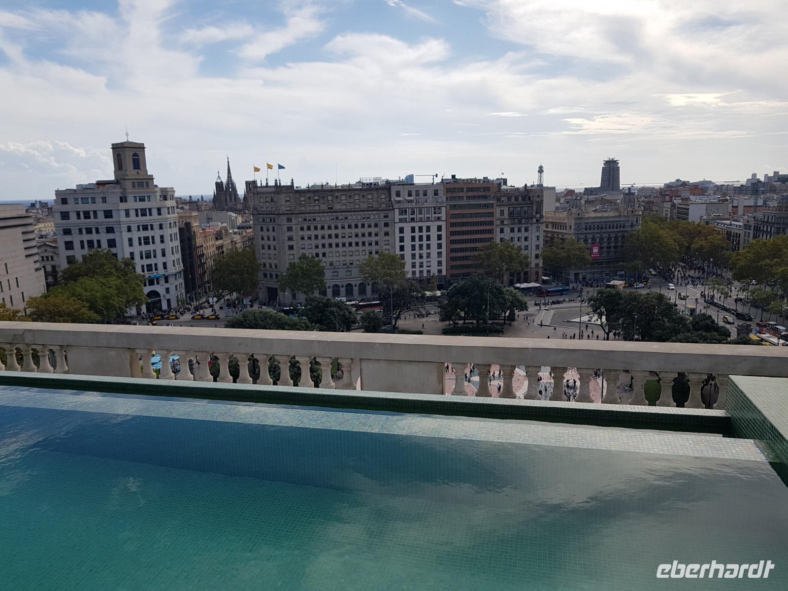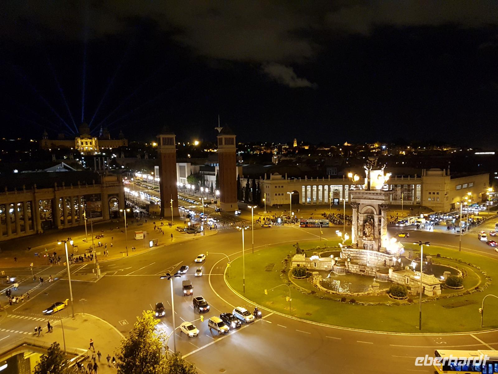Nach dem Abendessen wollten wir die Wasserspiele sehen aber die berühmten Licht- und Musikbrunnen am Plaza de Espanya waren leider heute Sonntag nicht im Betrieb. Dieses Spektakel aus Musik, Wasserspielen und Lichtern sind einfach genial, da die Musik immer im Einklang mit den verschiedenen Lichteffekten und Wassersprüngen spielte. Wir haben nun ein Grund aber nach Barcelona wieder zu kommen. Gemeinsam mit dem U-Bahn diesmal fahren wir zurück ins Hotel, wo wir die Annehmlichkeiten des 4-Sterne Hotels genießen konnten. Oben vom Hotel gab es eine stilvolle Dachterrasse mit Pool und Blick auf die Kathedrale. Die Temperatur war noch angenehm warm: Eine schöne spanische Oktobernacht. Buenas noches, meine lieben Gäste. Hasta manana! ;)